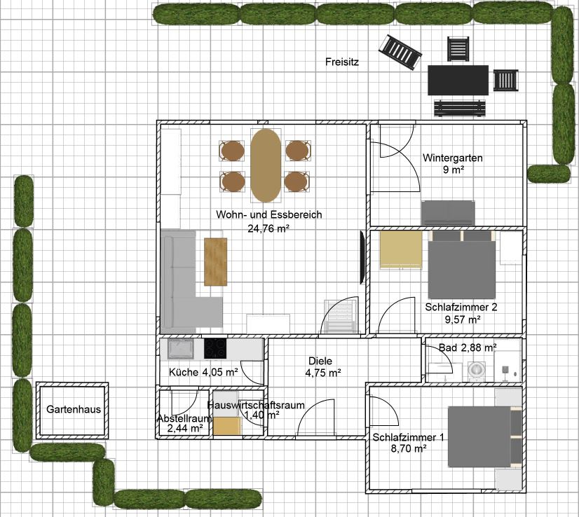 - beheizter Wintergarten als 3 Schlafzimmer mit DoppelSchlafcouch (180x200) für 5./6. Person - Süd-Terrasse mit Sitzgruppe, Liegestühlen und Grill