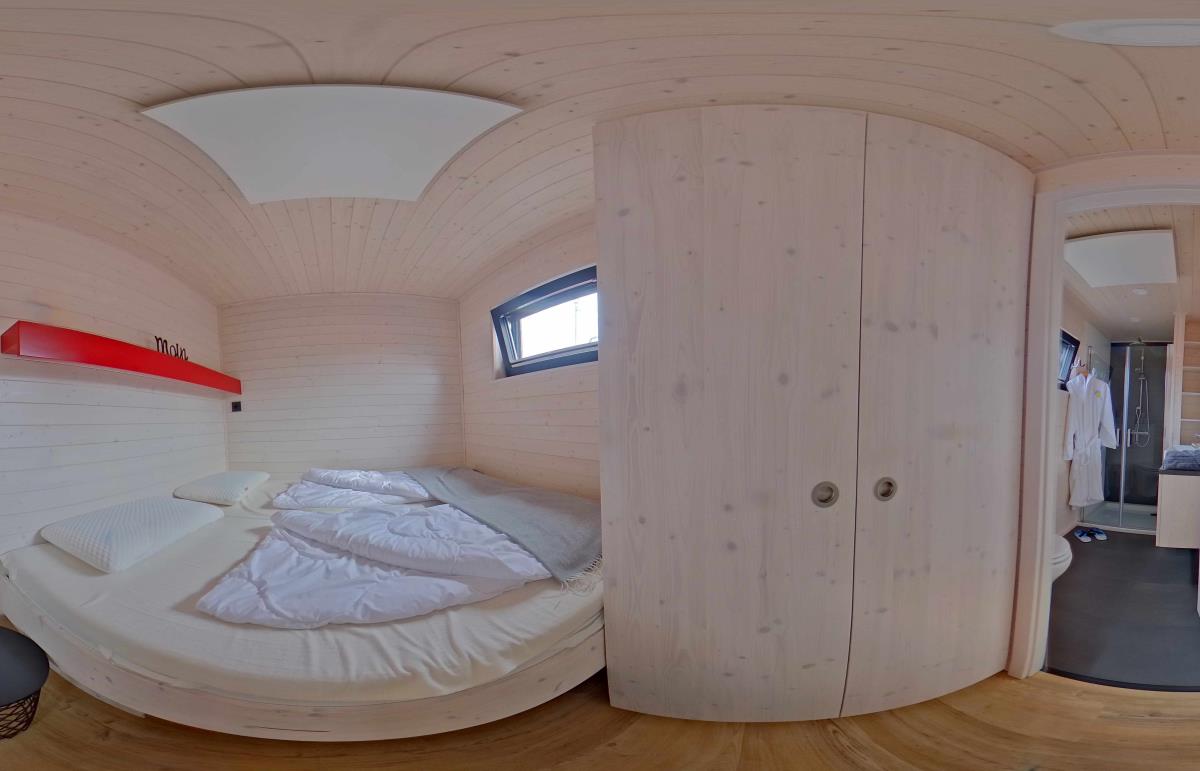 Das moderne Design des Hausboots ist einzigartig: Die charakteristischen gewölbten Holzdecken und -wände schaffen eine behagliche, fast schiffsähnliche Atmosphäre, die Sie sofort in Urlaubsstimmung versetzt. Jedes Detail ist durchdacht, jeder Raum strahlt Qualität und Stil aus.