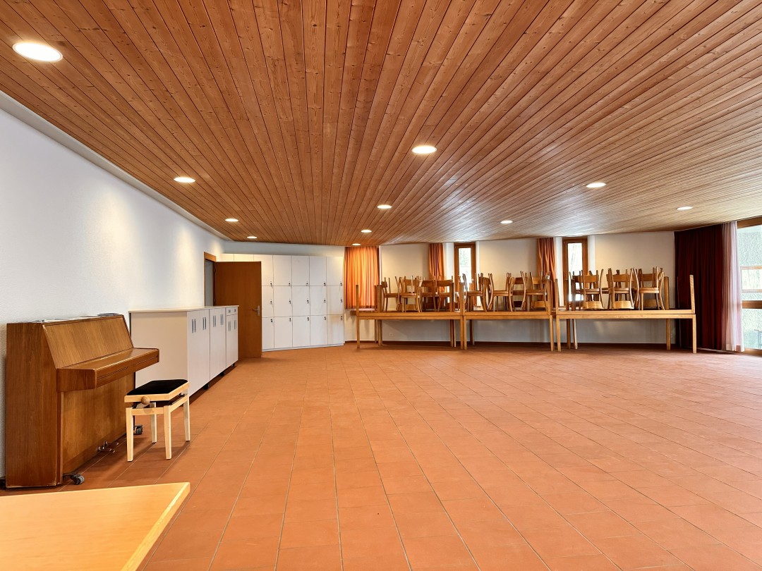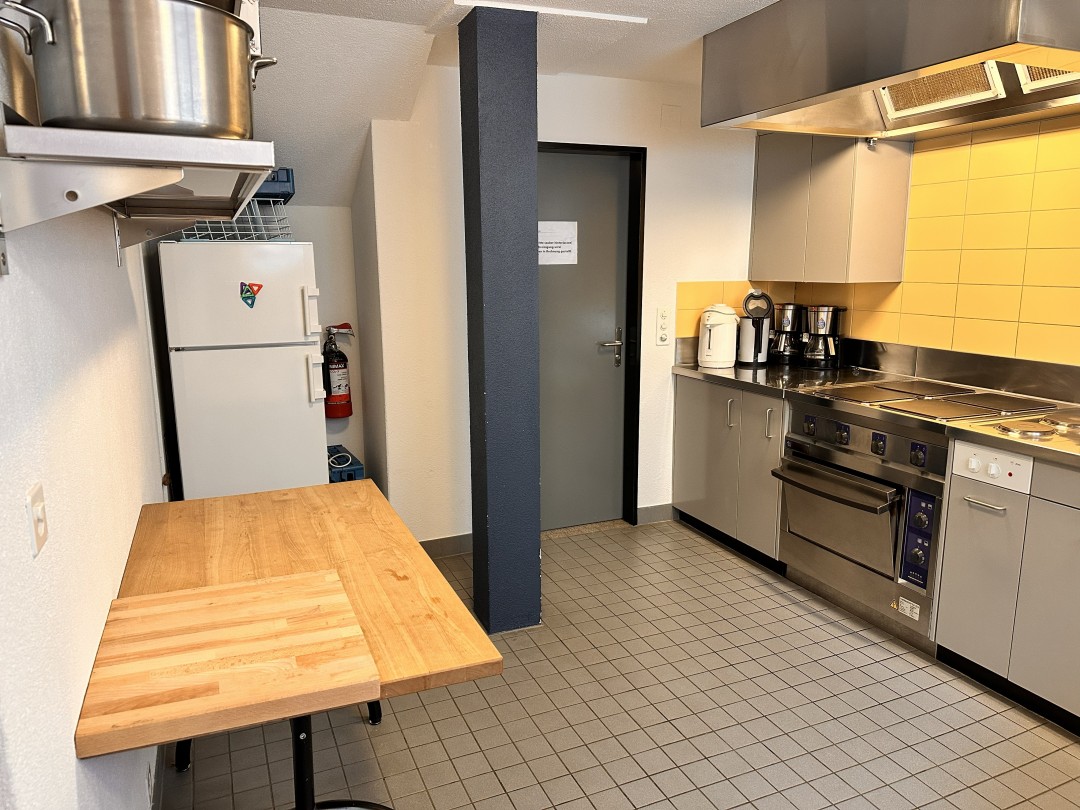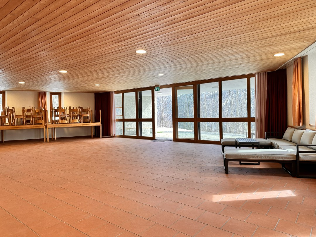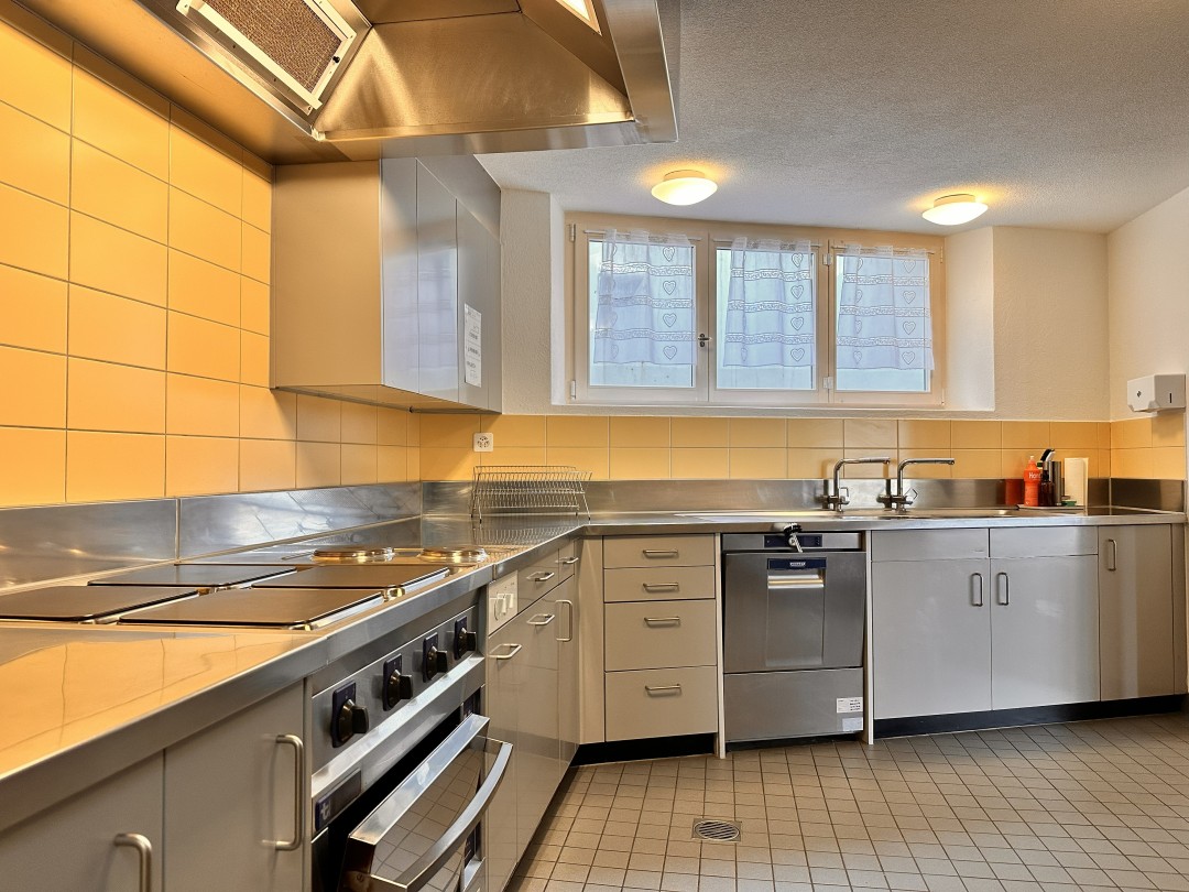 1 Küche mit Geschirrspüler, 1 Trocknungsraum für Kleider und Schuhe (mit Schuh-Heizung), 1 Aufentshaltsraum ca. 136 m2, 1 Gruppenraum ca. 20m2 (6 Schlafplätze)