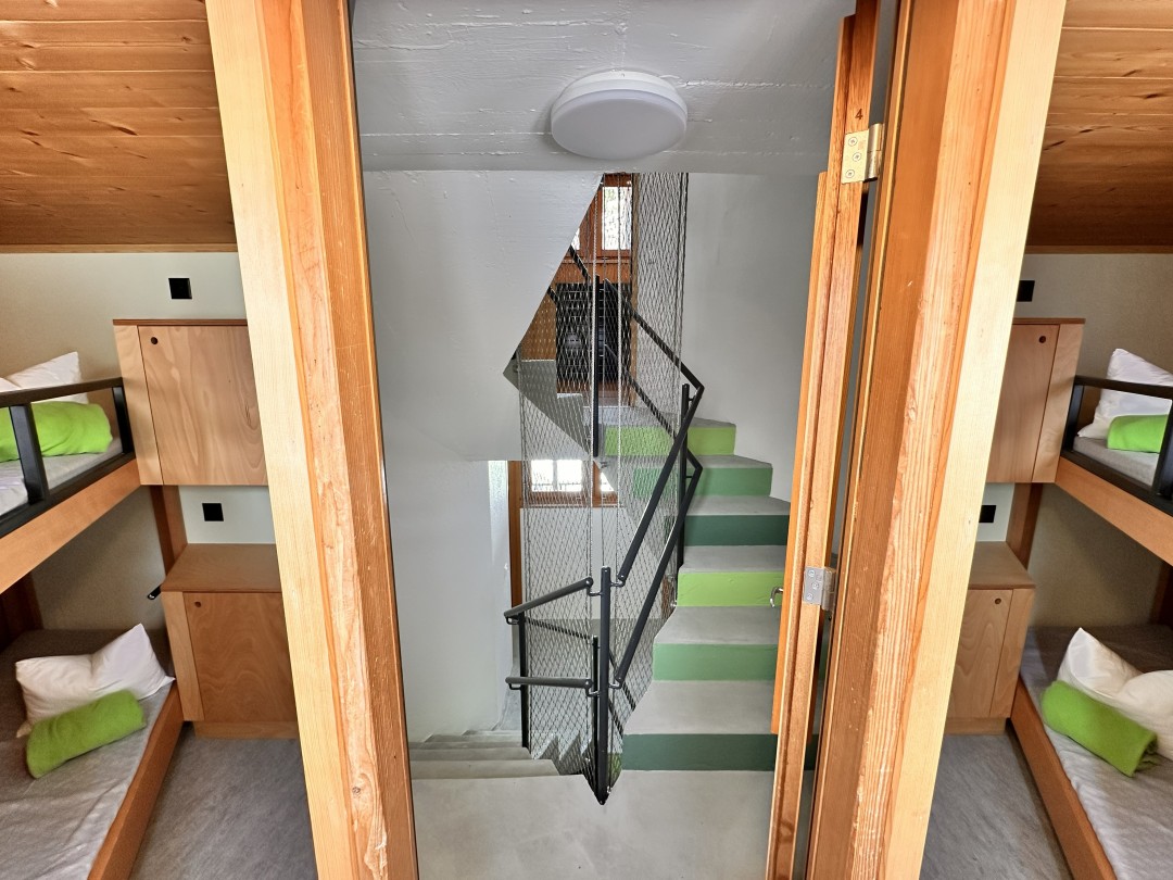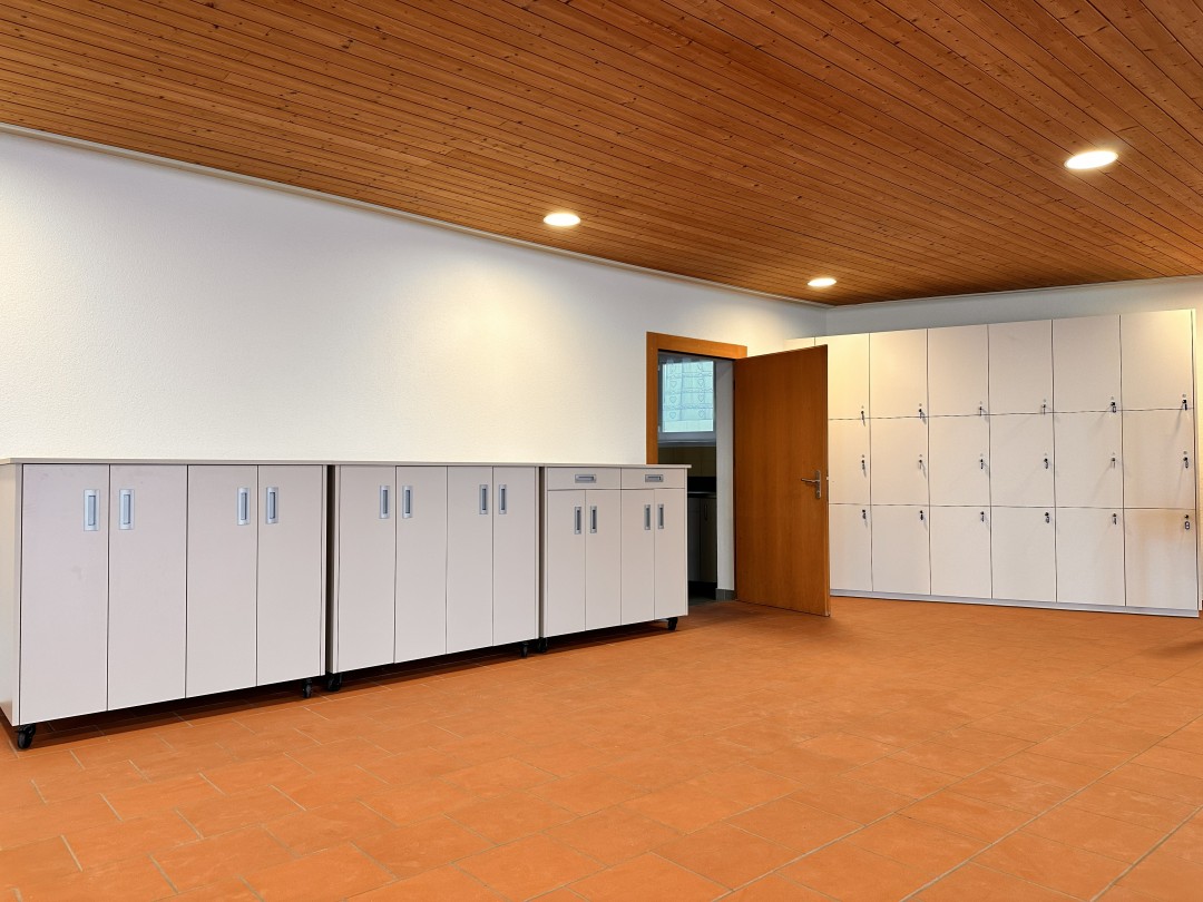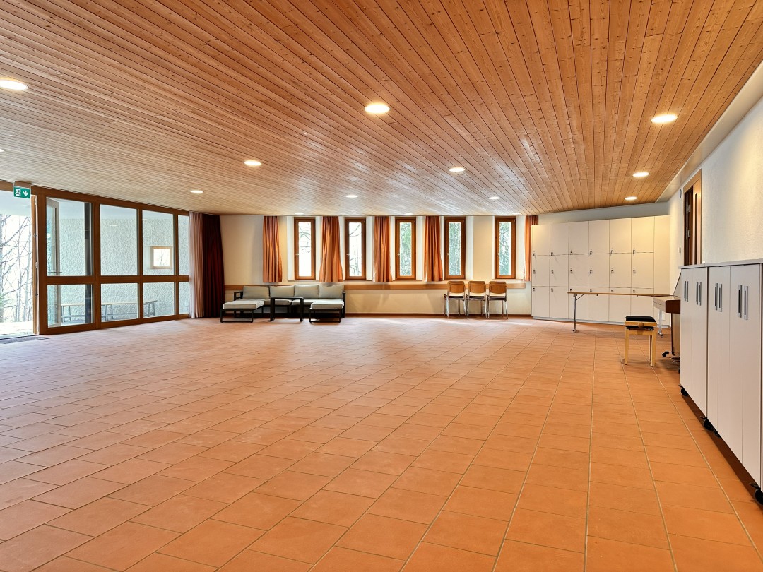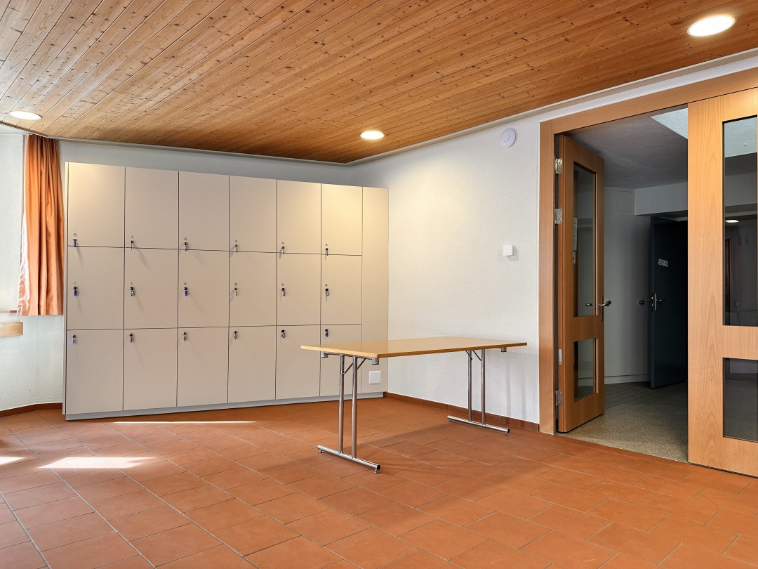 1 Küche mit Geschirrspüler, 1 Trocknungsraum für Kleider und Schuhe (mit Schuh-Heizung), 1 Aufentshaltsraum ca. 136 m2, 1 Gruppenraum ca. 20m2 (6 Schlafplätze)