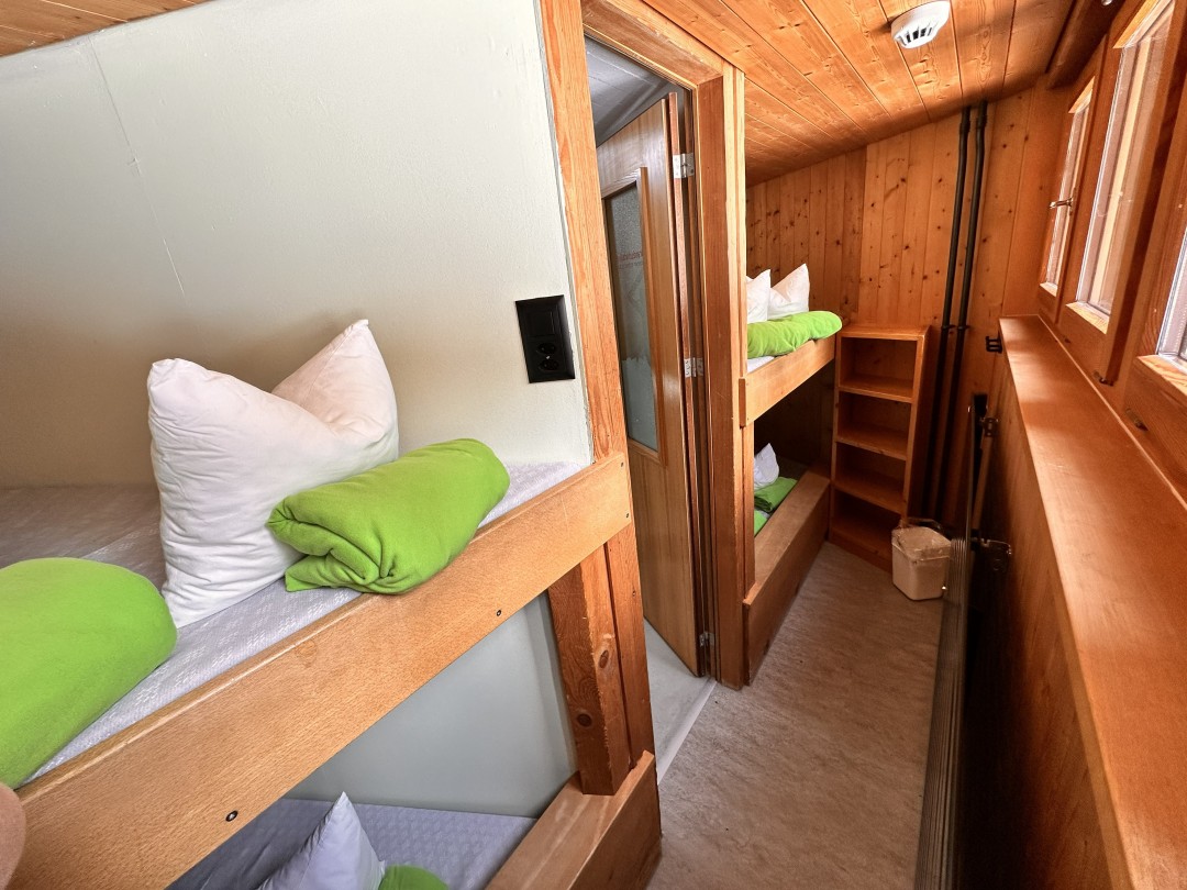 Bettinhalt: Matratze mit Leintuch und 1 Kissen mit Anzug. Es stehen Wolldecken zur Verfügung. Mitnahme des eigenen Schlafsackes wird empfohlen.