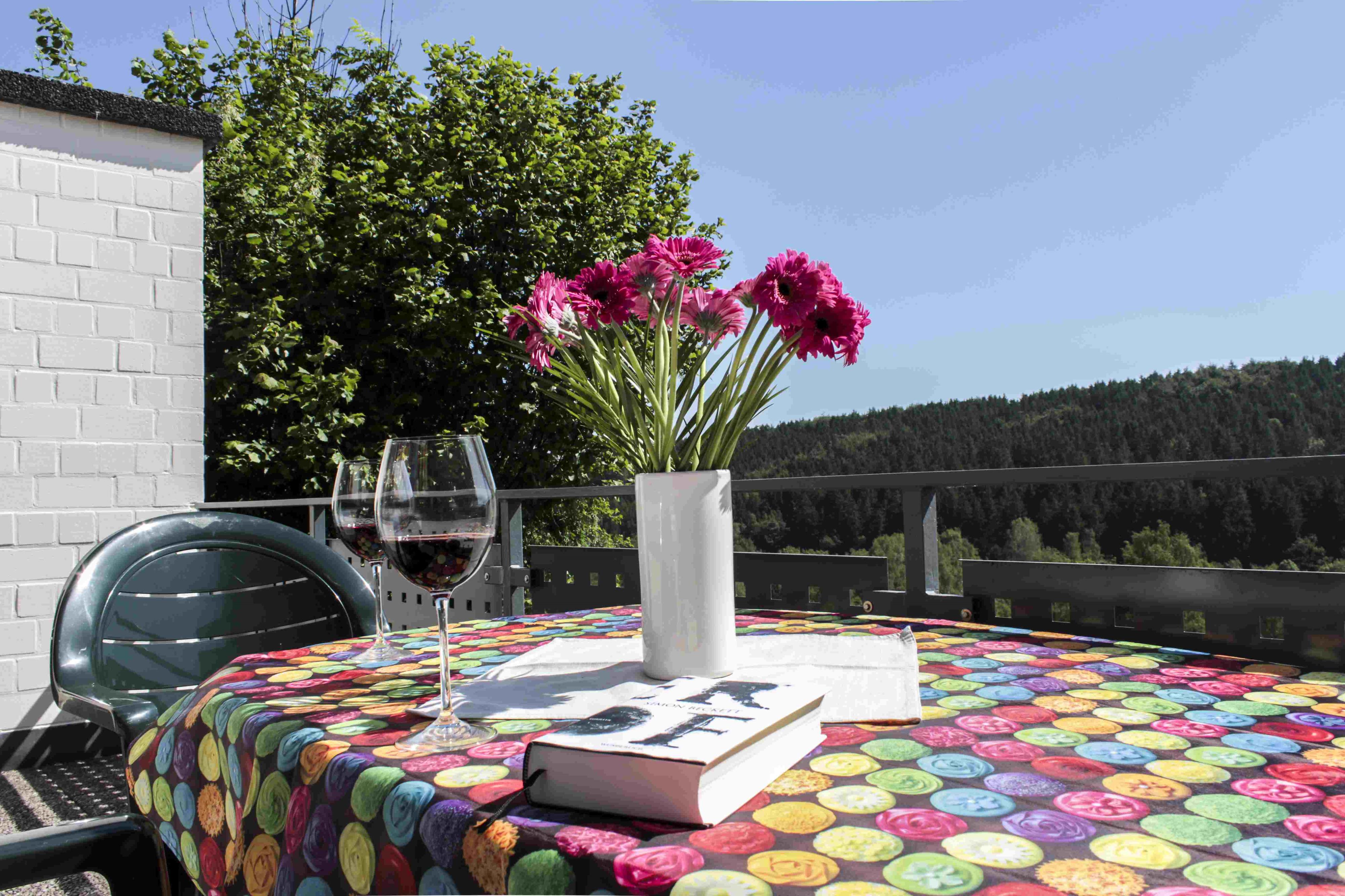 Das Ferienhaus liegt in herrlicher Hanglage, mitten im Grünen. Die Fenster ermöglichen Ihnen einen kilometerweiten Blick über das Aatal.