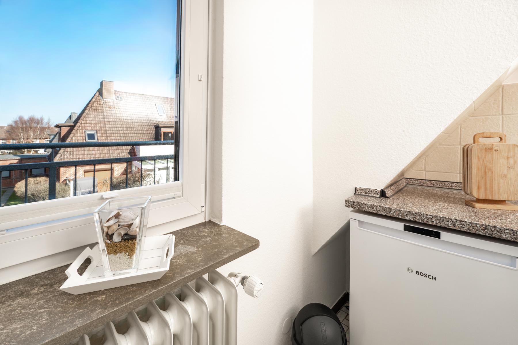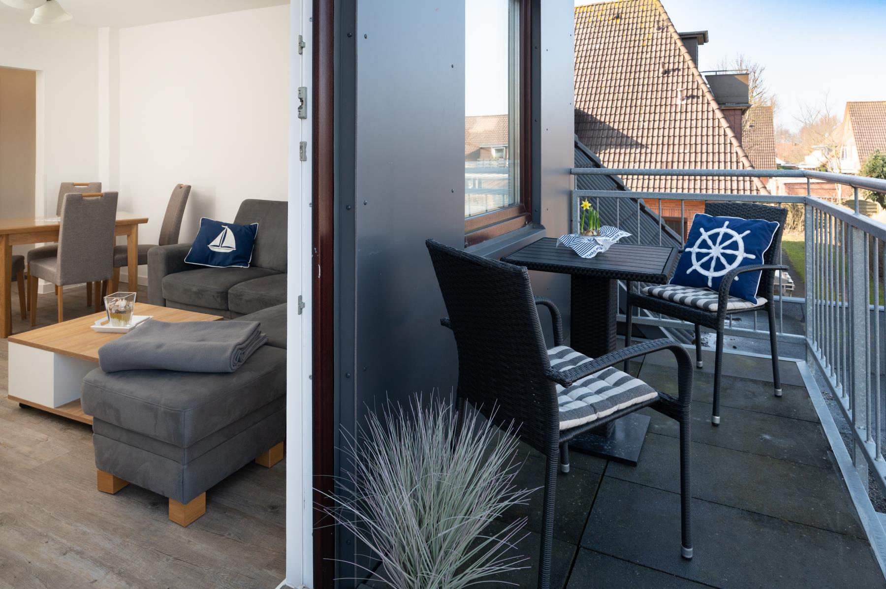 Auf dem kleinen Balkon kann man entspannt die Sonnentage in Büsum genießen.