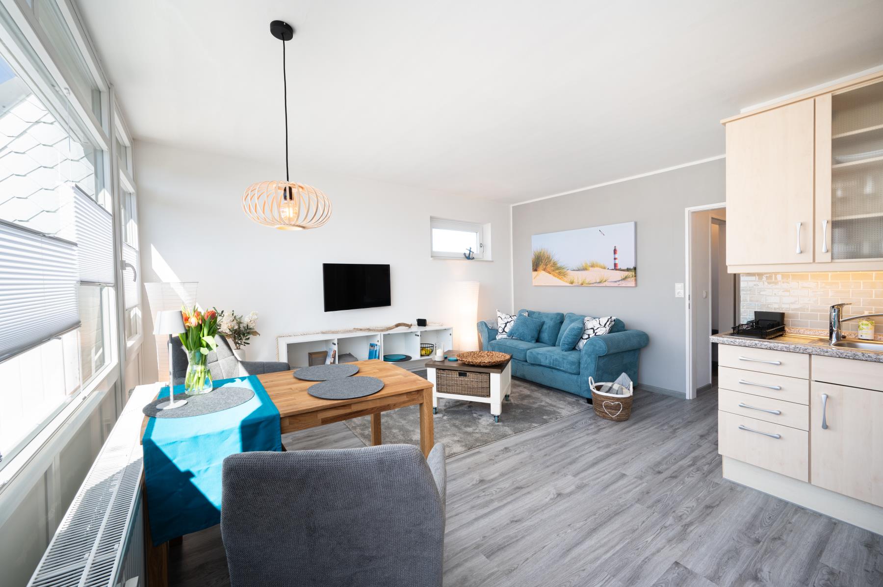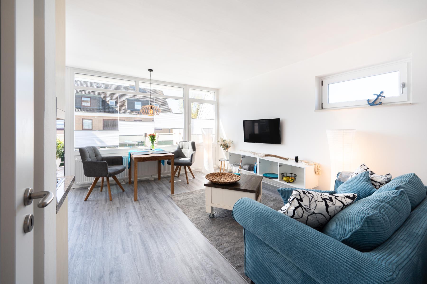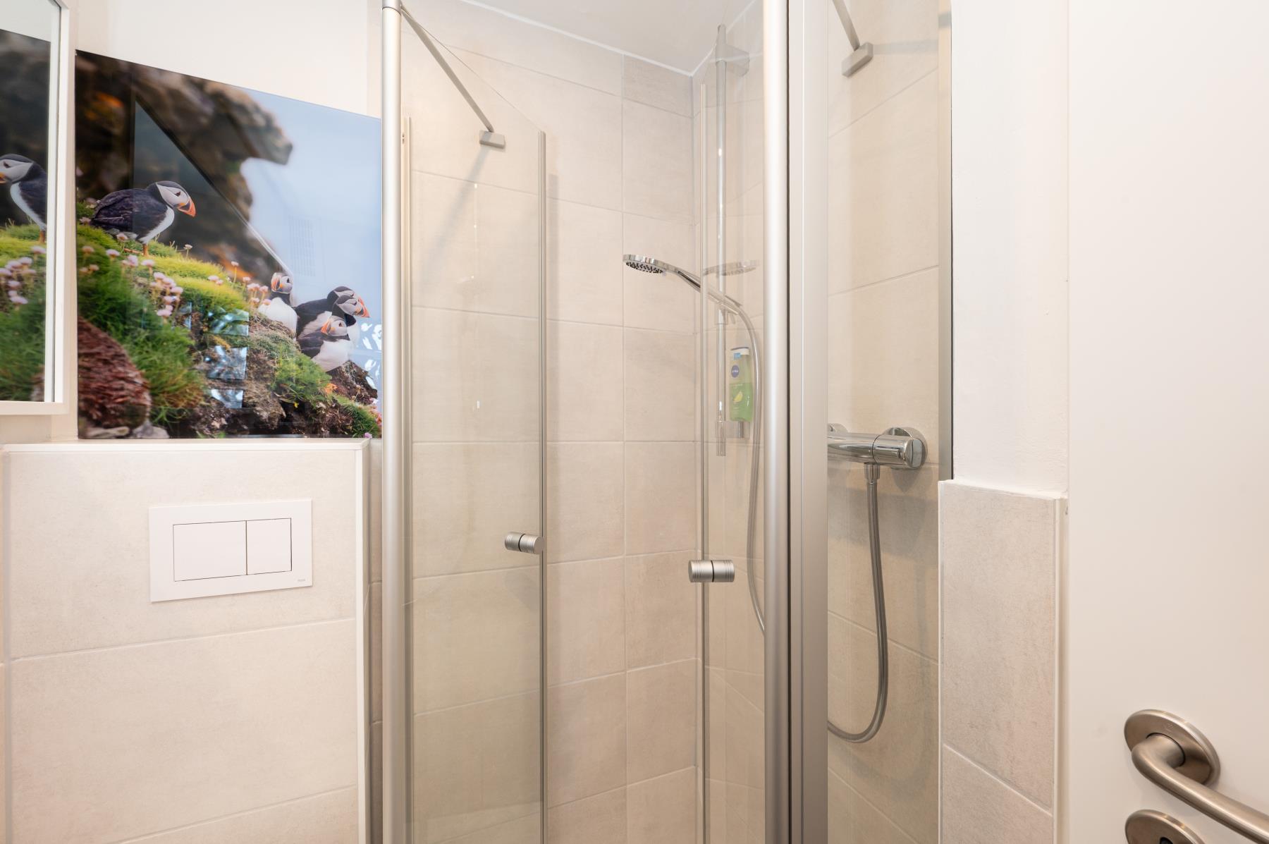 Die große Terrasse mit traumhaftem Blick lässt sofort Urlaubsfeeling aufkommen. Entdecken Sie von dieser frisch renovierten Wohnung aus Büsum und die wunderschöne Umgebung zu Fuß oder per Rad. Die vollausgestattete Küche lässt kaum Wünsche offen. Die Wohnung ist besonders gut für Alleinreisende oder Paare geeignet. Ihre Fahrräder können Sie über Nacht ebenerdig in einem eigenen Raum sicher einschließen. Zur Ferienwohnung Norderby gehört zudem ein eigener Kfz-Stellplatz. Im Haus gibt es die Möglichkeit, Waschmaschine und Trockner gegen eine kleine Gebühr zu nutzen.