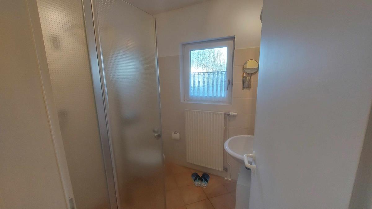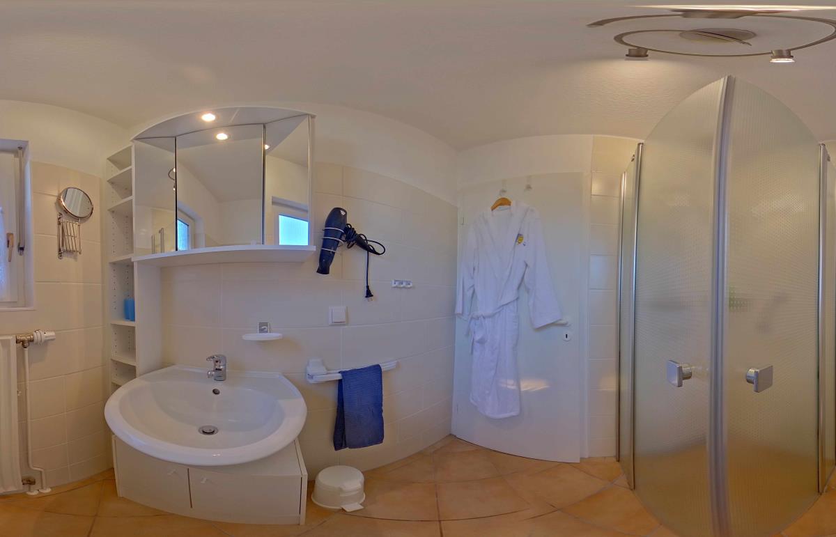 Das moderne Badezimmer mit bodengleicher Dusche ist Ihr täglicher Wohlfühlort. Hier können Sie sich nach einem Tag am Strand erfrischen oder sich morgens mit einem belebenden Duschgang für neue Abenteuer bereit machen. Der Föhn und Kosmetikspiegel sorgen dafür, dass Sie alles haben, was Sie brauchen.
