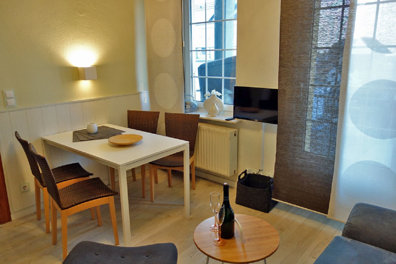 nebenan. Die geschmackvoll, komplett eingerichtete Wohnung, für bis zu 3