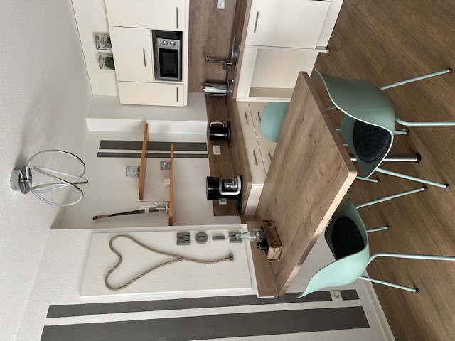 Eine ca. 50 qm große, geschmackvoll eingerichtete rollstuhlgerechte Wohnung. Die Wohnanlage befindet sich ca. 200m vom Dorfbrunnen entfernt in einer ruhigen Seitenstraße. Zum Strand ca 450 m, Ahoi-Bad ca. 450 m, Bäcker ca. 150 m. Die 2 Zimmer Wohnung füt max. 3 Personen, verfügt über ein Doppelbett (Betten mit Komforthöhe) und Federkernmatratzen, Wohnzimmer mit Schlafcouch (geeingnet für eine Person), Tageslichtbad und ebenerdiger Dusche, Haltegriff an der Toilette, Waschtisch körpernah, Spiegelneigung einstellbar, Küche mit Geschirrspüler, Mikrowelle, Herd, Backofen, Kaffeemaschine usw., TV_Flachbildschirm, Radio, Haartrockner, Fenster mit Rollläden, Türbreite ca. 1m, Schlafzimmer gegen elektronische Wellen gedämmt, Waschmaschine und Trockner gegen Gebühr im Haus, Fahrrad-Schuppen, PKW Stellplatz für Rollstuhlfahrer.