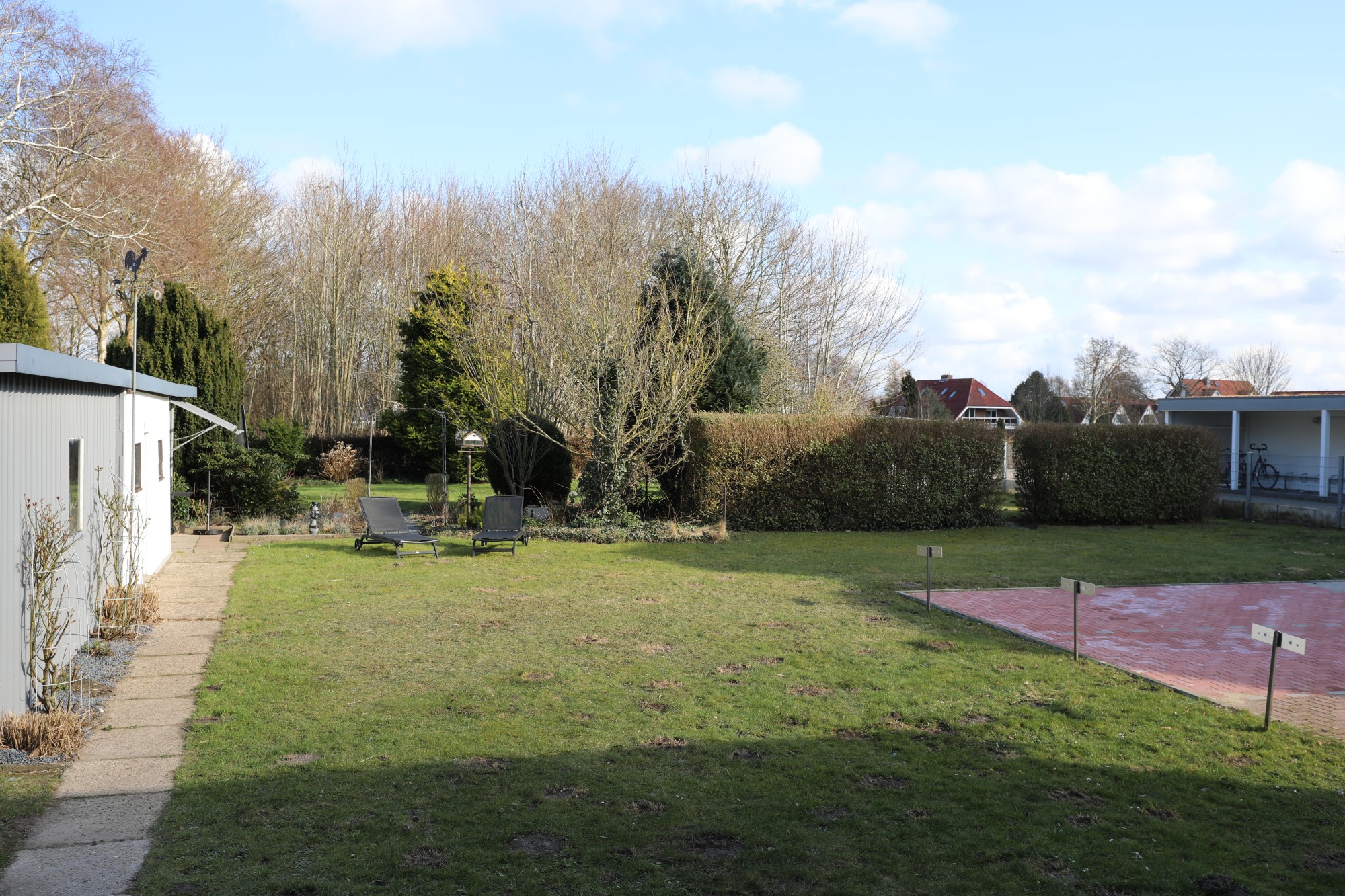 Denn zu diesem Haus gehört ein 2000qm großer Garten, welcher frei zur Verfügung steht und die Möglichkeit für gemütliche Grillabende oder Sonnenstunden im Freien bietet.