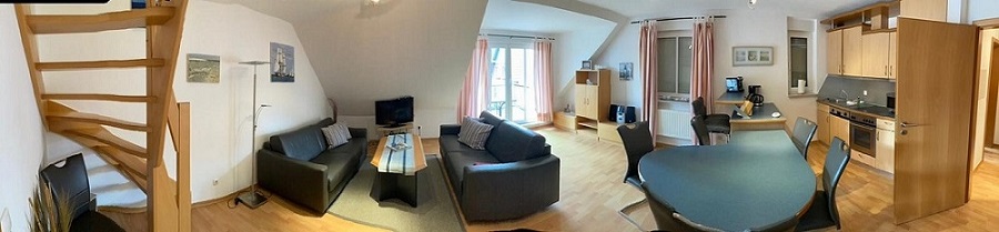 Das wunderschöne Appartement mit Balkon verfügt über 2 Schlafzimmer mit Doppelbetten, einer Schlafcouch im Wohnzimmer mit Flachbildschirm, Wlan. Die Küchenzeile hat einen Geschirrspüler, Cerankochfeld, Backofen und Kühlschrank.Im Badezimmer (Dusche/WC) steht eine Waschmaschine zur Verfügung. Zu dieser Ferienwohnung gehört ein Tiefgaragenstellplatz. Bis zu 4 Personen belegbar, 6 Personen auf Anfrage.