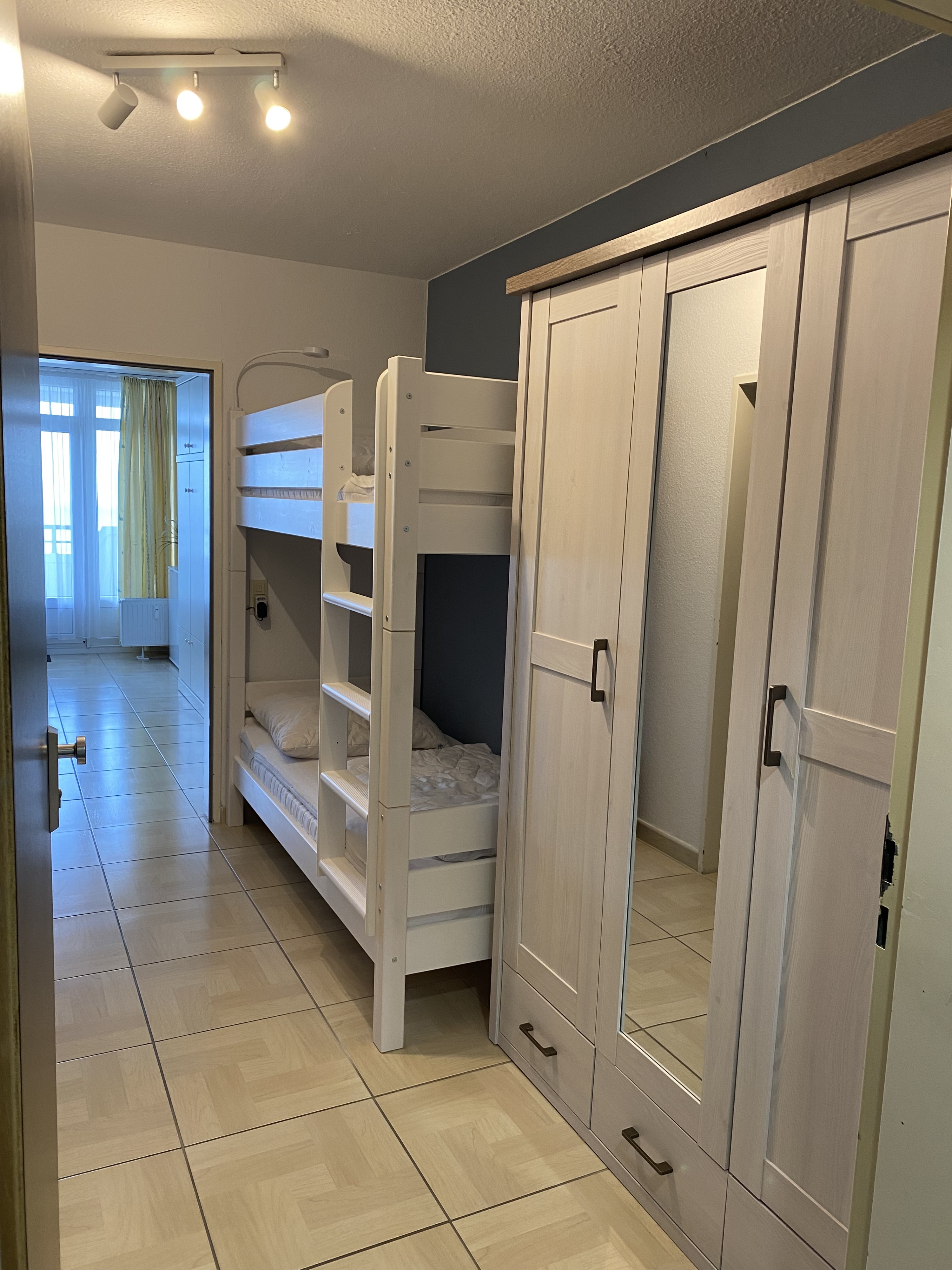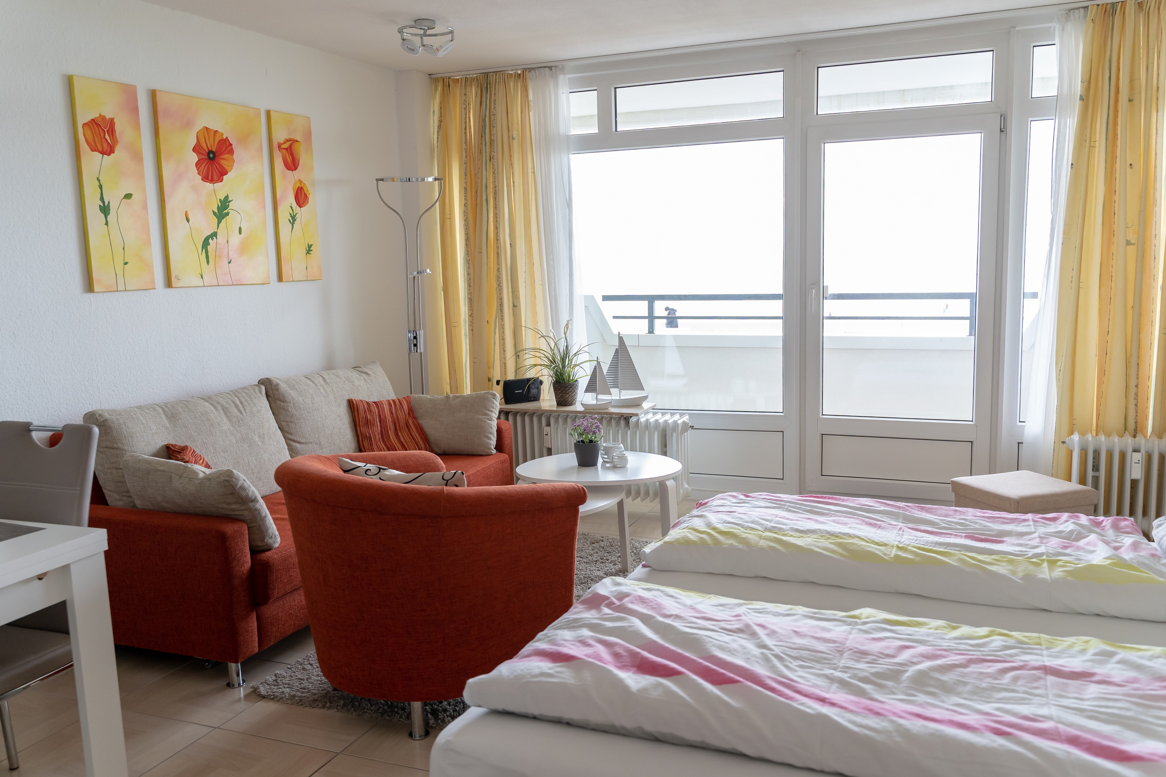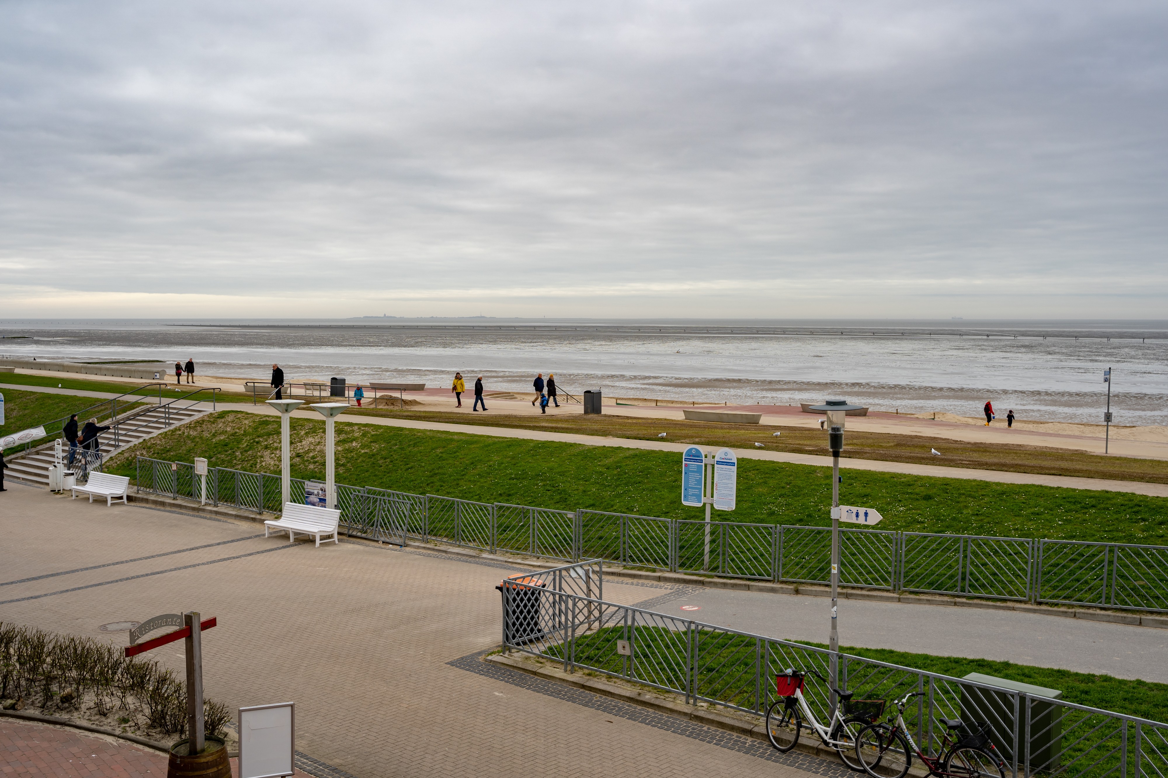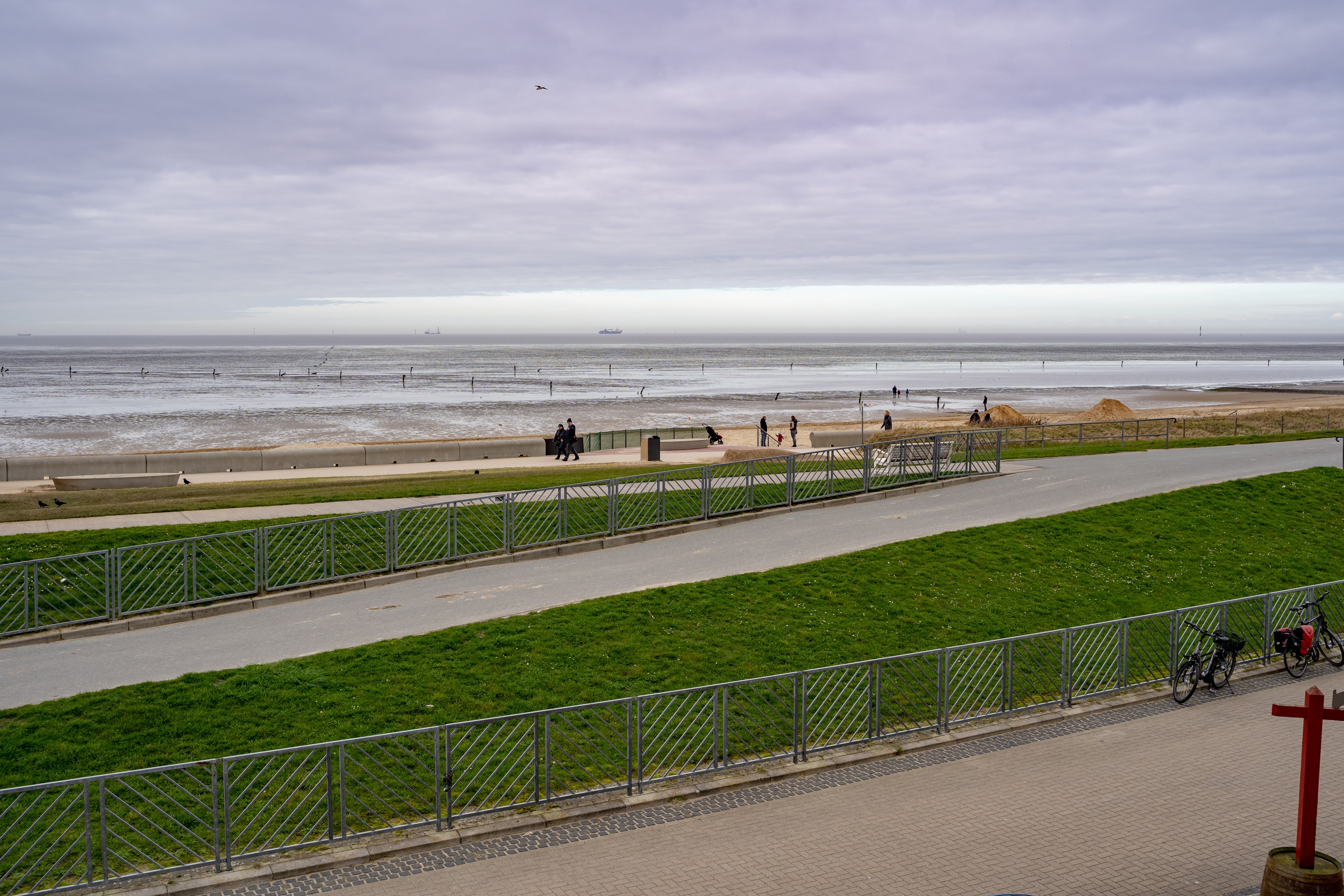 Die Strandnahe Ferienwohnug liegt im 1 Obergeschoss und hat eine Größe von 40 qm. Die Ferienwohnug hat einen direkten Blick vom Balkon auf das Weltkulturerbe Wattenmeer der Schifffahrt und der Insel Neuwerk. Die Ferienwohnung hat eine Schrankwand mit 2 Wandklappbetten in einem Wohn- und Schlafraum und 1 Etagenbett für2 Personen in einem Vorflur. Der freundlich und modern gestaltete Ferienwohnug verfügt über eine helle Küchenzeile mit Spülmaschine, Mikrowelle und diversen Elektrogeräten.
