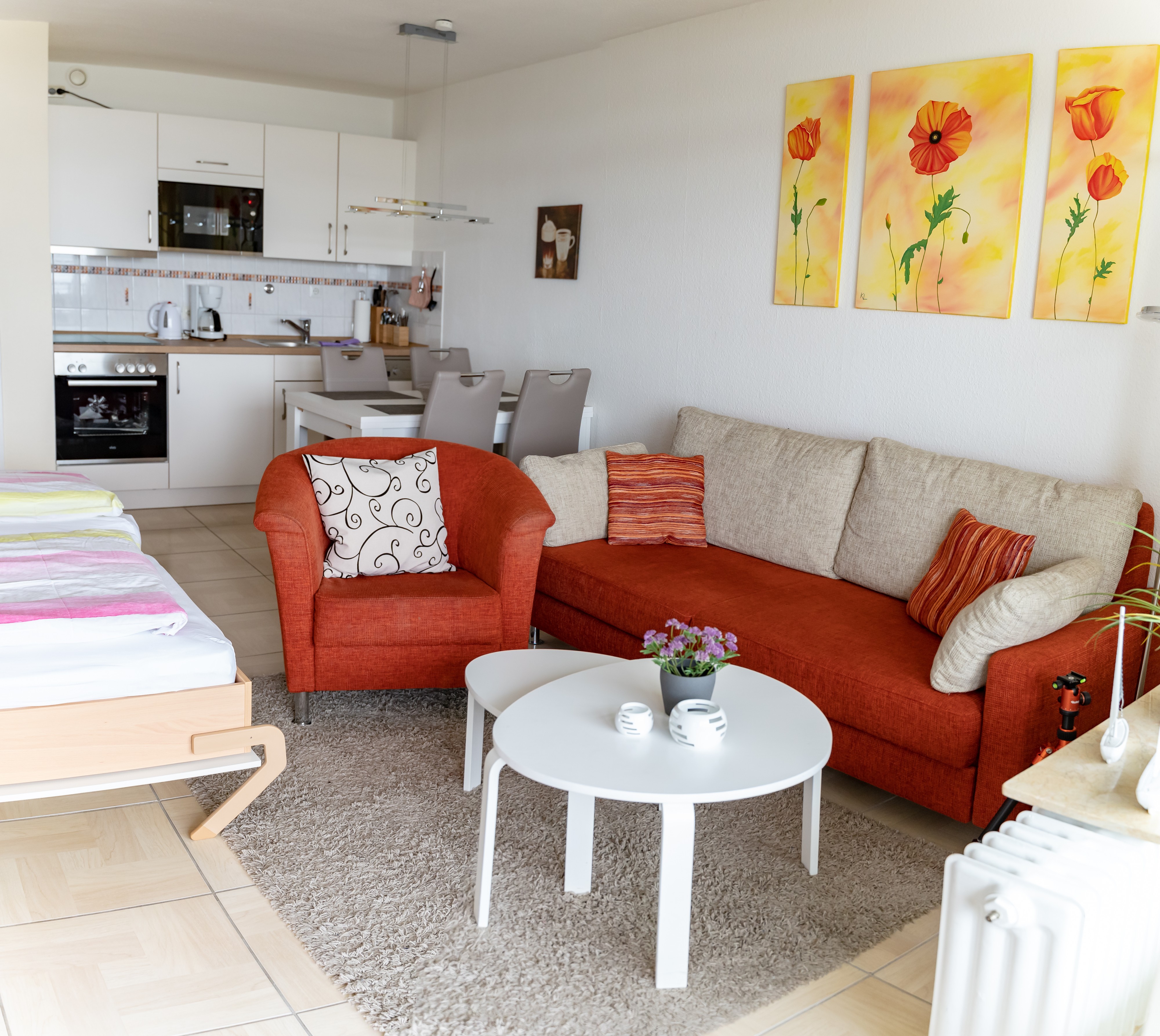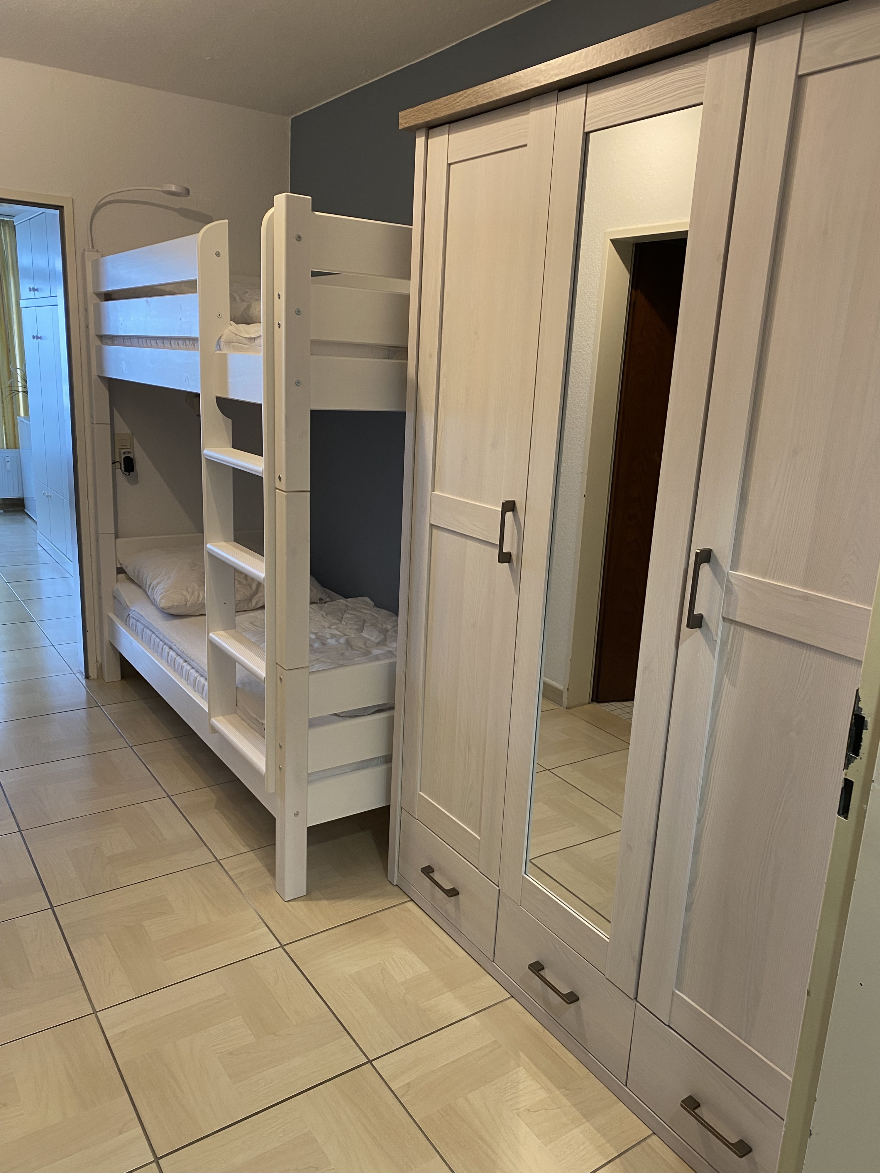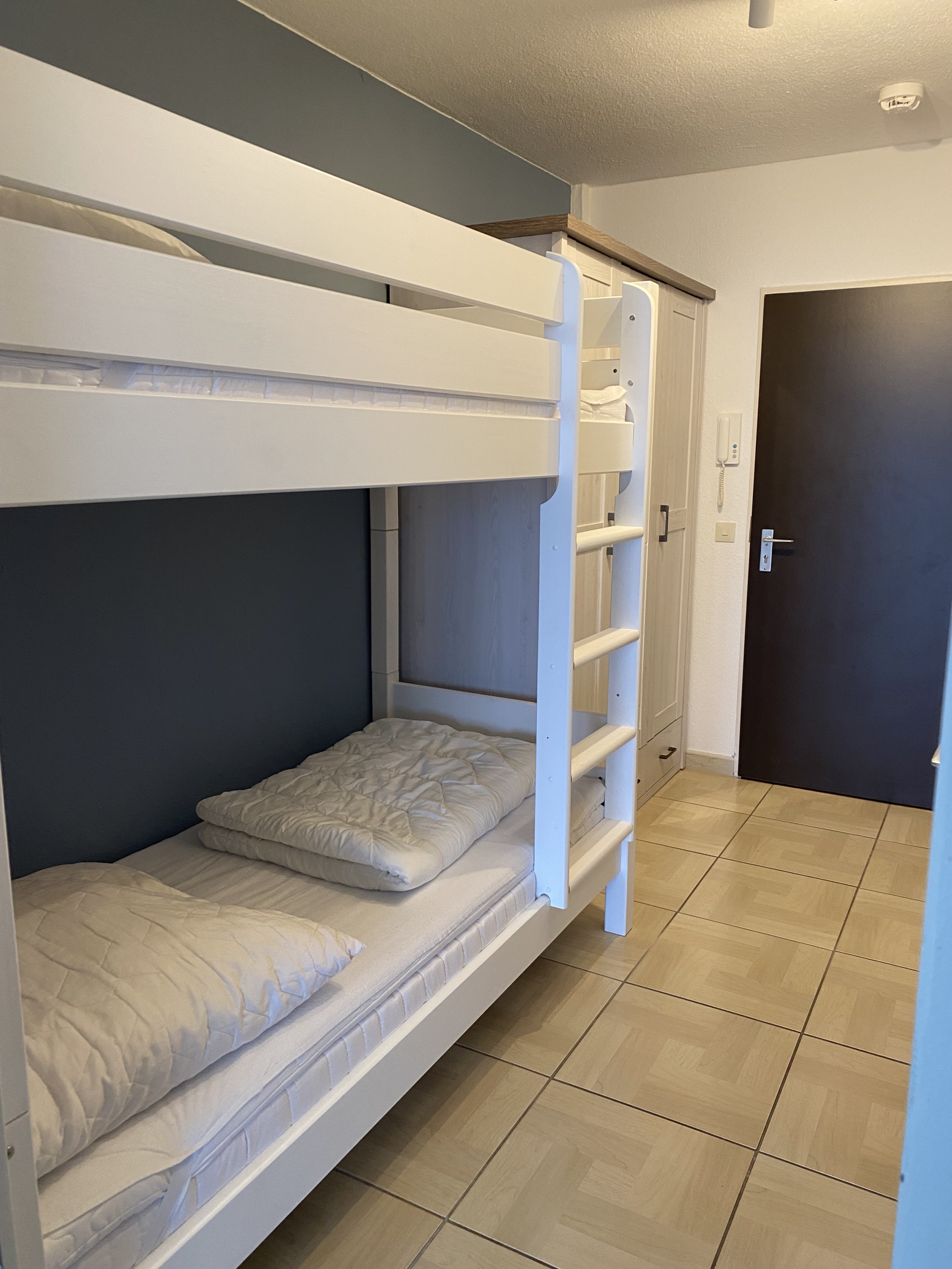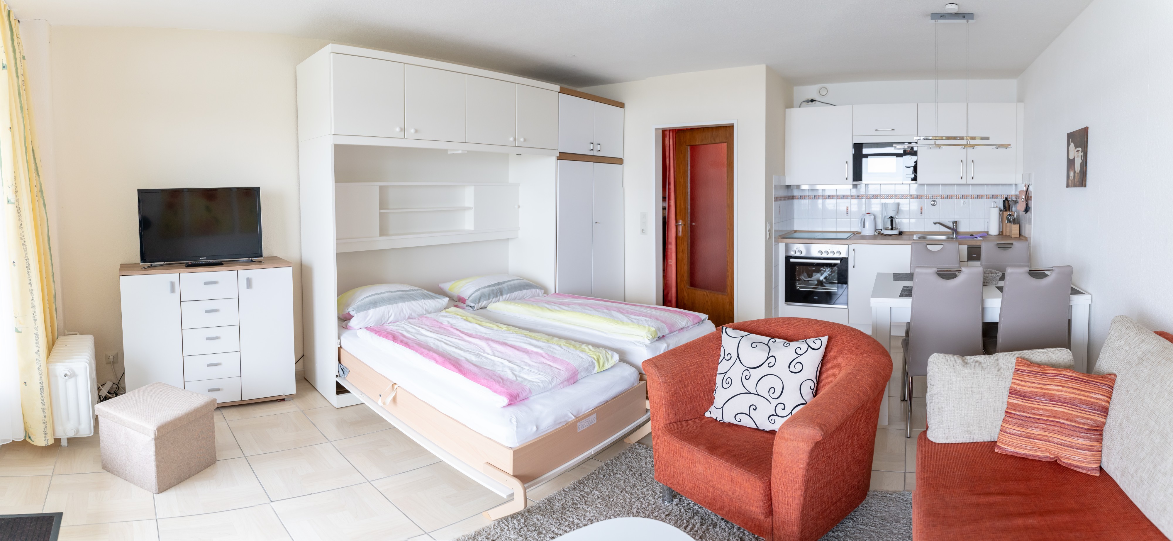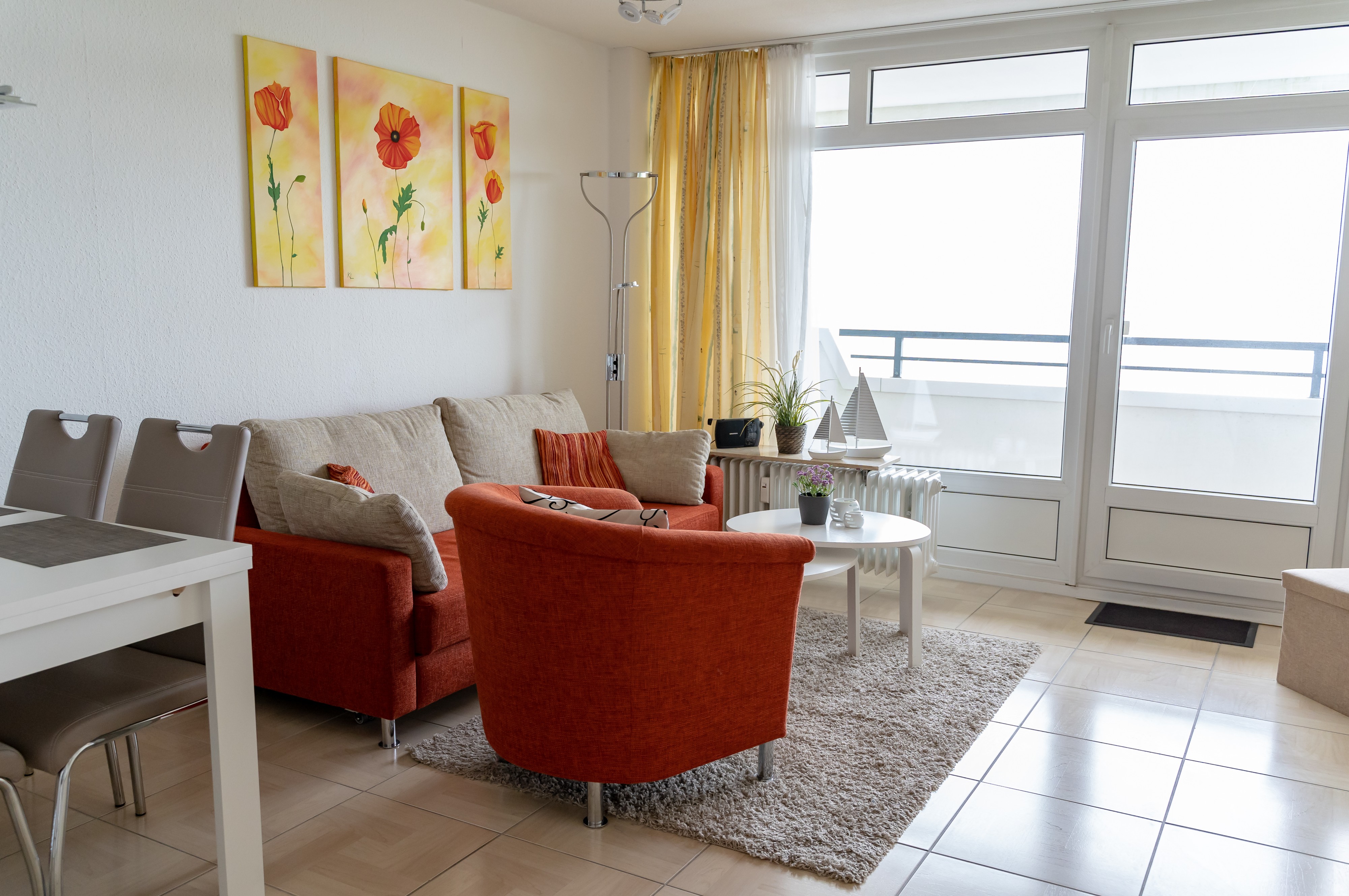 Die Strandnahe Ferienwohnug liegt im 1 Obergeschoss und hat eine Größe von 40 qm. Die Ferienwohnug hat einen direkten Blick vom Balkon auf das Weltkulturerbe Wattenmeer der Schifffahrt und der Insel Neuwerk. Die Ferienwohnung hat eine Schrankwand mit 2 Wandklappbetten in einem Wohn- und Schlafraum und 1 Etagenbett für2 Personen in einem Vorflur. Der freundlich und modern gestaltete Ferienwohnug verfügt über eine helle Küchenzeile mit Spülmaschine, Mikrowelle und diversen Elektrogeräten.