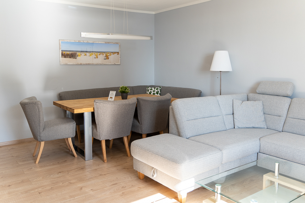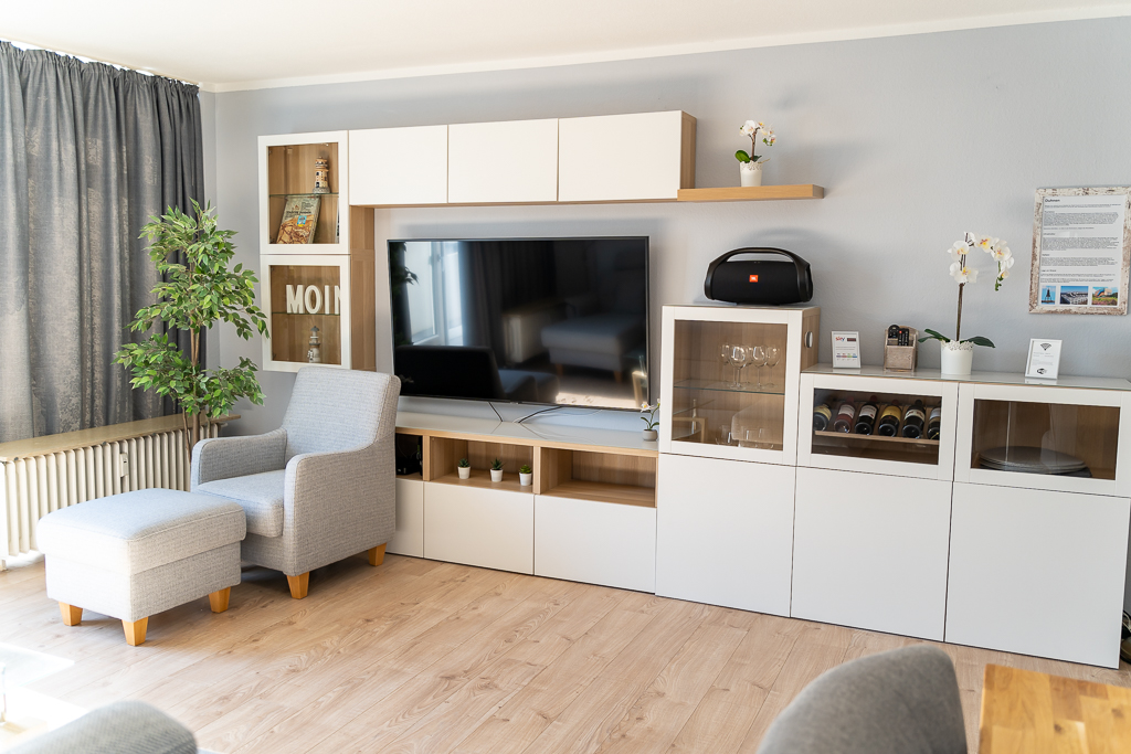 Die Strandnahe Ferienwohnug liegt im 2 Obergeschoss und hat eine Größe von 130 qm. Die Ferienwohnug hat einen Blick vom Balkon auf das Weltkulturerbe Wattenmeer der Schifffahrt und der Insel Neuwerk. Die Ferienwohnung ist 2020 neu renovirt worden Die freundlich und modern gestaltete Ferienwohnug hat 3 Schlafzimmern, 1Zimmer mit Doppelbett und 2 Zimmer mit je 2 einzelnen Betten so wie eine seperrate Küche ein Wohnzimmer, eine Dusche mit WC und ein seperrates WC. Beim Bezug der Ferienwohnung sind die Betten mit frisch bezogene Bettewäsche bezogen so wie ein Handtuchset mit Bdemamtel für alle gebuchten Gäste ab 3 Jahre vorhanden. Die Erstausstattung beinhaltet einschließlich Geschirrspültabs (wenn GS vorhanden), Spültuch, Geschirrtuch, Toilettenpapier, Müllbeutel etc. Die Schlafräumen haben jeweils einen Flachbildschirm in denen sie auch frei Sky empfangen können so wie Ladestaionen für Ihre Handys. Der Balkon ist mit einem Strandkorb so wie mit Balkonmöbel ausgestatet. Zur Wohnung gehört darüber hinaus ein kostenloser Pkw Stellplatz.
