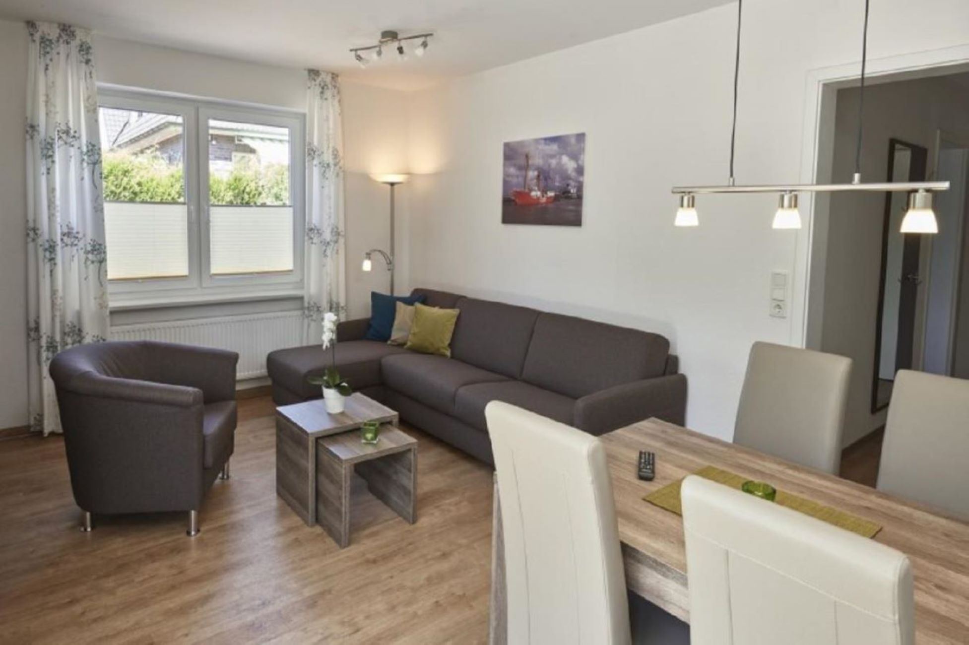 Die 48 m² große Wohnung befindet sich im Erdgeschoss und verfügt über direkten Zugang zum Garten – ideal für Familien mit Kindern oder Gäste, die gerne im Grünen frühstücken möchten. Die Einrichtung ist durchgehend modern, hochwertig und auf Wohlfühlen ausgelegt – mit stilvollen Möbeln, komfortablen Betten und einem durchdachten Raumkonzept. Jede Wohnung verfügt über kostenloses WLAN und einen hauseigenen Parkplatz direkt am Gebäude. Wäschepakete sind bei uns bequem zubuchbar. Das Mitbringen von Haustieren ist im Hause „Op de Geest“ jedoch nicht gestattet.