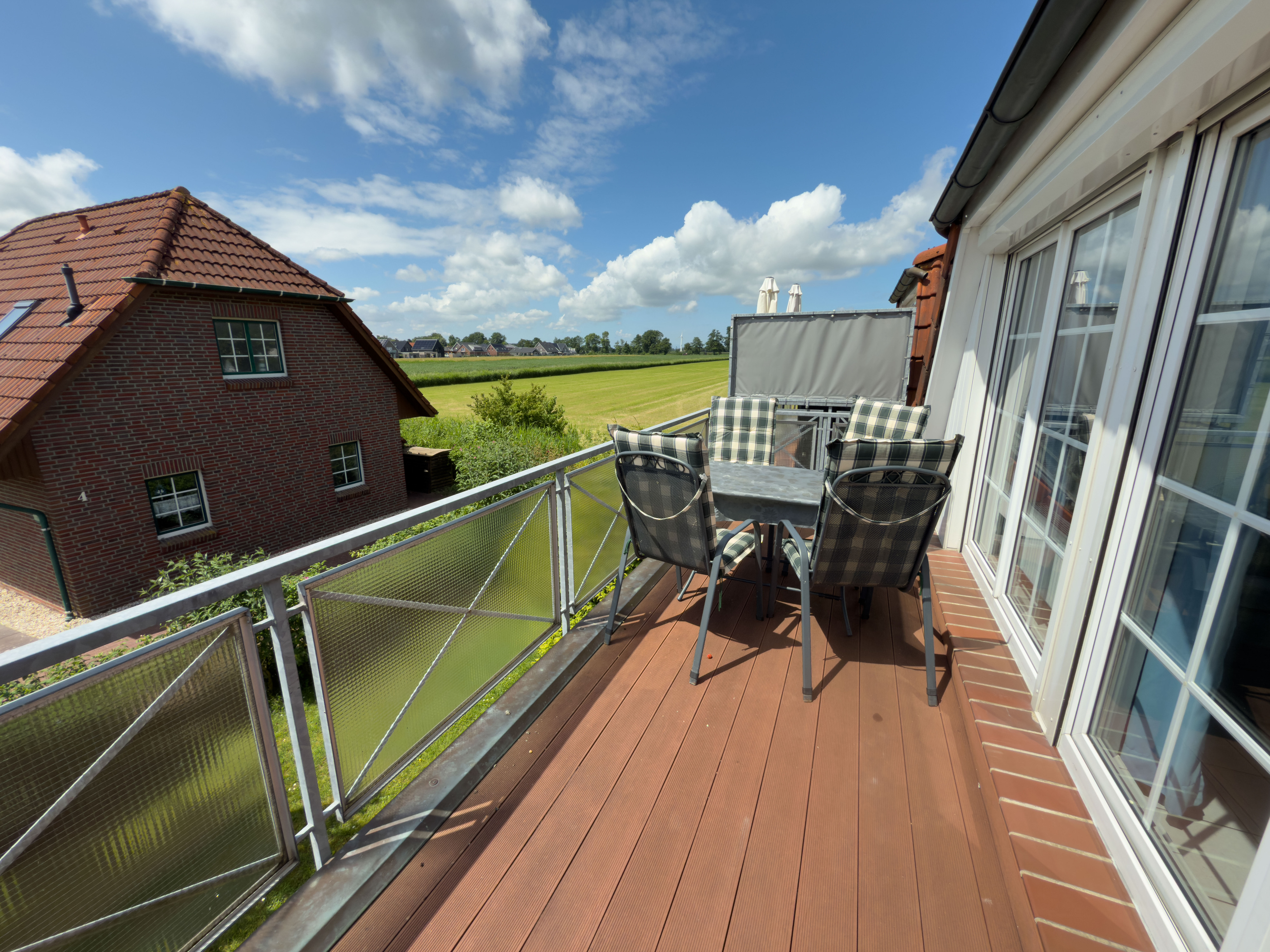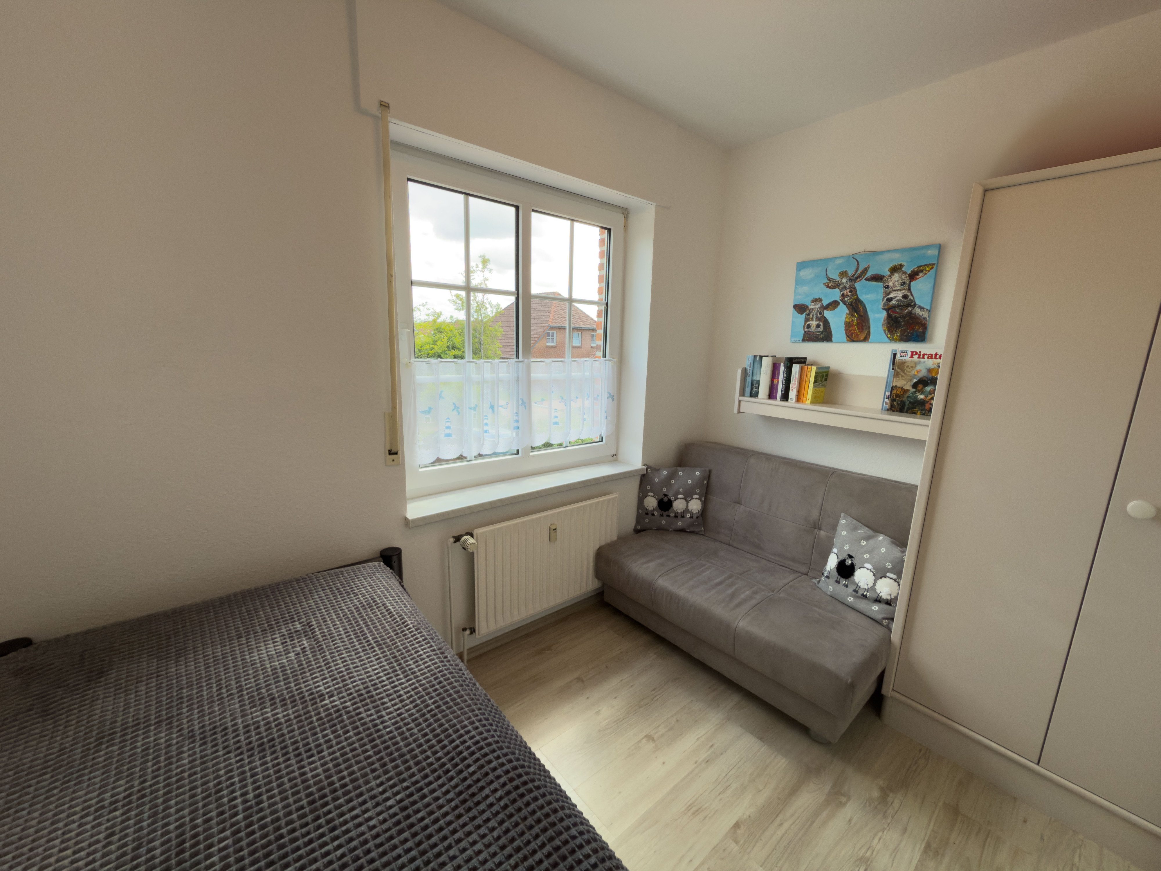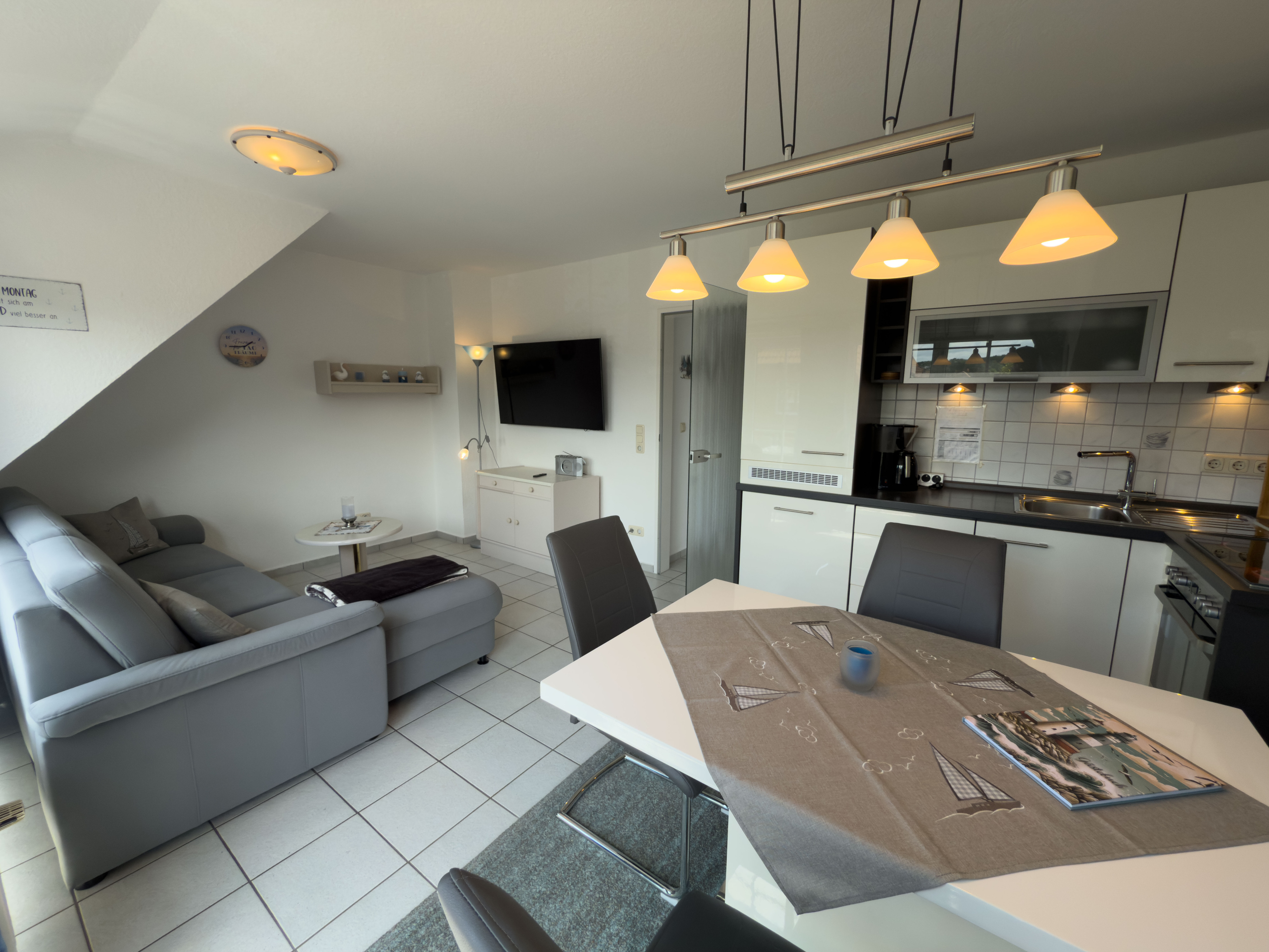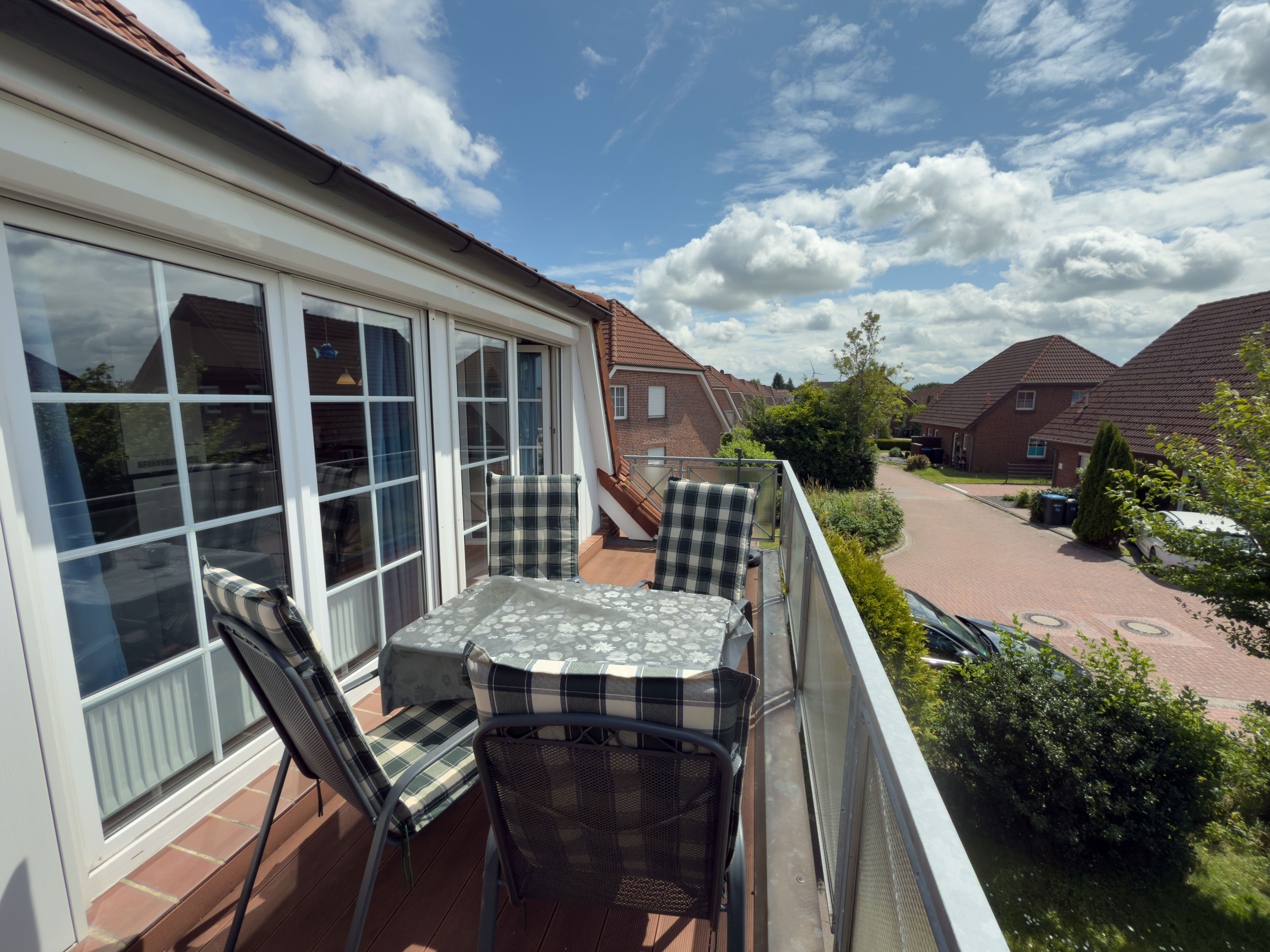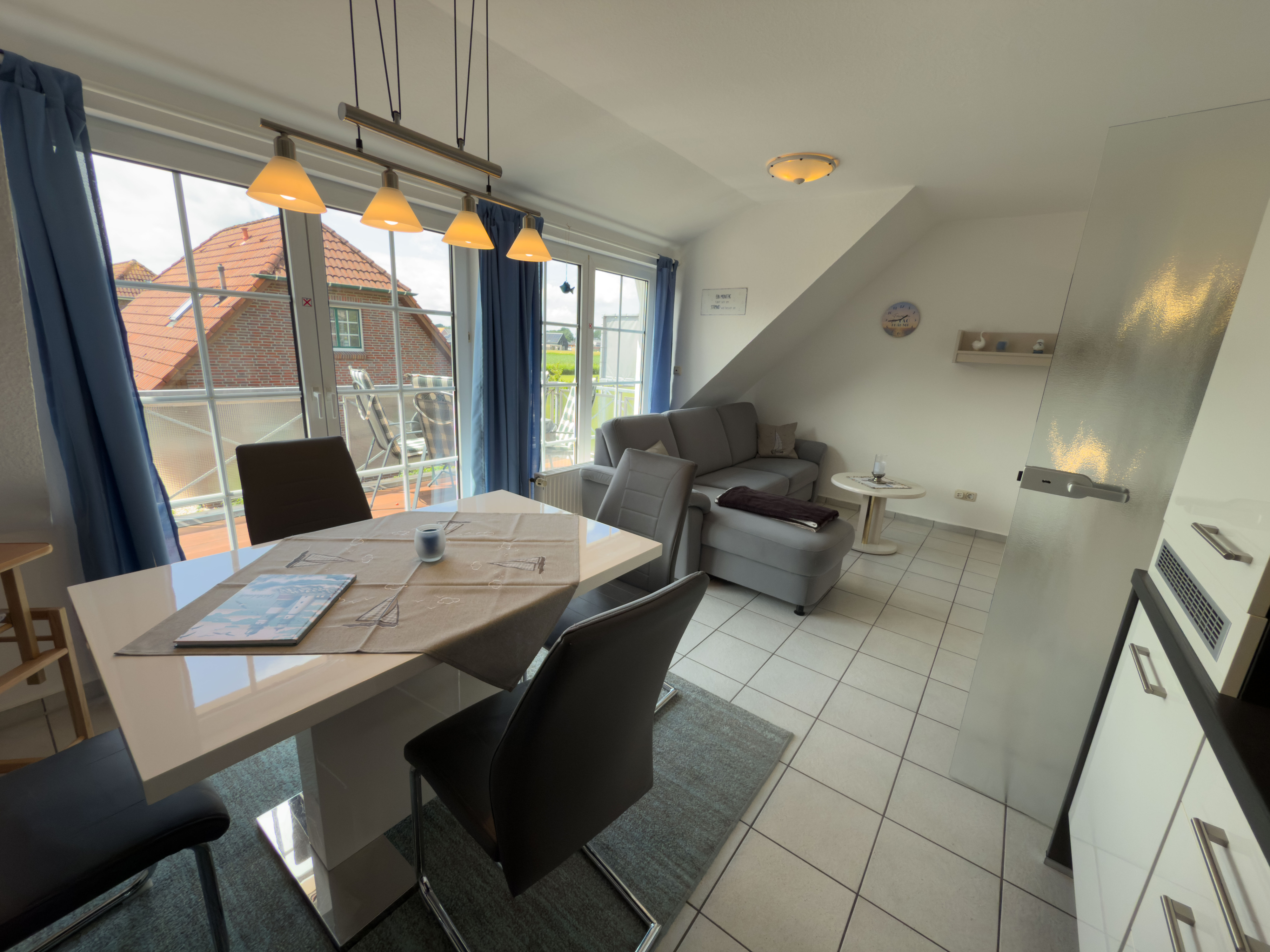 Die Ferienwohnung Pelikan liegt im Obergeschoss eines ruhigen Mehrfamilienhauses in Hooksiel und bietet ideale Voraussetzungen für eine erholsame Auszeit an der Nordseeküste.