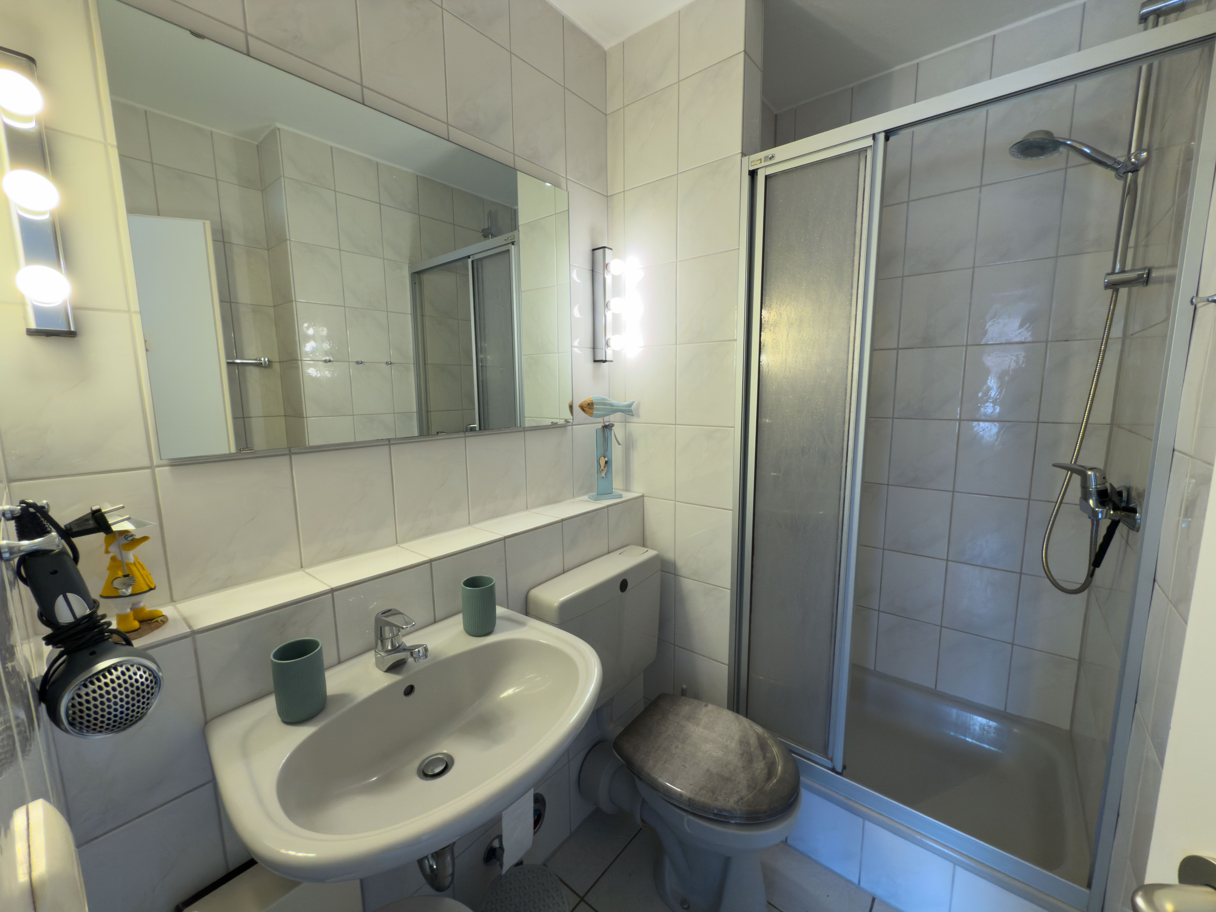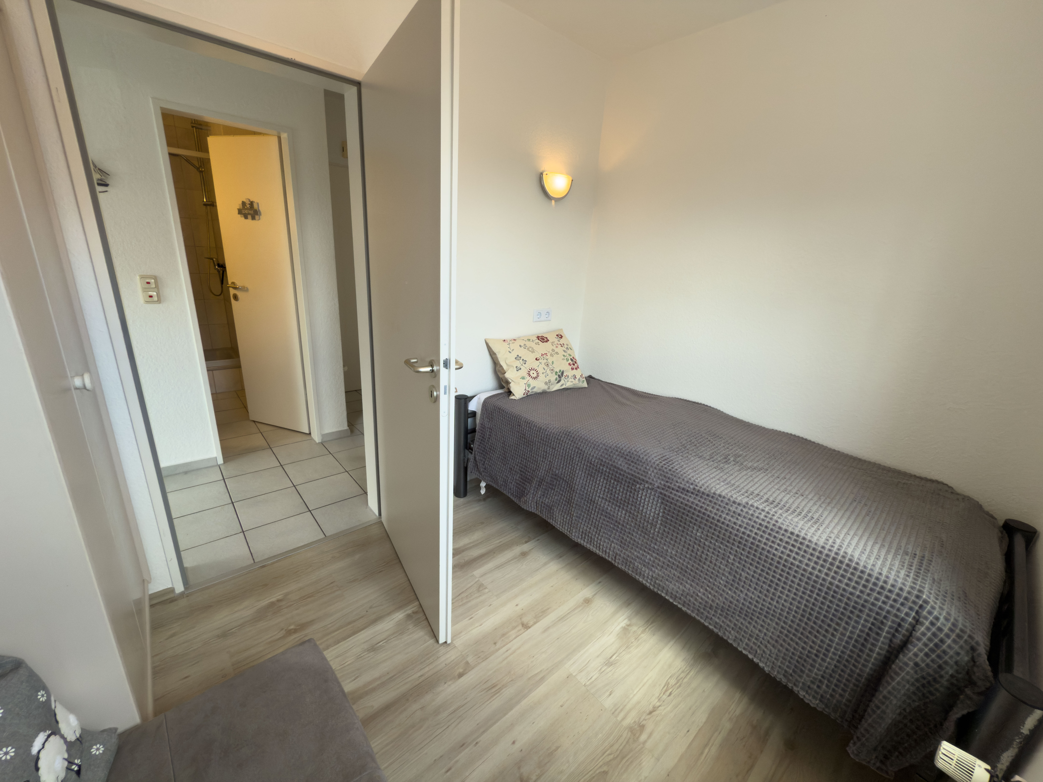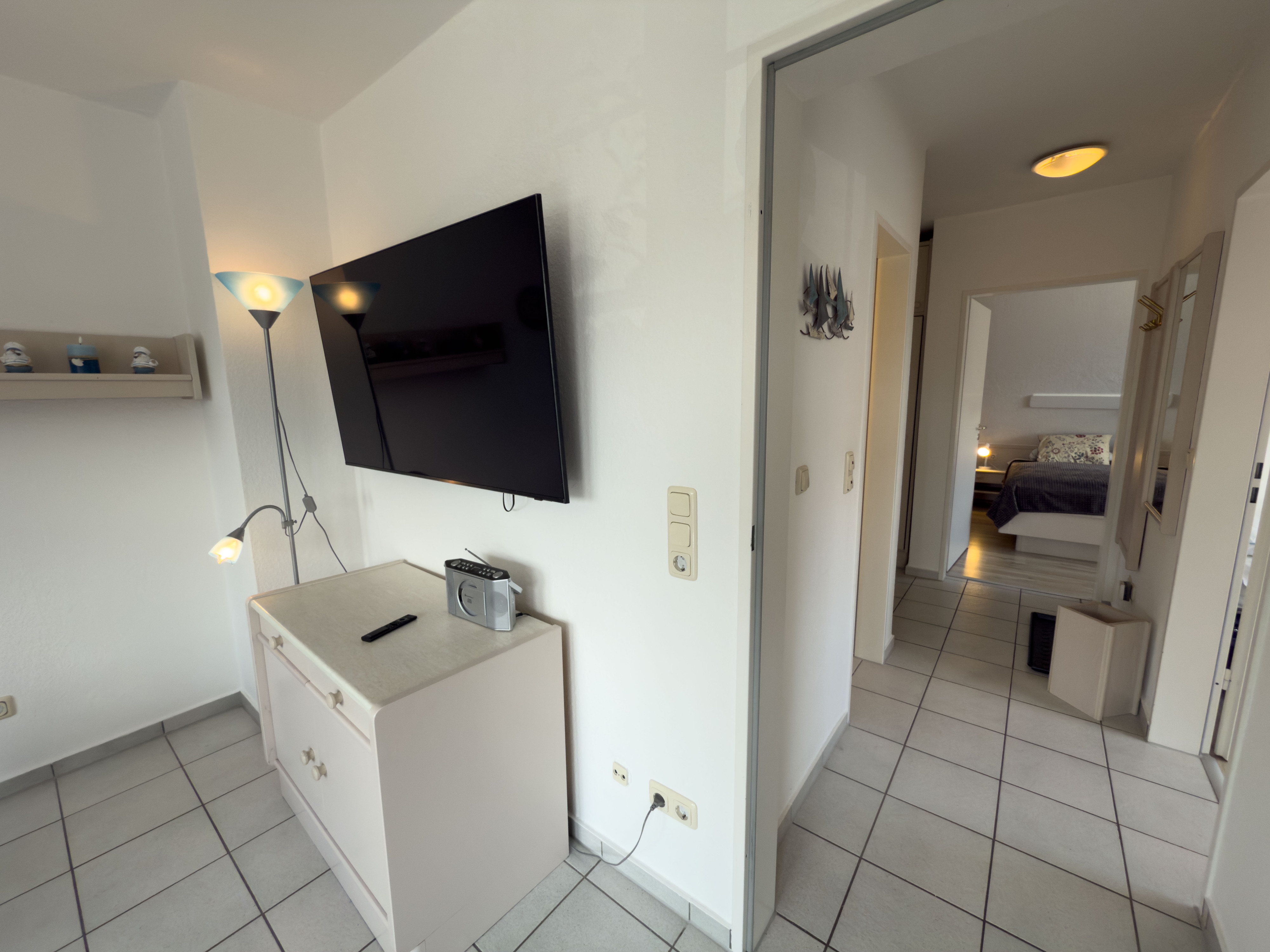 Die Wohnung ist hell und freundlich eingerichtet und verfügt über eine offene Wohnküche mit gemütlichem Essbereich, ein Wohnzimmer mit TV, zwei Schlafzimmer – eines mit Doppelbett, das andere mit einem Einzelbett – sowie ein modernes Badezimmer mit Dusche. Der möblierte Balkon lädt zum Verweilen an der frischen Luft ein.