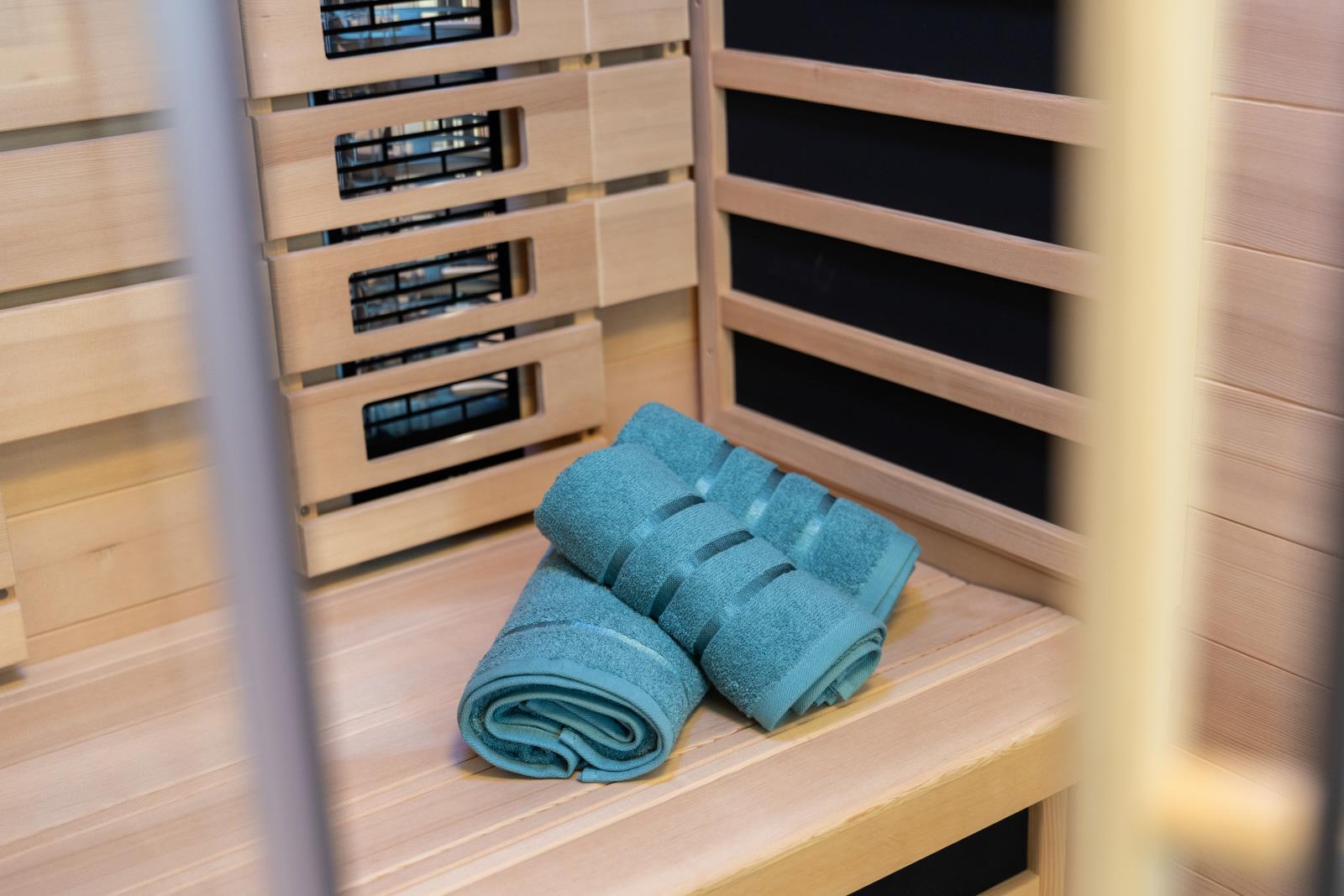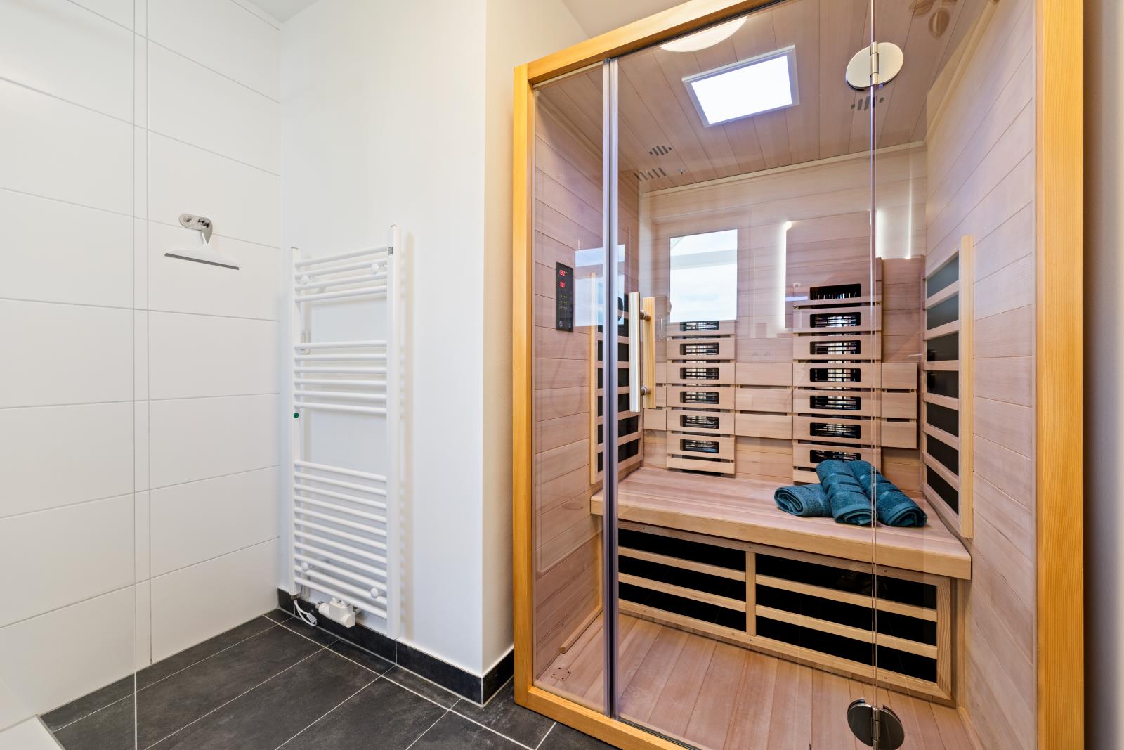 Eine Infrarot-Sauna mit LED-Farblichttherapie und Soundsystem sorgen für wohltuende Wellnessmomente – ideal nach einem langen Spaziergang am Strand oder einem aktiven Tag an der frischen Ostseeluft.