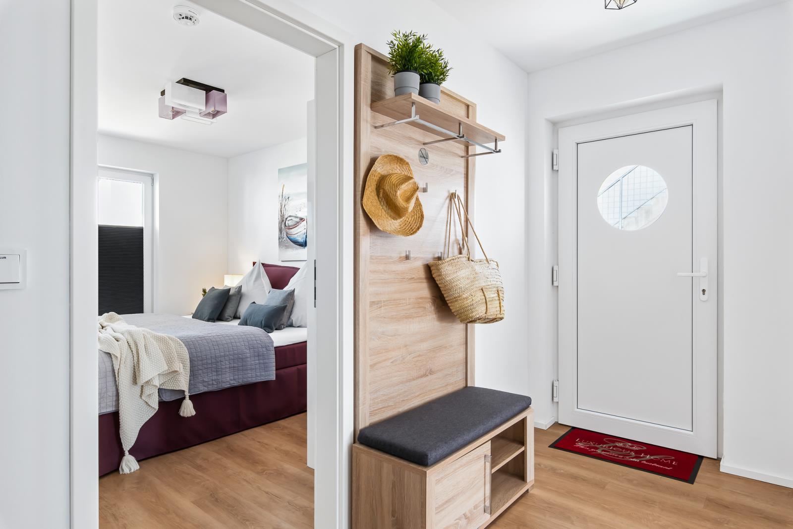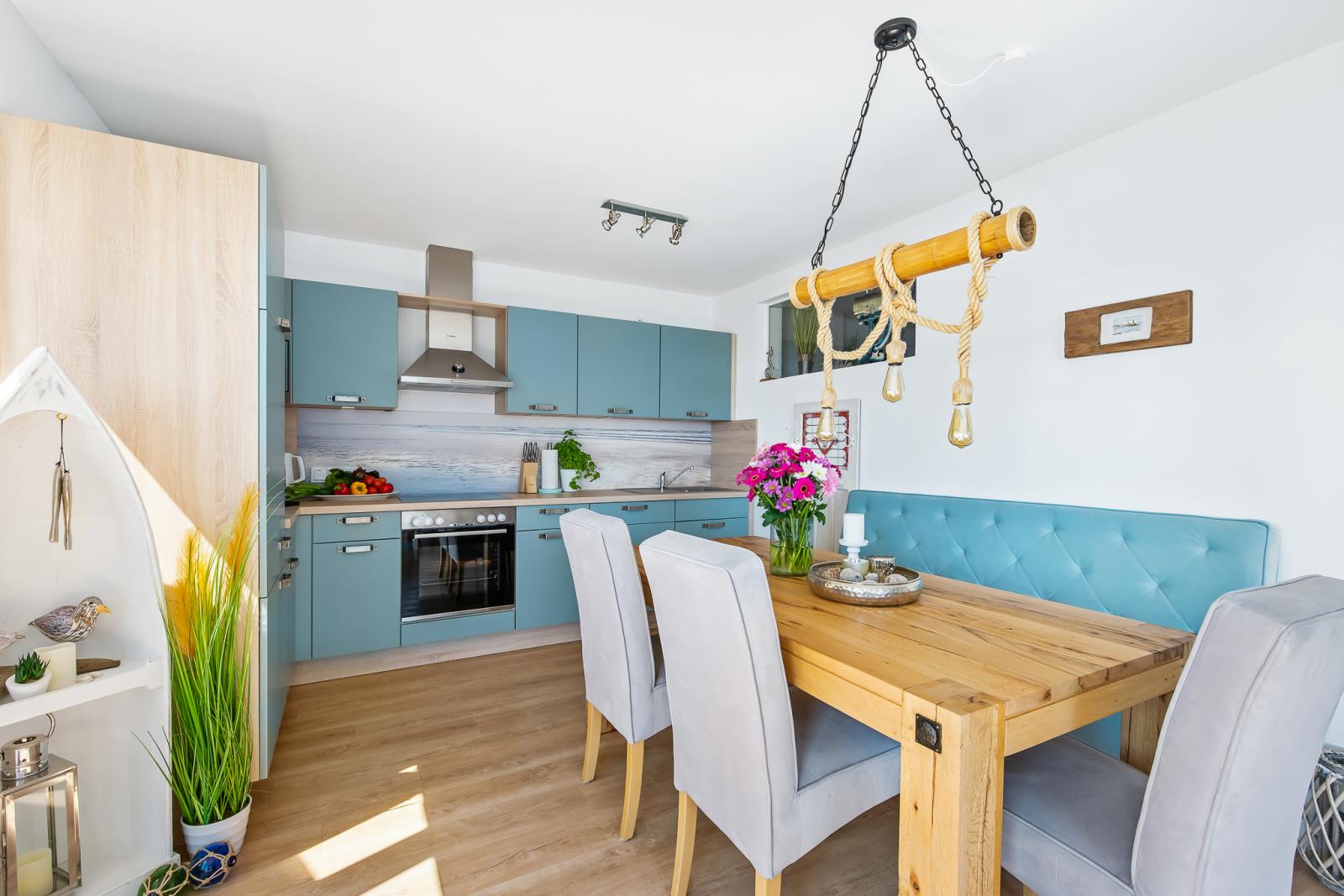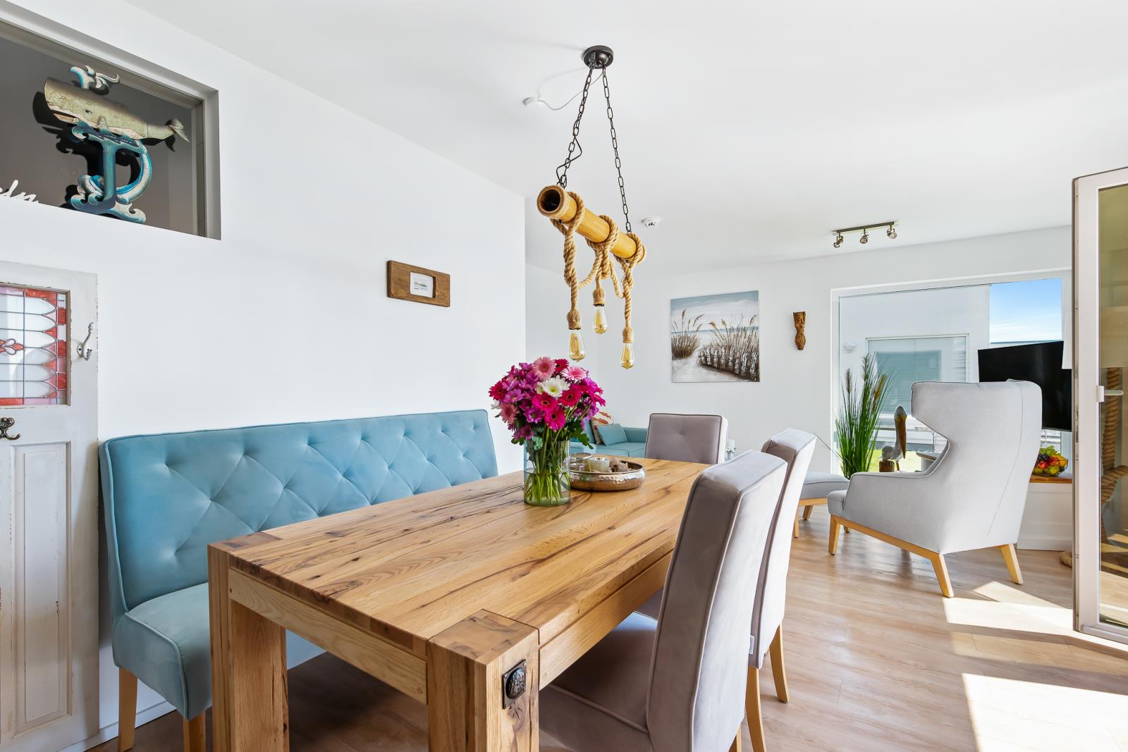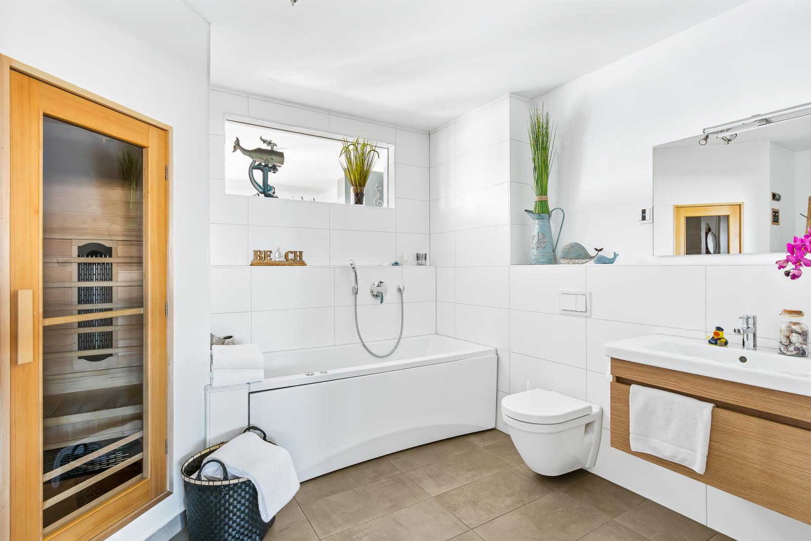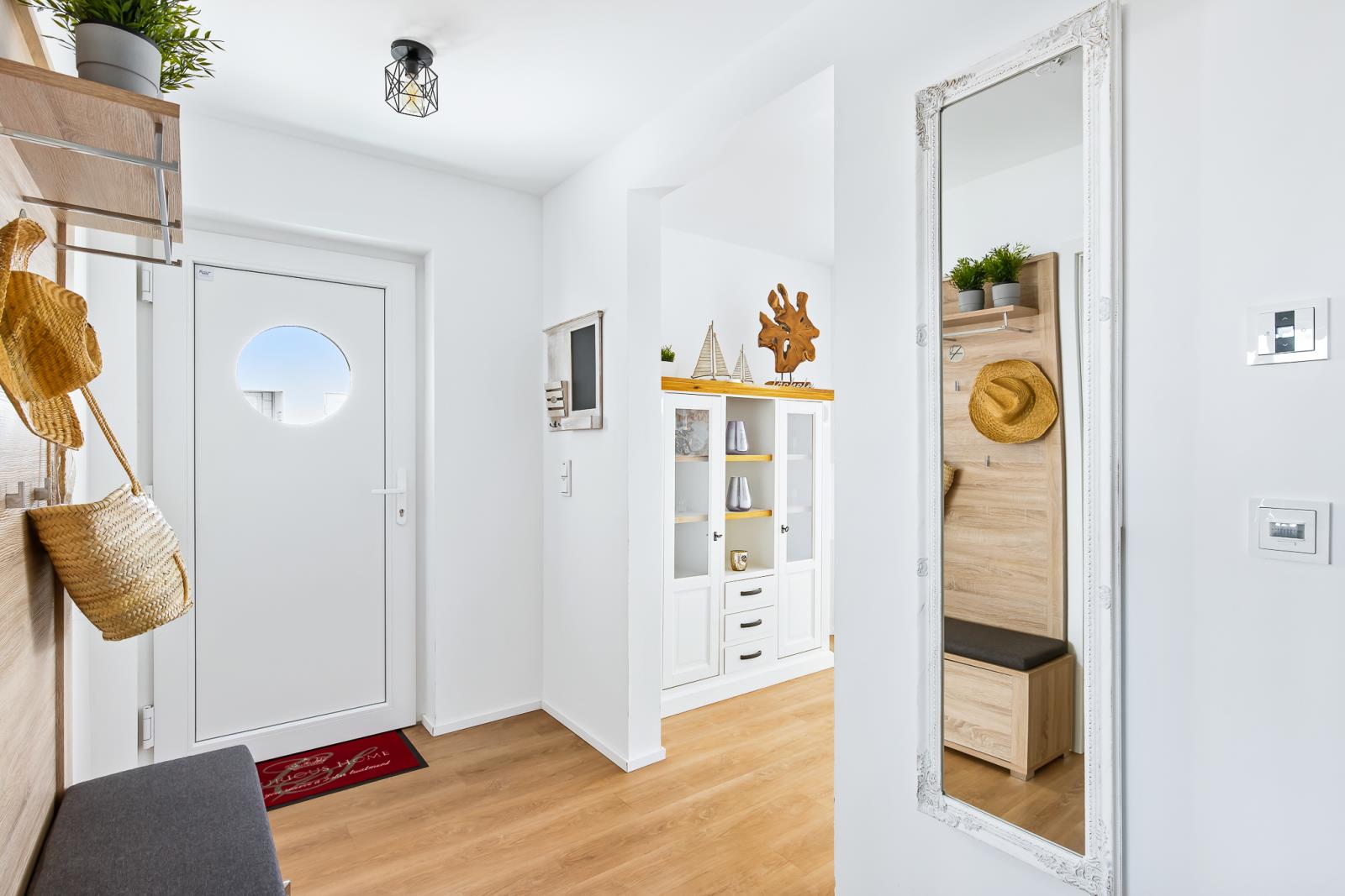 Im Inneren empfängt Sie stilvoller Komfort mit hochwertiger Ausstattung und viel Liebe zum Detail. Eine Infrarot-Sauna mit LED-Farblichttherapie und Soundsystem sowie eine Whirlpool-Badewanne sorgen für wohltuende Wellnessmomente – ideal nach einem langen Spaziergang am Strand oder einem aktiven Tag an der frischen Ostseeluft. Der offene Wohn- und Essbereich überzeugt mit maritimem Flair, einer voll ausgestatteten Küche und großen Panoramafenstern, die den Blick auf die Marina freigeben – perfekt für gesellige Abende oder ein ausgedehntes Frühstück mit Wasserblick.