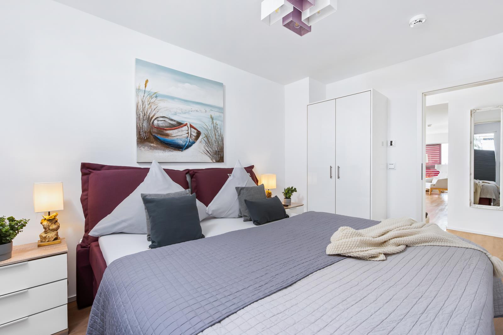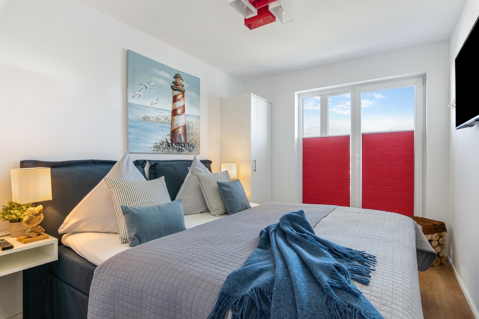Zwei gemütliche Schlafzimmer bieten jeweils direkten Zugang zur zweiten Terrasse und schaffen Rückzugsorte zum Lesen, Träumen und Ausschlafen. Sat-TV, WLAN, Fußbodenheizung und moderne Unterhaltungstechnik garantieren Komfort und Unterhaltung – auch an ruhigeren Tagen oder in der kühleren Jahreszeit.