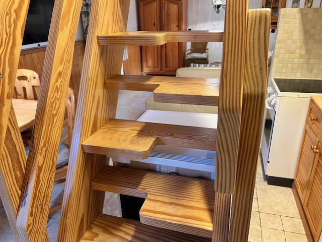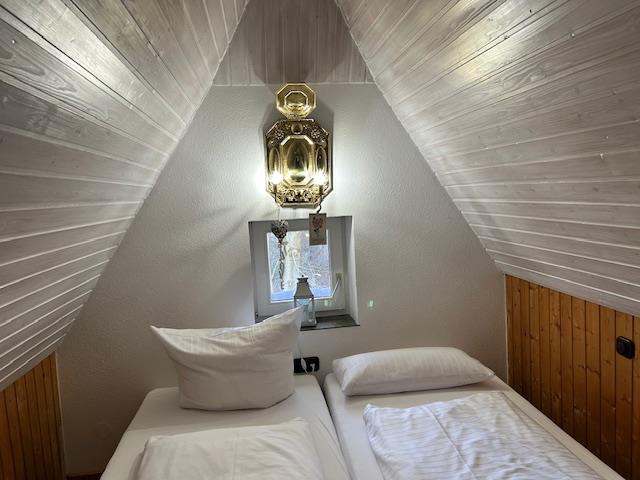 Bad und Schlafzimmer sind über eine steile Treppe nach oben erreichbar,