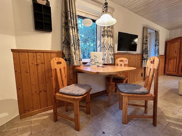 skandinavisch gemütlich eingerichtet, offene Küche im Wohnbereich, kleine Essecke, gemütliches Sofa,