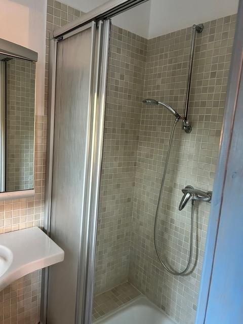 Diese Wohnung besticht durch einen harmonischen Mix aus rustikal-ländlichen und modern-maritimen Elementen. Sie vermittelt Gemütlichkeit und Wärme, Die weißen Holzvertäfelungen strahlen Helligkeit und Frische aus. Die Funktionen Essen und gemütliches Sitzen sind geschickt getrennt. - eigene Terrasse mit Gartenmöbeln - kleines Bad: Dusche (Einstieg 25cm) - Küche: 2-Platten Herd, kleiner Kühlschrank - 1 Schlafzimmer: Doppelbett