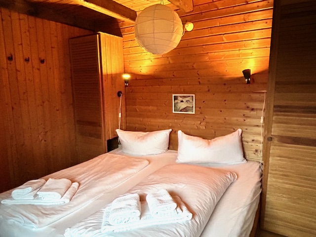 - Schlafzimmer 1 im Erdgeschoss (Doppelbett, mit Tür)
