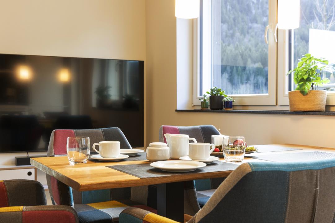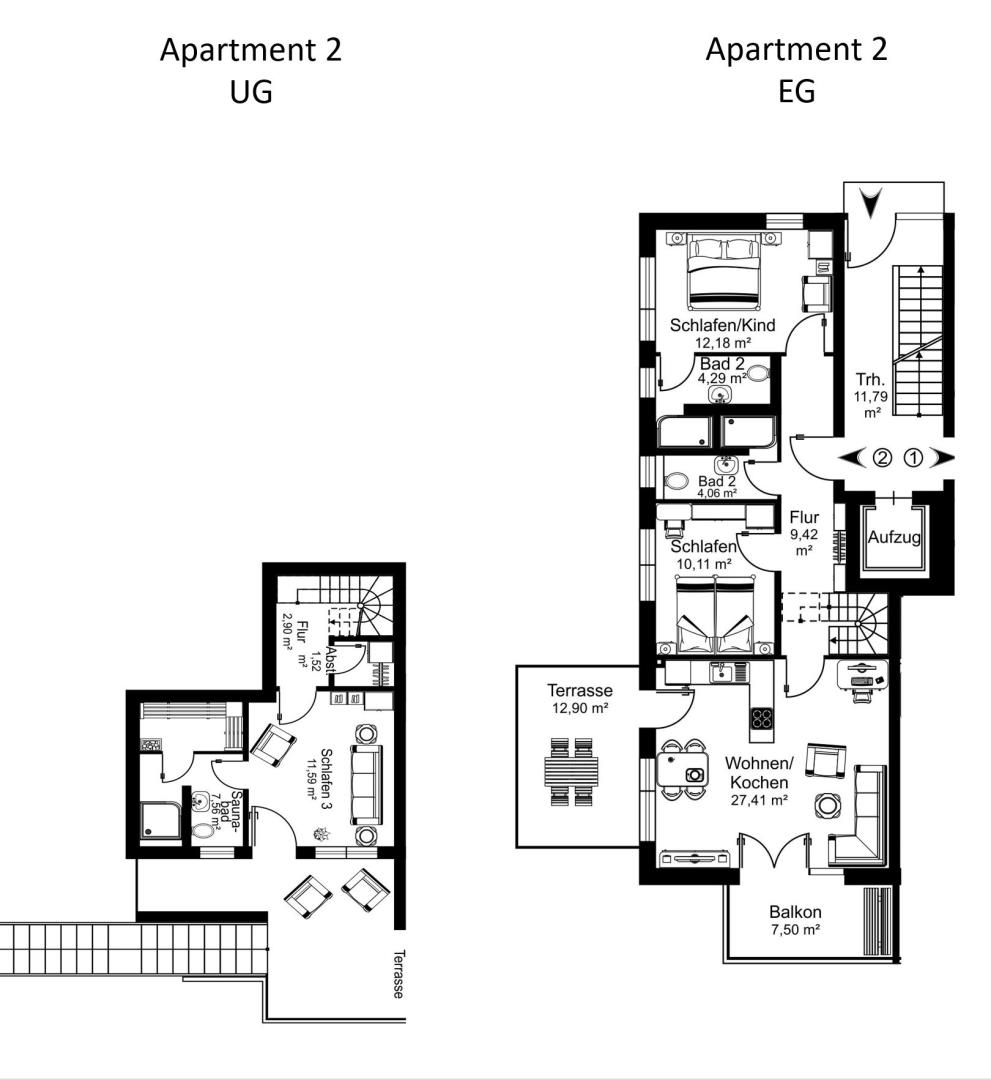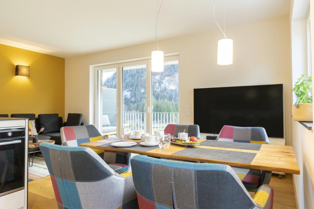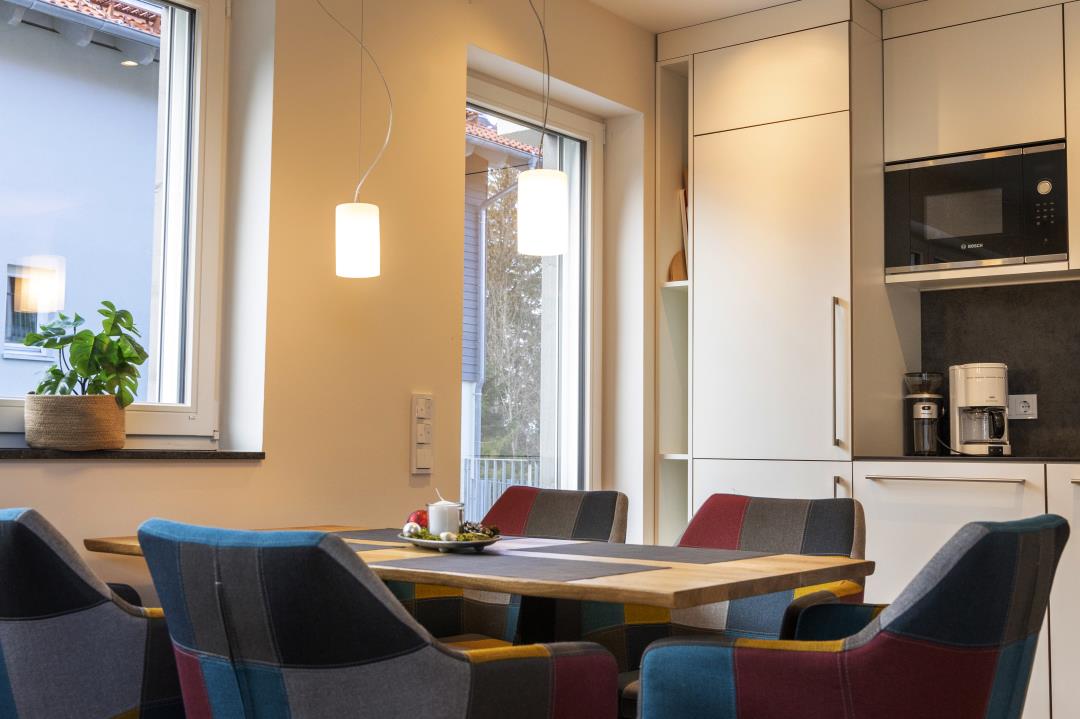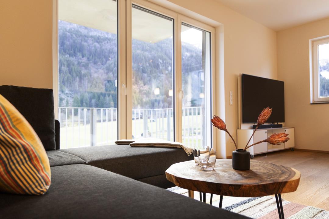Auf einer Fläche von ca. 96 qm bietet Ihnen diese Maisonettewohnung (Erdgeschoss und Souterrain) ein großzügiges Raumangebot: 3 gemütliche Schlafzimmer, 3 Bäder in italienischem Feinsteinzeug und mit einer Ausstattung von Villeroy & Boch sowie ein großes Wohnzimmer mit hochwertigem Parkett aus geölten Eichendielen und Designer-Möbeln, großem Fernseher und Soundbar erwarten Sie. Die angrenzende offene Küche ist mit allem ausgestattet, was Sie für einen erholsamen Aufenthalt benötigen. Im Untergeschoss lädt eine Sauna zum Entspannen ein, Saunatücher liegen für Sie bereit. Auf den 3 Außenterrassen dieser Wohnung können Sie den wunderschönen Blick auf die umliegenden Berge ausgiebig genießen. Auch Ihre vierbeinigen Lieblinge sind herzlich willkommen.
