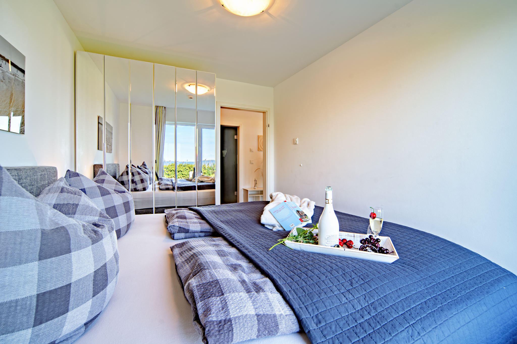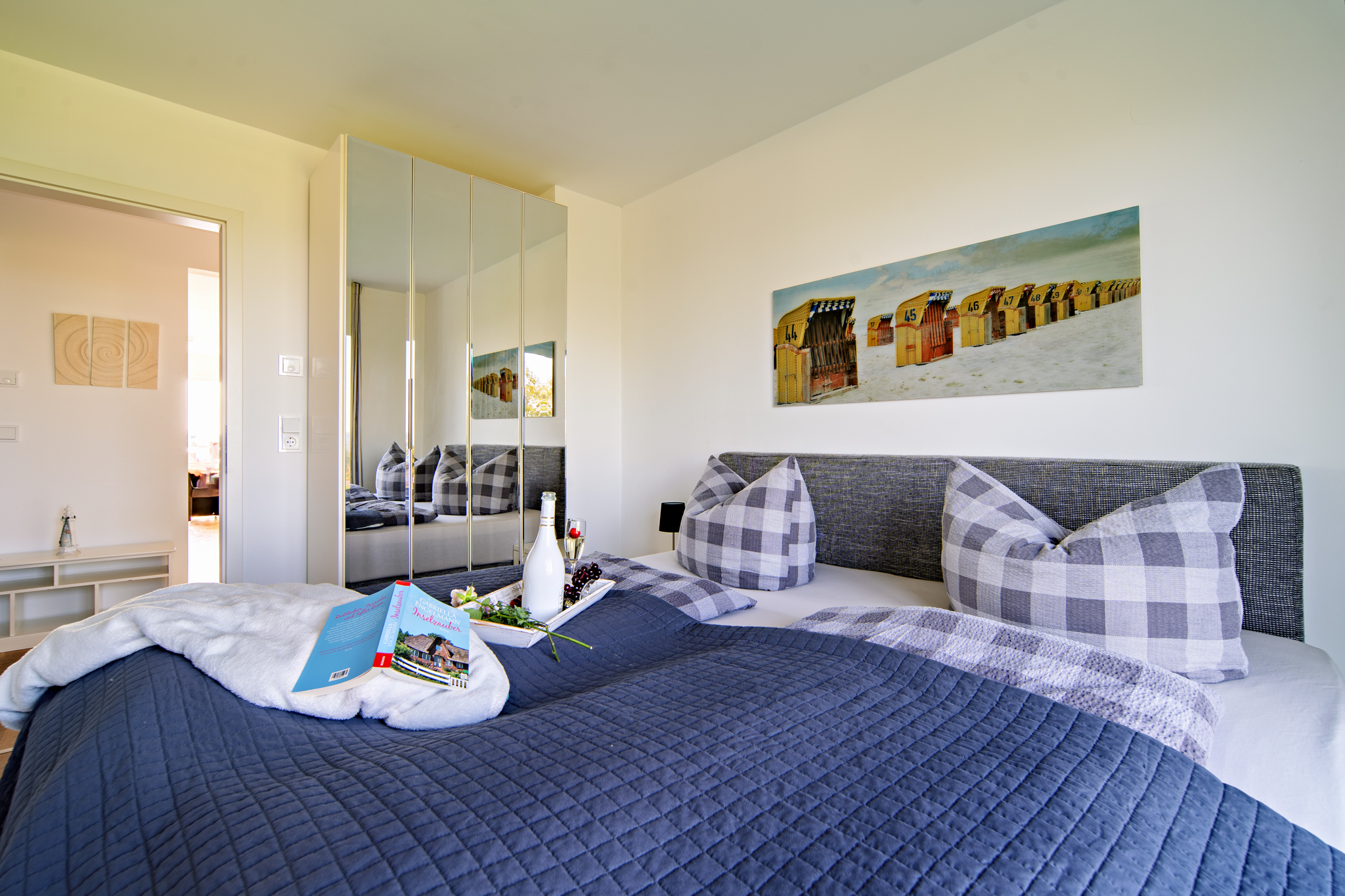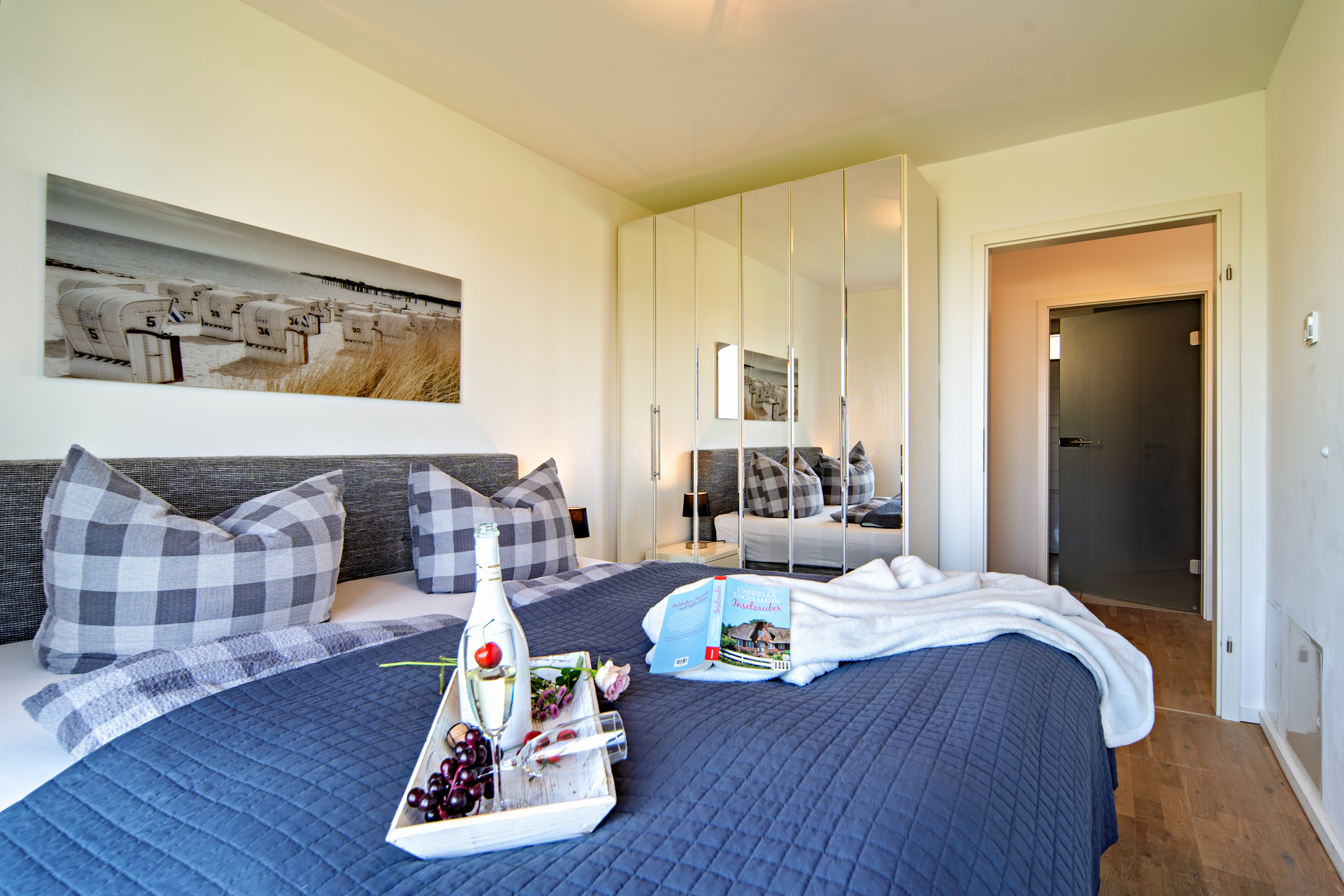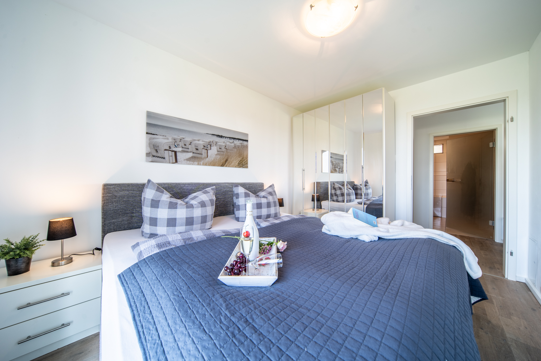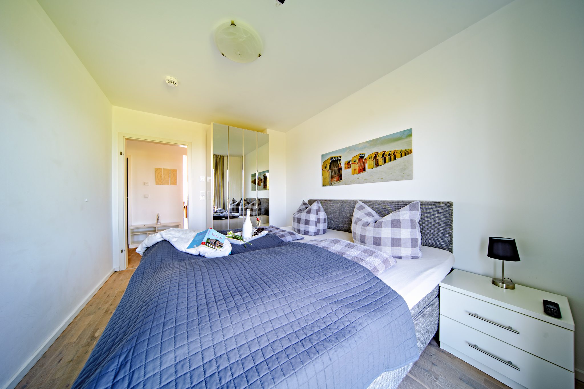 Die beiden Schlafzimmer verfügen über hochwertige Boxspringbetten für einen erholsamen Schlaf. Das Masterbedroom verfügt zusätzlich über einen TV. Edle Parkettfußböden und Fußbodenheizung schaffen eine behagliche Atmosphäre. Die geschmackvolle Möbelierung rundet das maritime Erlebnis ab.