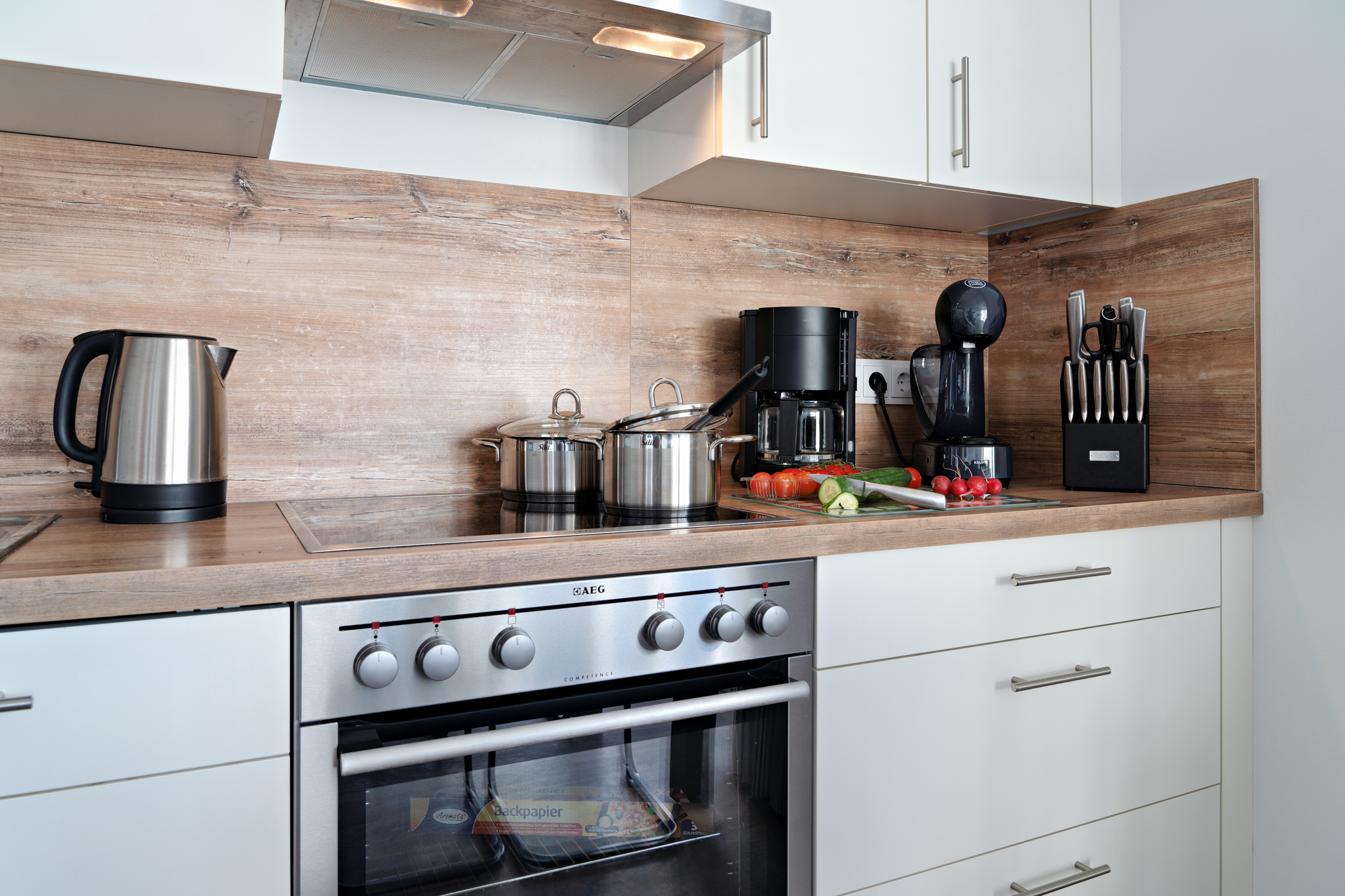 Die vollausgestattete Küche mit Ceran Kochfeld, Backofen, Mikrowelle, Spülmaschine, Kühlschrank mit Gefrierfach, Filterkaffeemaschine, Dolce Gusto Kapselmaschine, Teekanne mit Stövchen und Wasserkocher runden die Ausstattung ab.
