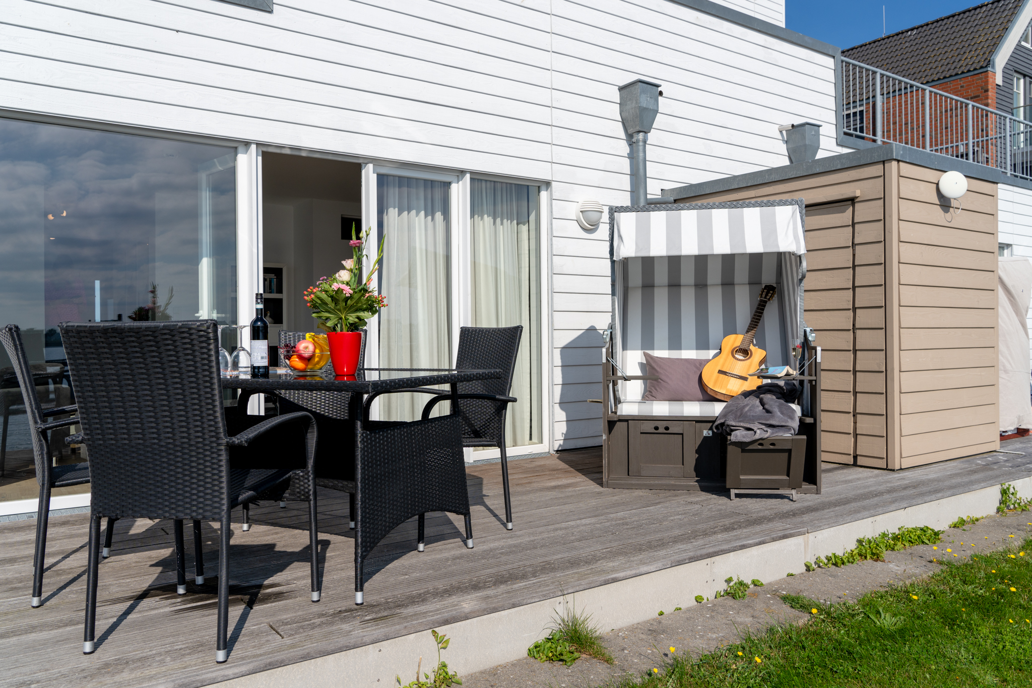 Im Erdgeschoss eines der HAFENHÄUSER AM KAIANLEGER bietet die Ferienwohnung auf 78 Quadratmetern ausreichend Platz für 2-5 Personen. Die Terrasse mit Hafenblick und einem Strandkorb lädt zum Entspannen ein.