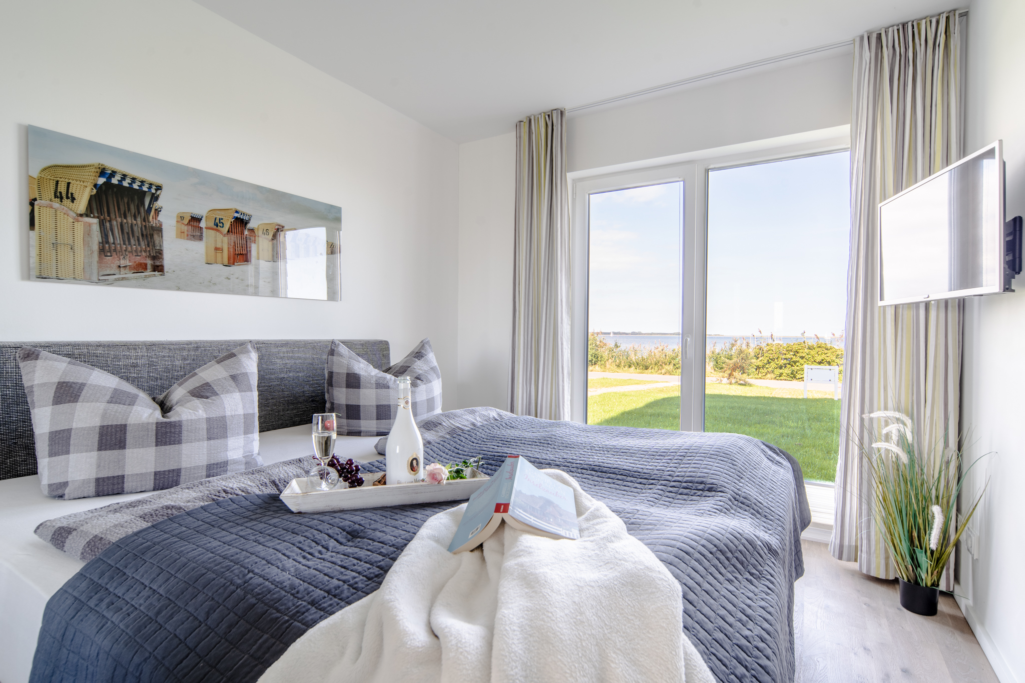 Erleben Sie den unvergleichlichen Blick auf die Schlei, die Ostsee und den Leuchtturm von Schleimünde vom Schlafzimmer aus. Vom Wohnzimmer und der Terrasse aus genießen Sie den Ausblick auf die Marina vom Ostseeresort Olpenitz und deren majestätischen Segelschiffe.