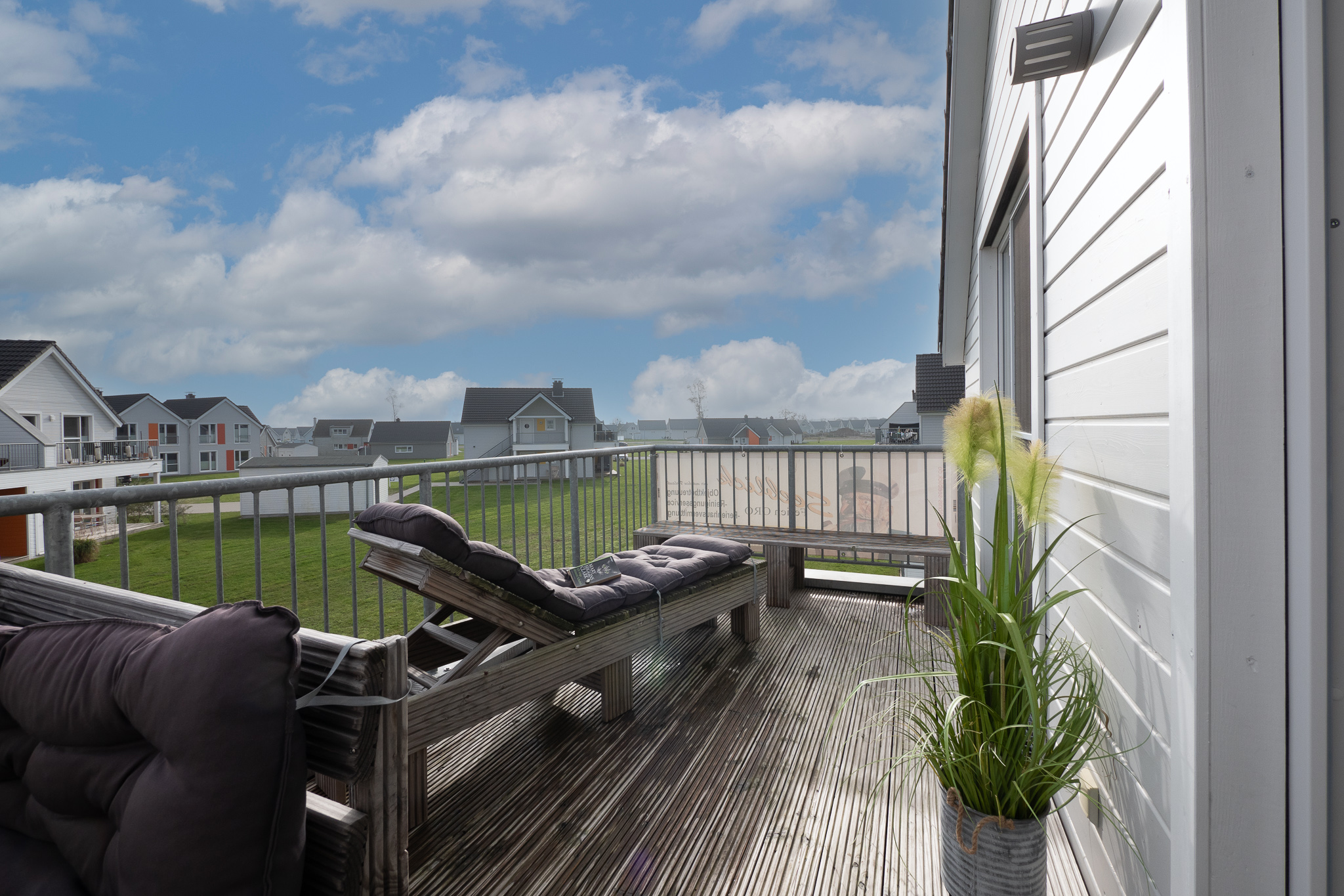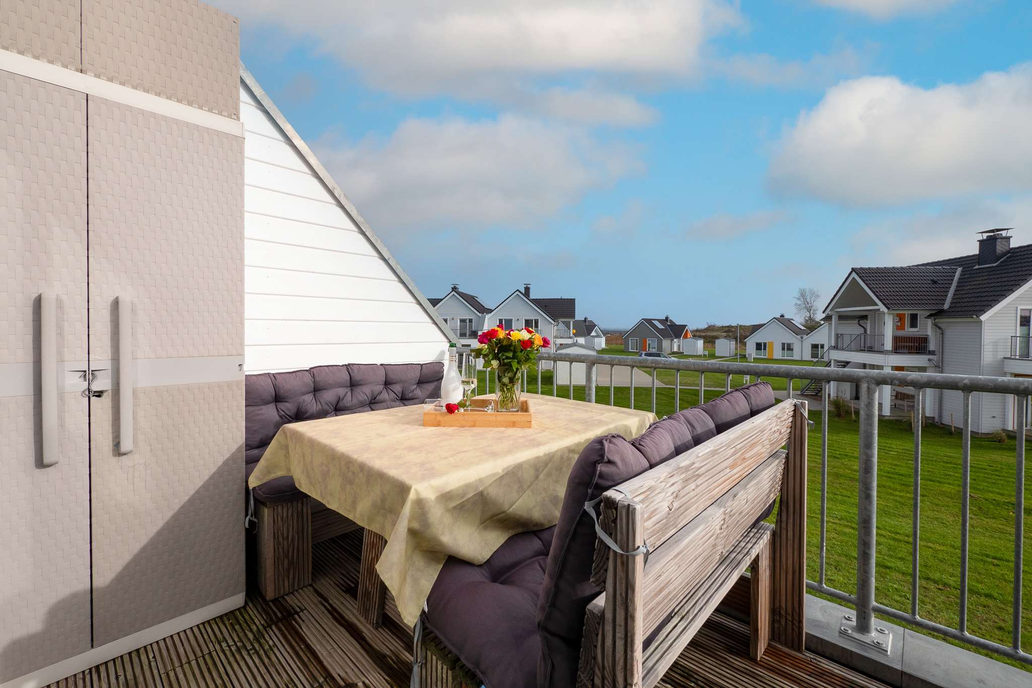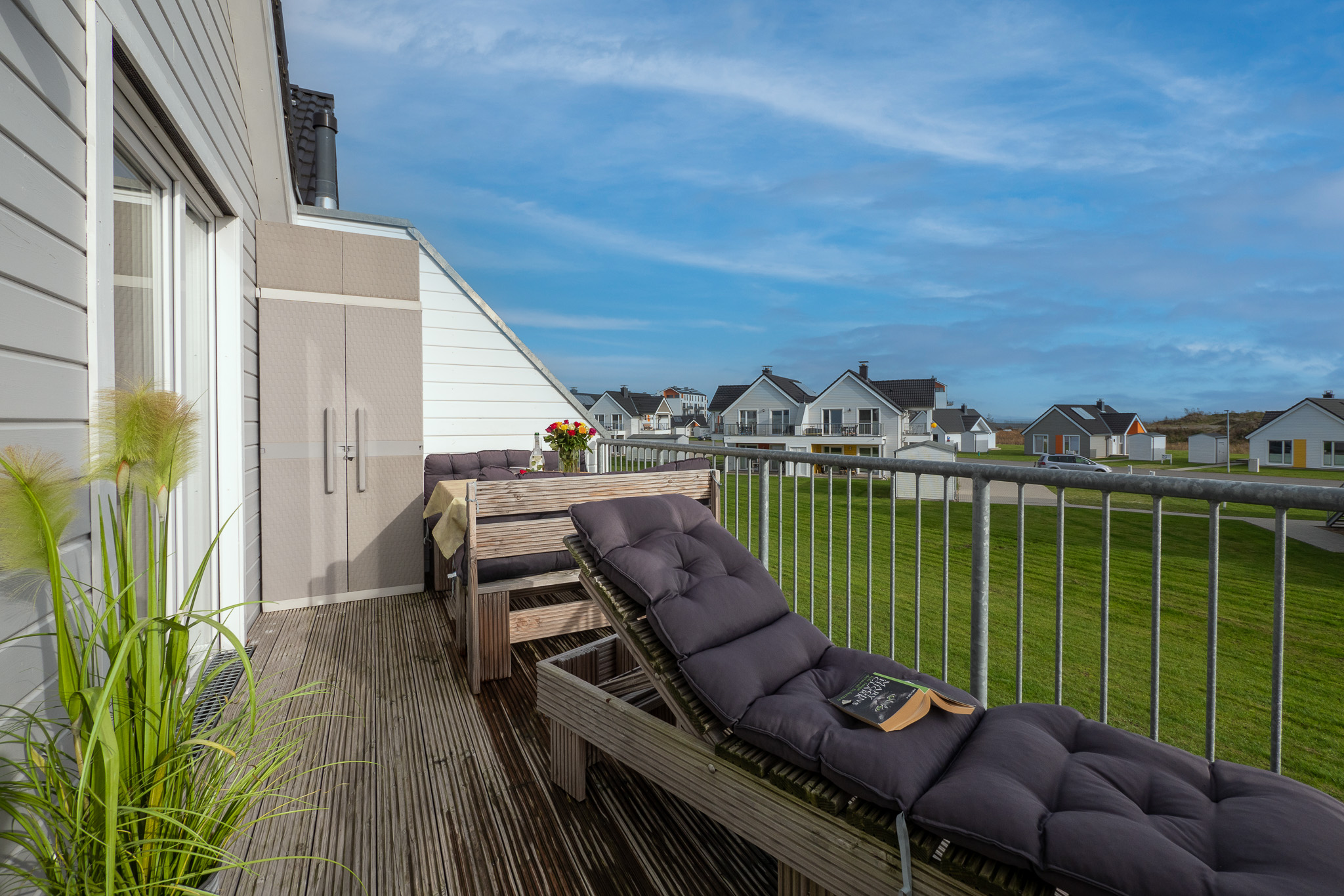 Die Lage ist super. Von den Schlafzimmern und ebenso dem vorderen Balkon kann man - siehe oben - einen Blick auf den Sonnenuntergang werfen, der fast jeden Abend wunderschön war. Vom großen Balkon, der über das Wohnzimmer und die Küche erreichbar ist, hat man einen Blick auf die Gemeinschaftsgärten der Anlage und kann damit den Kindern beim Fußball- oder Ferderballspielen zusehen :-). Ferner kann man zwischen den Häusern die Ostsee erspähen, die man zu Fuß in 5-10 Minuten und mit dem Fahrrad in 2-4 Minuten erreicht. In der gleichen Richtung befindet sich der Adventure-Minigolfplatz (ca. 5 Gehminuten).