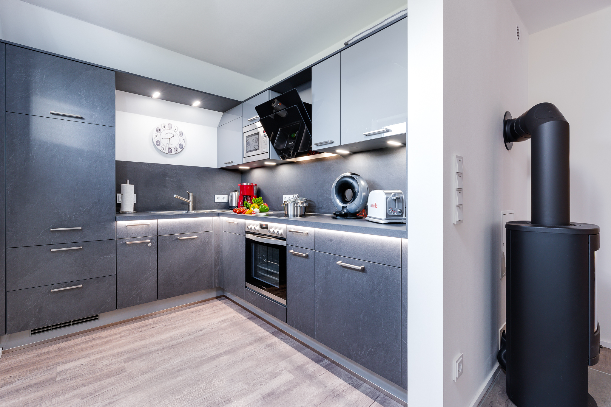 Zur Küche lässt sich nur sagen, dass wir bislang in Urlauben keine besser ausgestattete erleben durften. Da fehlt es an gar nichts (Spülmaschine, Induktionsherd mit Backofen, Kühl-/Gefrierkombi, Mikrowelle, Waschmaschine, Kaffeemaschine, Kaffeeautomat, Toaster, Pürierstab, umfangreiches Backzubehör, ...).