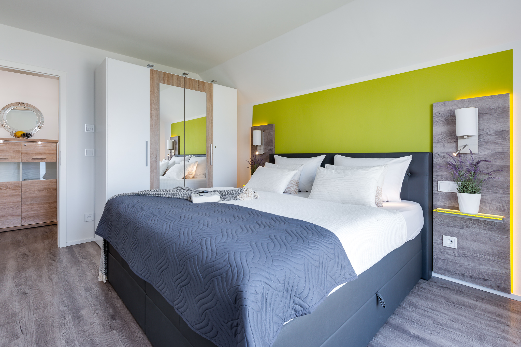 Ferner wurde sehr viel Wert auf hochwertige Lampen und Beleuchtung gelegt. Dies fällt gerade bei den möglichen Einstellungsoptionen im Bad, Küche und in den Schlafzimmern und der dort möglichen Ambientebeleuchtung auf.