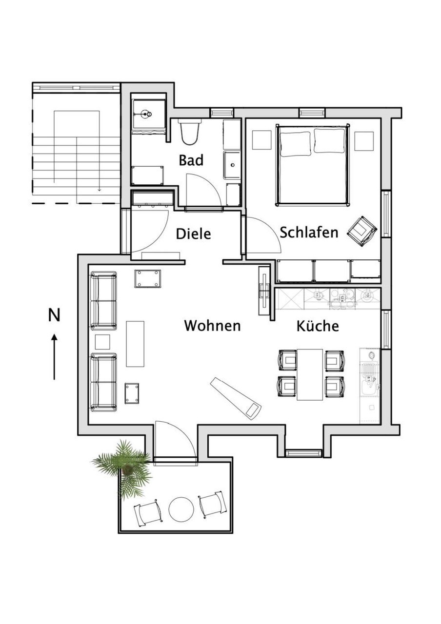 Im hellen Wohnbereich lädt Sie eine zweiteilige Couchgarnitur und eine gemütliche Ruheliege zum Entspannen ein, mit Flachbild-TV und kostenfreiem WLAN ist für mediale Unterhaltung ebenfalls gesorgt. In der direkt angrenzenden, offenen und top modernen Küche sind diverse technische Geräte vorhanden, die ein komfortables Zubereiten von leckeren Speisen ermöglichen. Das Tageslichtbad wurde ebenfalls sehr hell und komfortabel eingerichtet und mit einer großen Dusche ausgestattet. Für die wohlverdiente Nachtruhe steht Ihnen im Schlafzimmer ein hochwertiges Boxspringbett in den Maßen 180x200cm zur Verfügung.