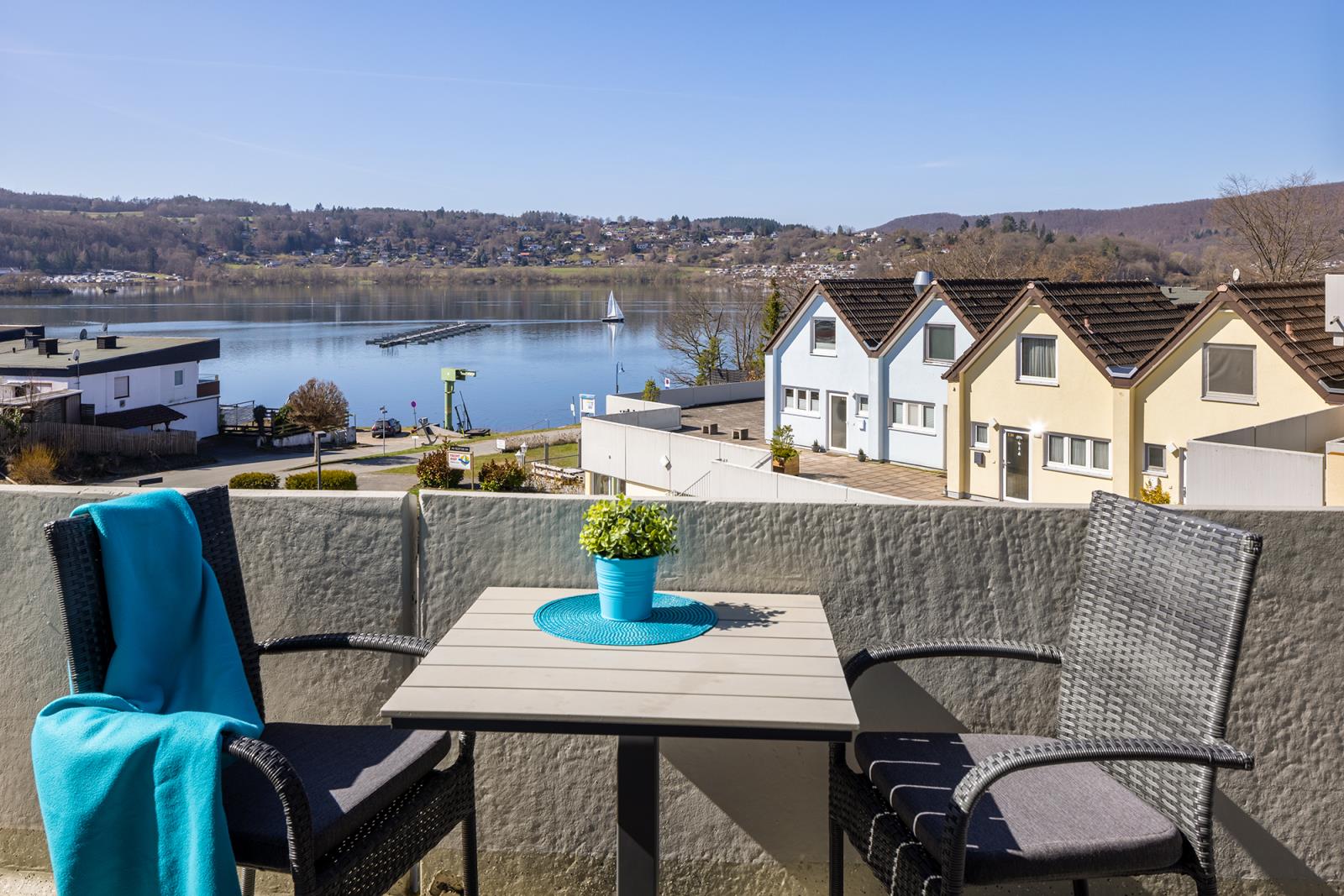 Die Ferienwohnung D4 liegt in der Ferienanlage "YachtHof" auf der Halbinsel Scheid am Edersee. Sie verfügt über ein separates Schlafzimmer mit Doppelbett und Balkon, ein Wohnzimmer mit SchlafCouch, TV und Balkon mit direktem SEEBLICK. Es gibt ein kleines Bad mit Badewanne und WC. Im Eingangsbereich befindet sich auch eine zusätzliche Gästetoilette. Die Küche verfügt über Spülmaschine, Kühlschrank, Backofen, Ceranfeld, Mikrowelle, Kaffeemaschine, Wasserkocher und vieles mehr. Der Ausblick vom Balkon und Wohnzimmer DIREKT über den See ist ein Traum.