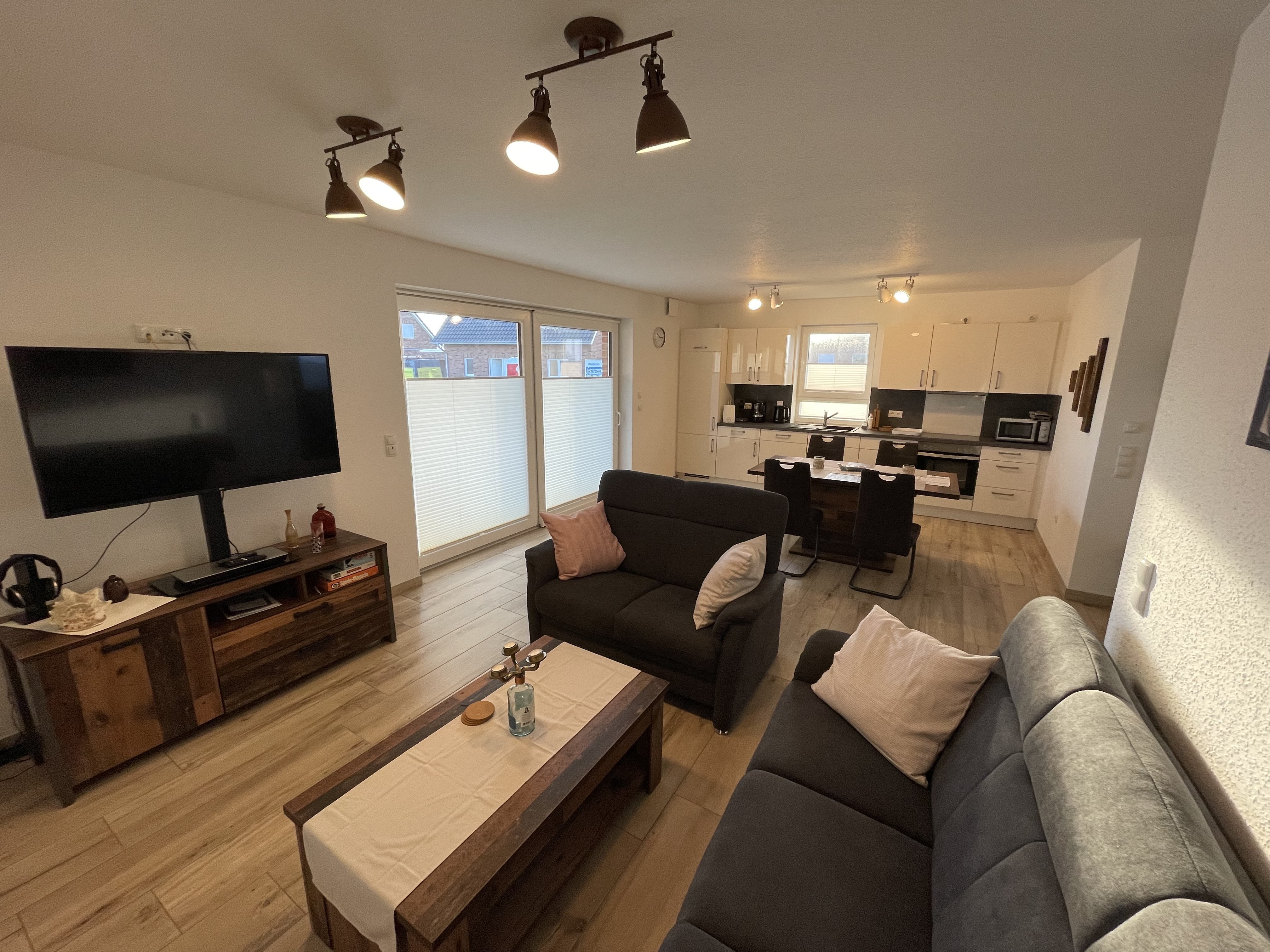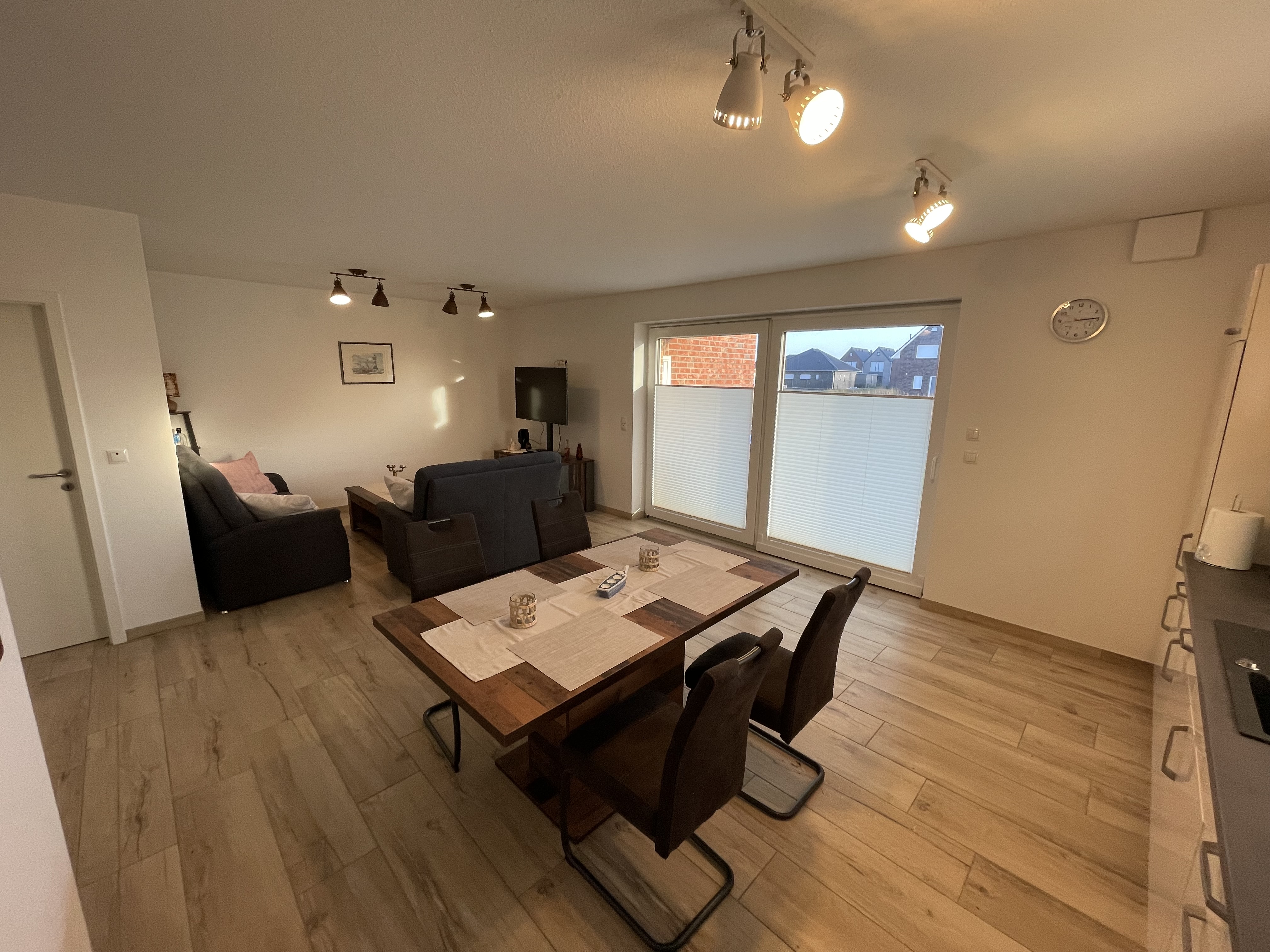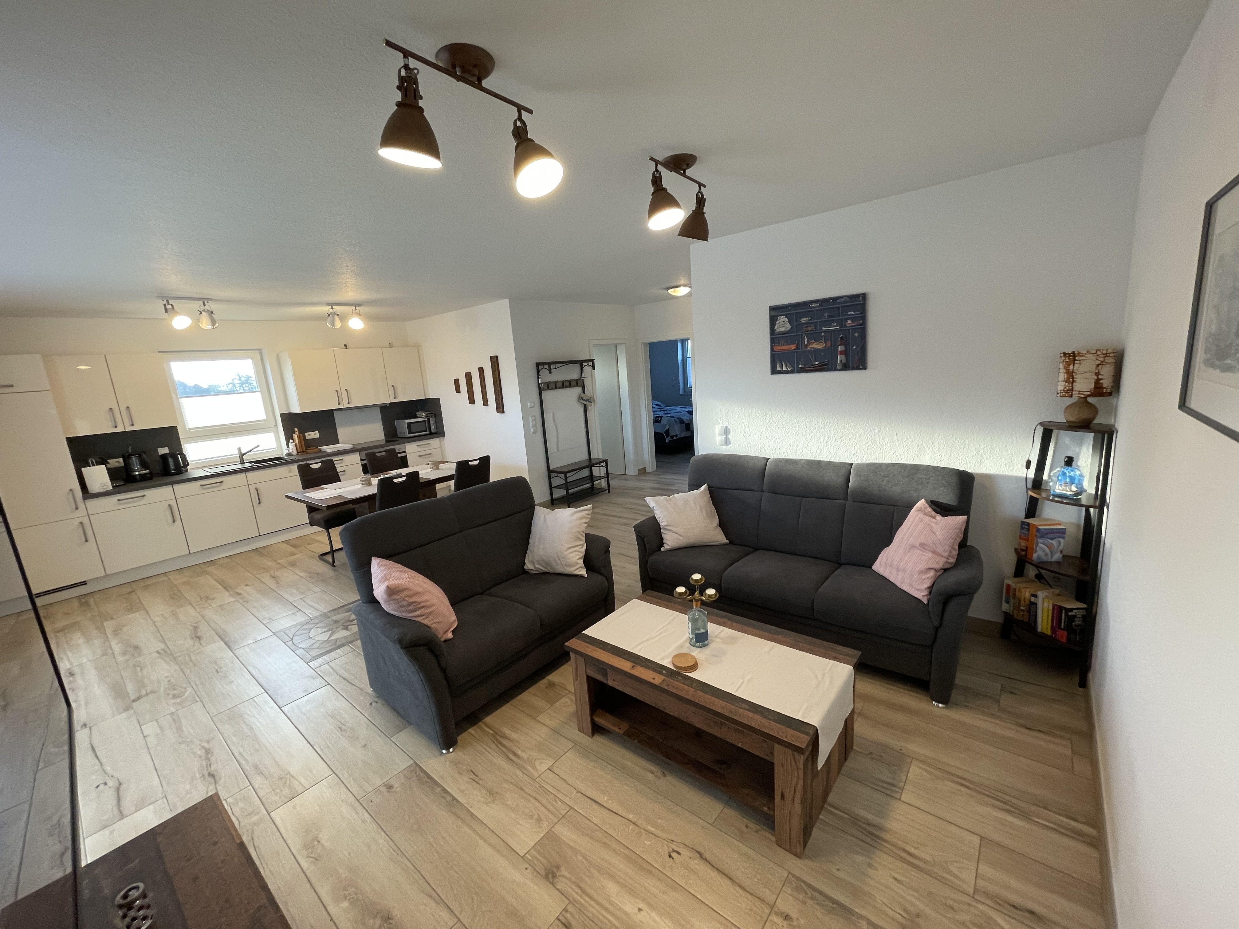 Die Wangerkajüte ist eine liebevoll eingerichtete Nichtraucher-Ferienwohnung im Erdgeschoss eines ruhigen Vierparteienhauses und bietet den idealen Rückzugsort für einen erholsamen Urlaub. Der helle, offen gestaltete Wohnbereich lädt mit einem gemütlichen Sofa und der voll ausgestatteten Küche zum Verweilen ein und schafft eine freundliche Atmosphäre zum Ankommen und Wohlfühlen.