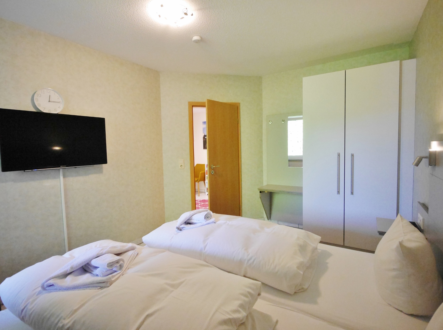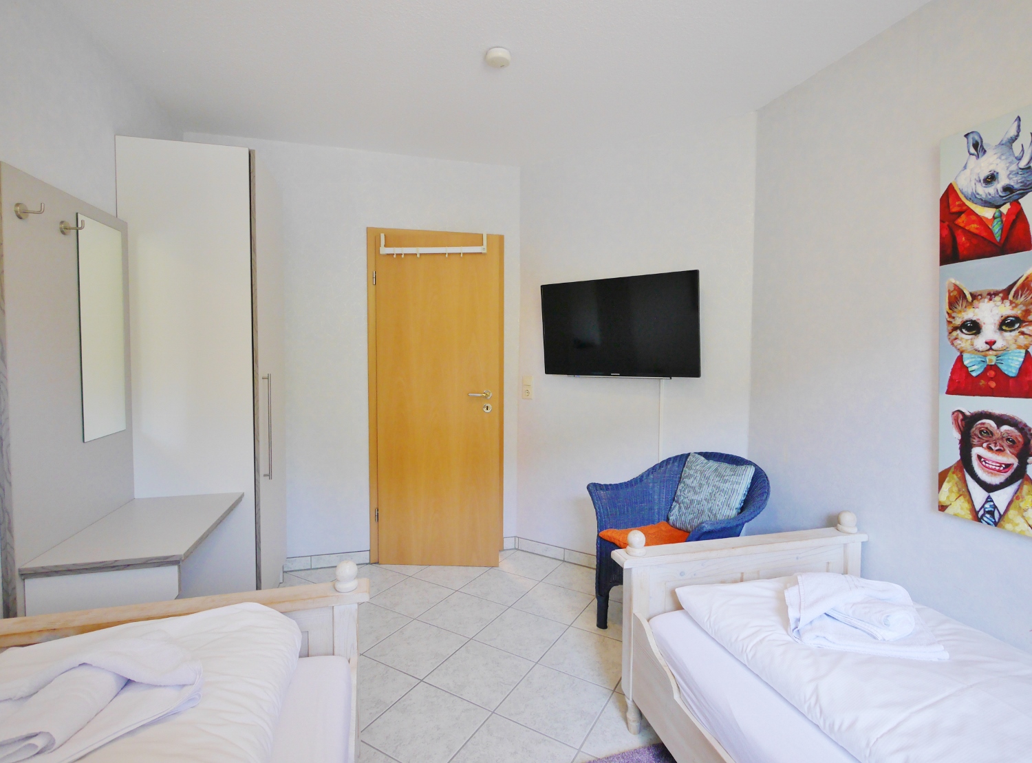 - weiteres Schlafzimmer mit zwei Einzelbetten,TV und Kleiderschrank