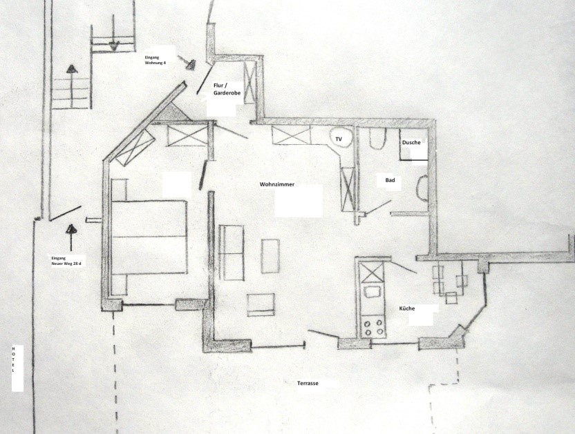 Die Fewo ist barrierearm, nicht jedoch barrierefrei nach DIN. Den Filter barrierefrei gibt es in Buchungsportalen leider nicht, weshalb wir das Ferienobjekt dort als barrierefrei angeben, denn es ist für viele Gehbehinderte dennoch gut nutzbar, insbesondere wegen der superzentralen Lage im Ort. Der ca. 30m kurze Weg vom P zur Wohnung ist gepflastert und ebenerdig bzw. die Schräge ist ungefähr DIN-gerecht. Die Türen zum Bad und in die Küche sind nur 70cm breit. Die Dusche 90x90cm hat eine Schwelle von 25 cm. Die Balkontür besitzt die übliche Schwelle.