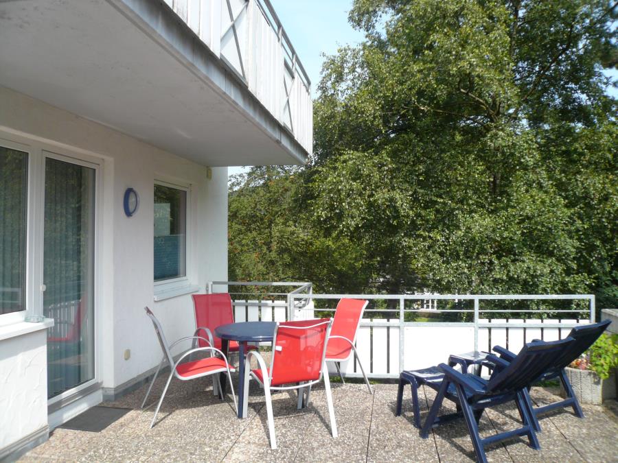 - große Südterrasse mit Sitzgruppe, Liegen und schönem Kurparkblick.