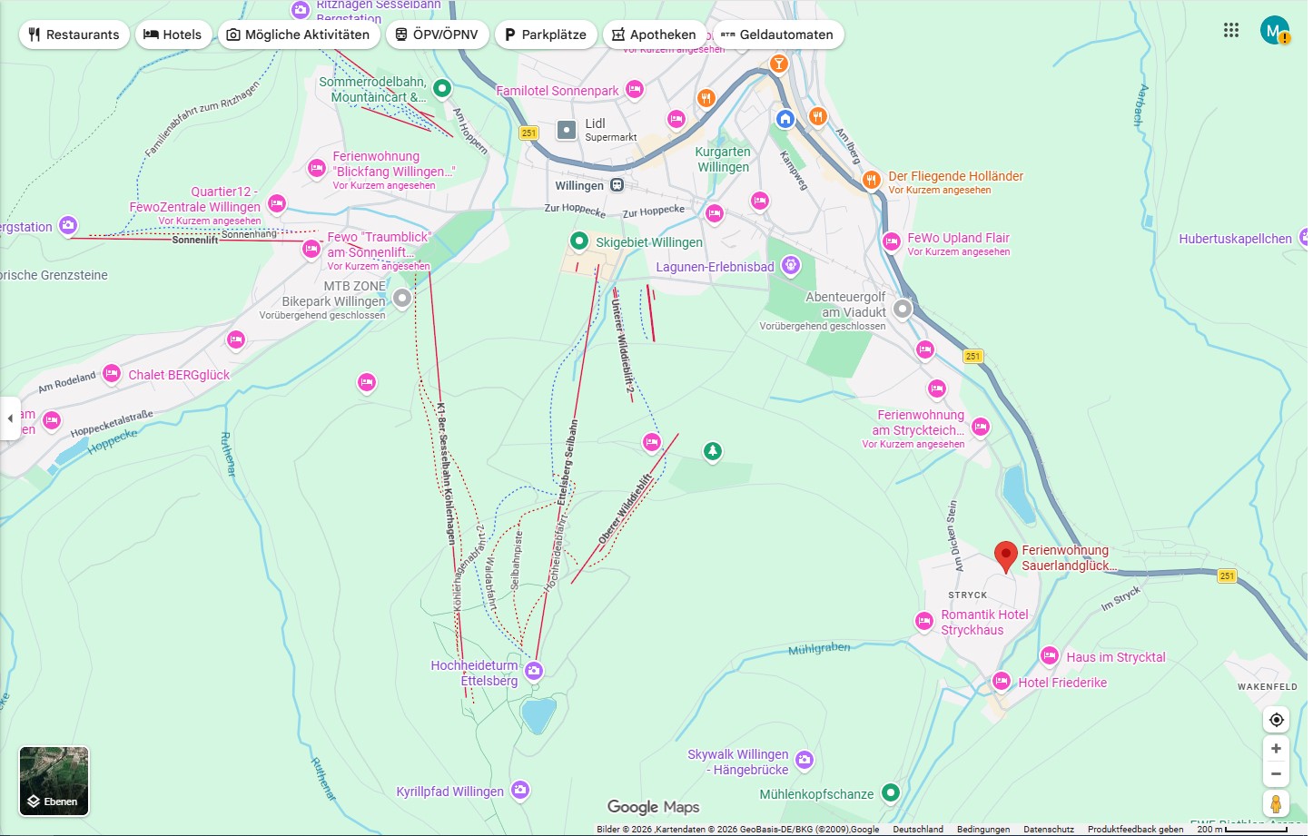 Wer in Willingen Komfort, Ruhe und Natur abseits - aber dennoch in Nähe des lebhaften Ortszentrums sucht, der ist hier genau richtig! Der Stryckpark, die Wanderwege, das Loipenzentrum und die Mühlenkopfschanze sind nur wenige Schritte entfernt. Zum Lagunen-Erlebnisbad, Eissporthalle, Besucherzentrum und Skilift sind es ca. 1000m.