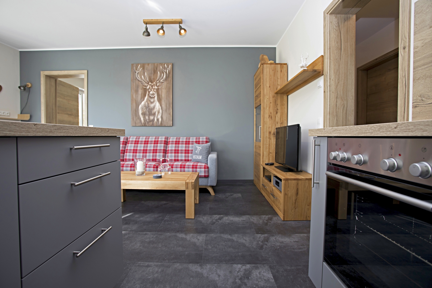 - offene Küche mit Geschirrspüler und guter Ausstattung