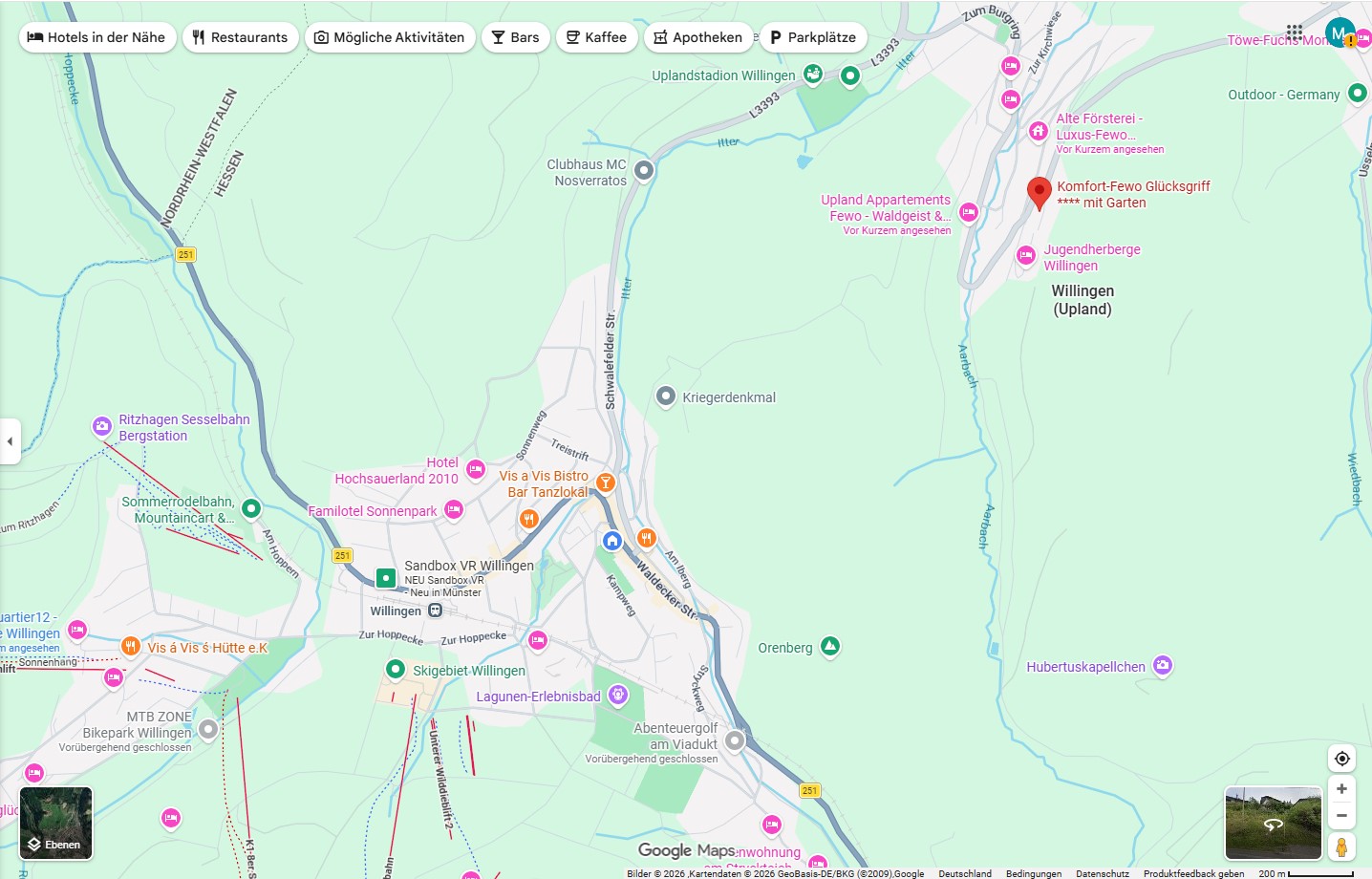Wer diese Fewo bucht, der tätigt einen wahren Glücksgriff. Das Appartement wurde zur Saison 2024 mit viel Herzblut kernsaniert, hochwertig möbliert und chic dekoriert. Die Fewo befindet sich in Höhenlage von Schwalefeld. Die Schwalefelder Ortsmitte mit Restaurants und Dorfladen erreichen Sie in wenigen Gehminuten. Ins Willinger Zentrum sind es ca. 4km und zum Diemelsee sind es mit dem PKW gerade mal 10 Minuten (10km). Genussurlauber, die Komfort, Ruhe und Naturnähe im Upland bevorzugen, finden hier wahrscheinlich ihr Lieblingsquartier.