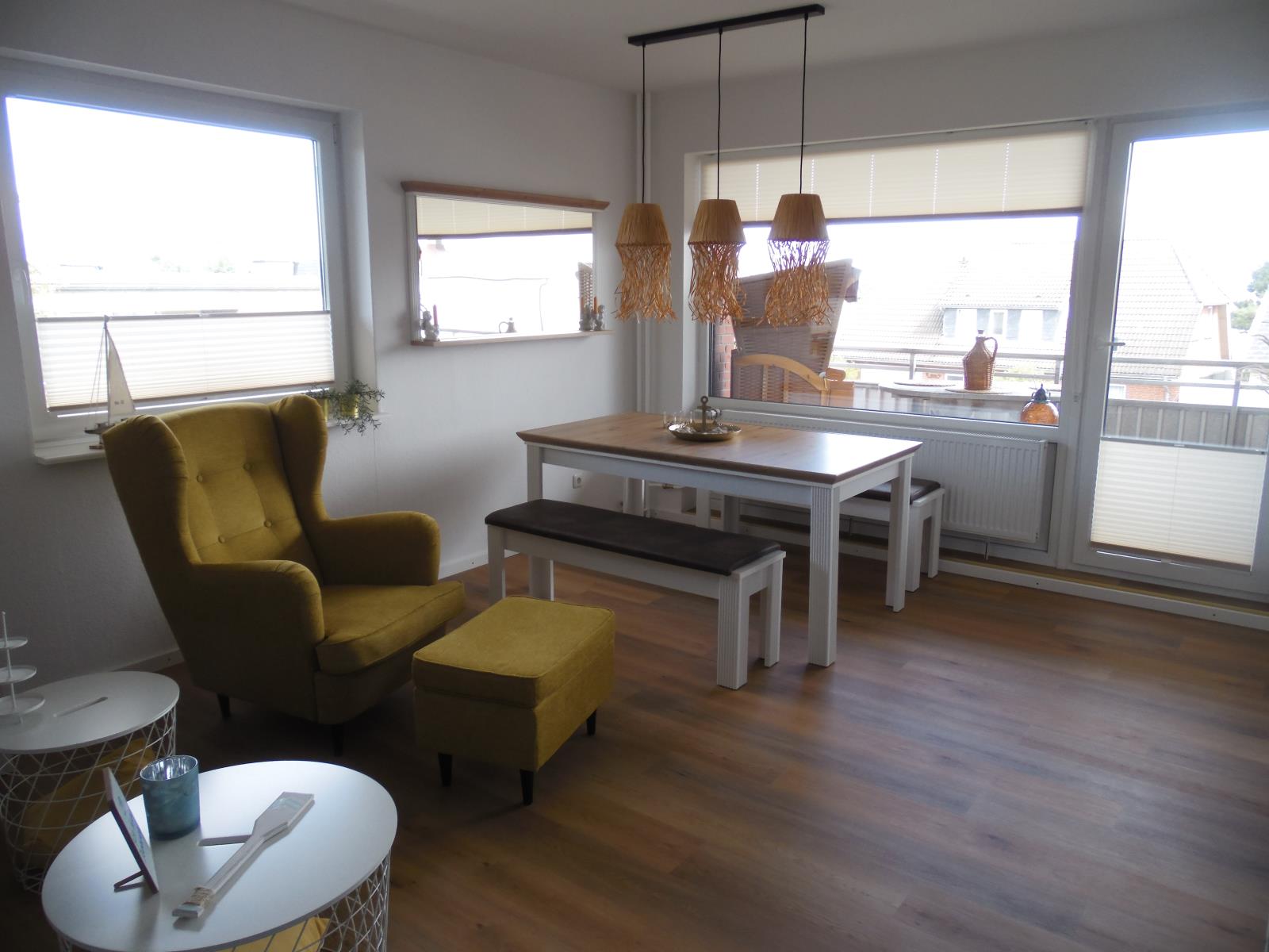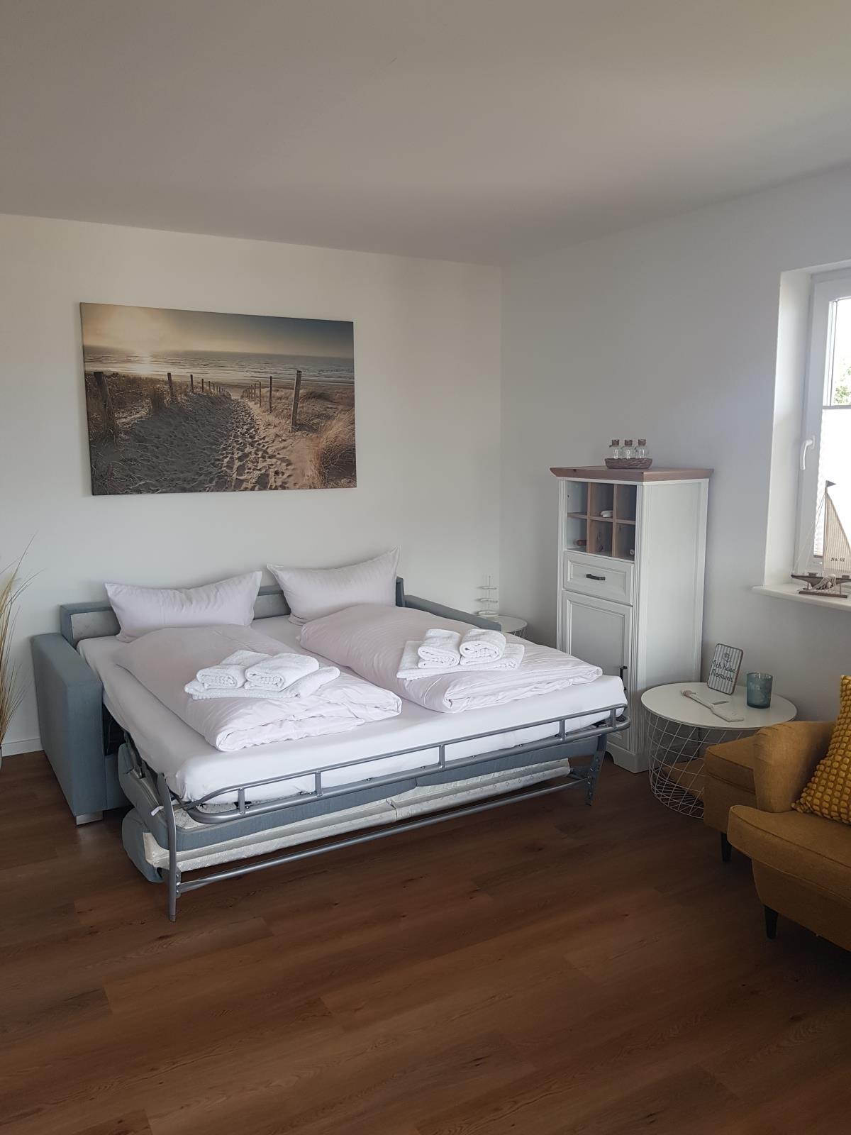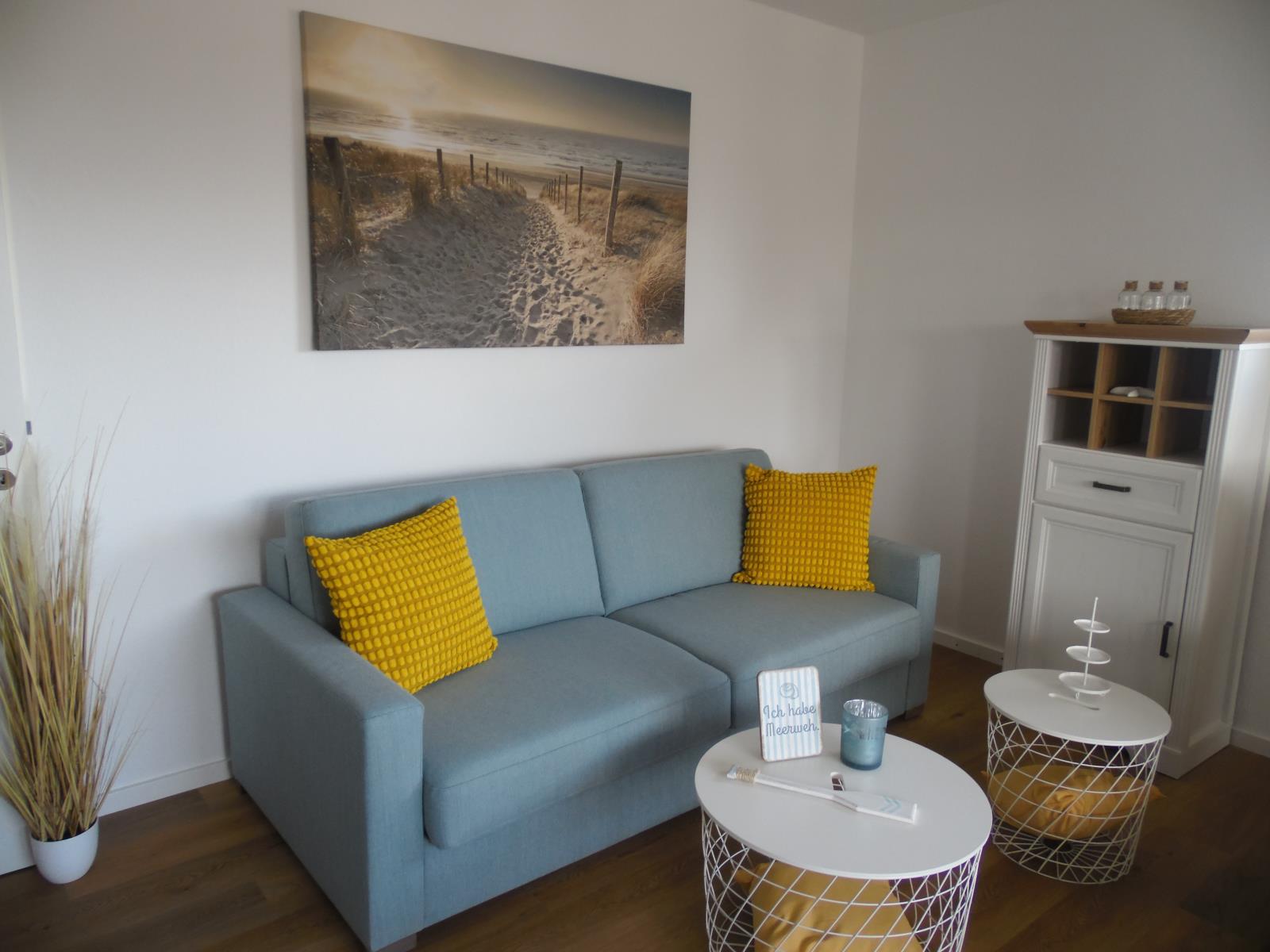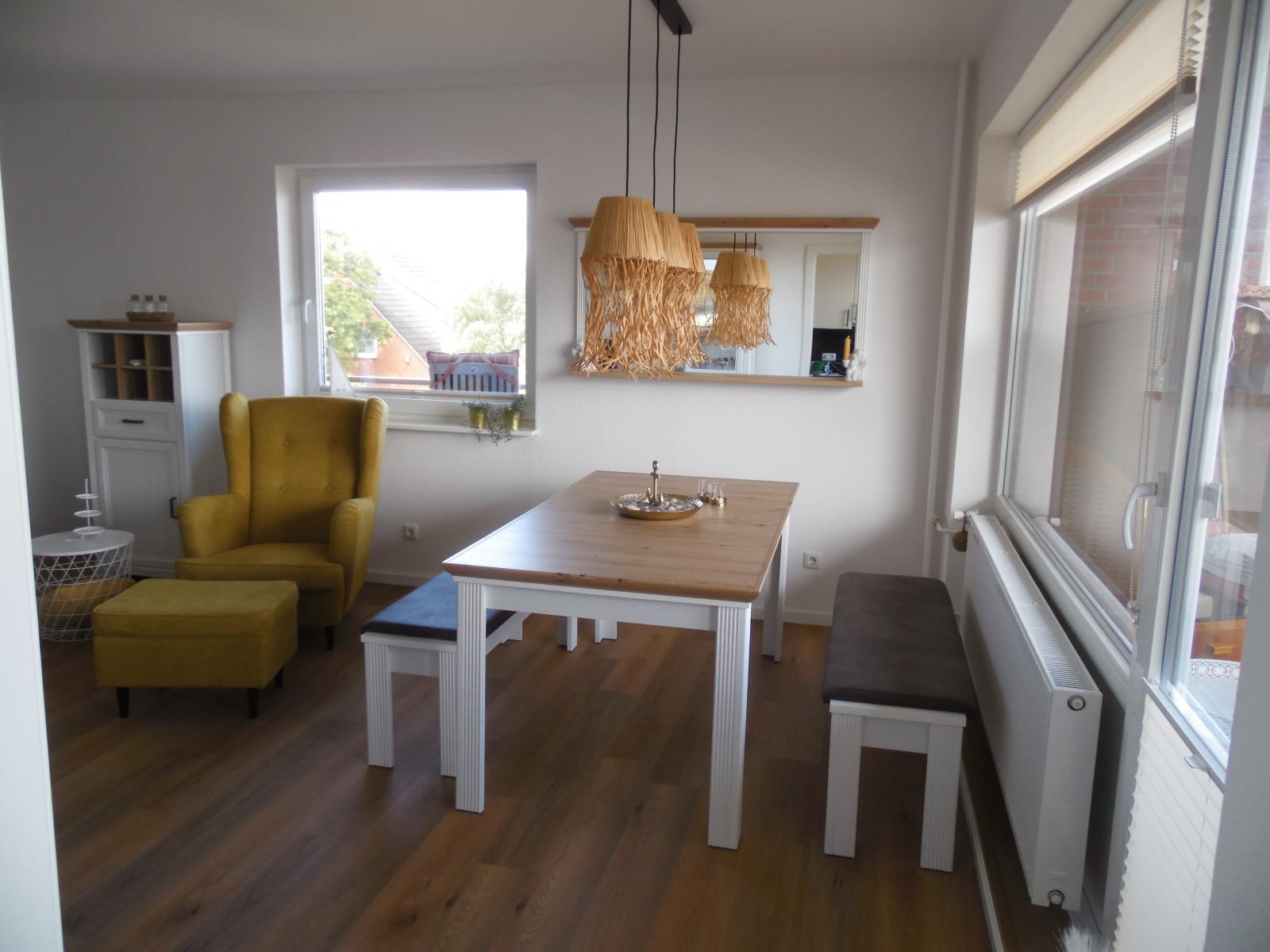 Die Ferienwohnung "Küstenperle" im 2. Obergeschoss des Hauses "Seeadler" in Wittdün auf Amrum ist eine ca. 56 qm große 2-Zimmer-Wohnung mit Schlafmöglichkeiten für 2 bis 4 Personen.