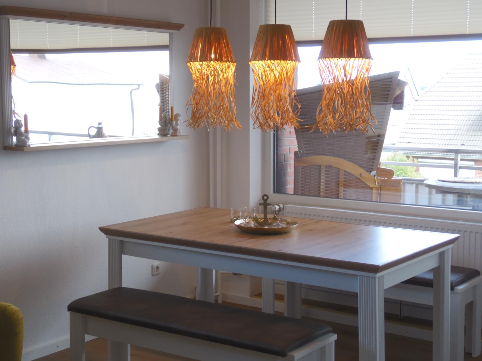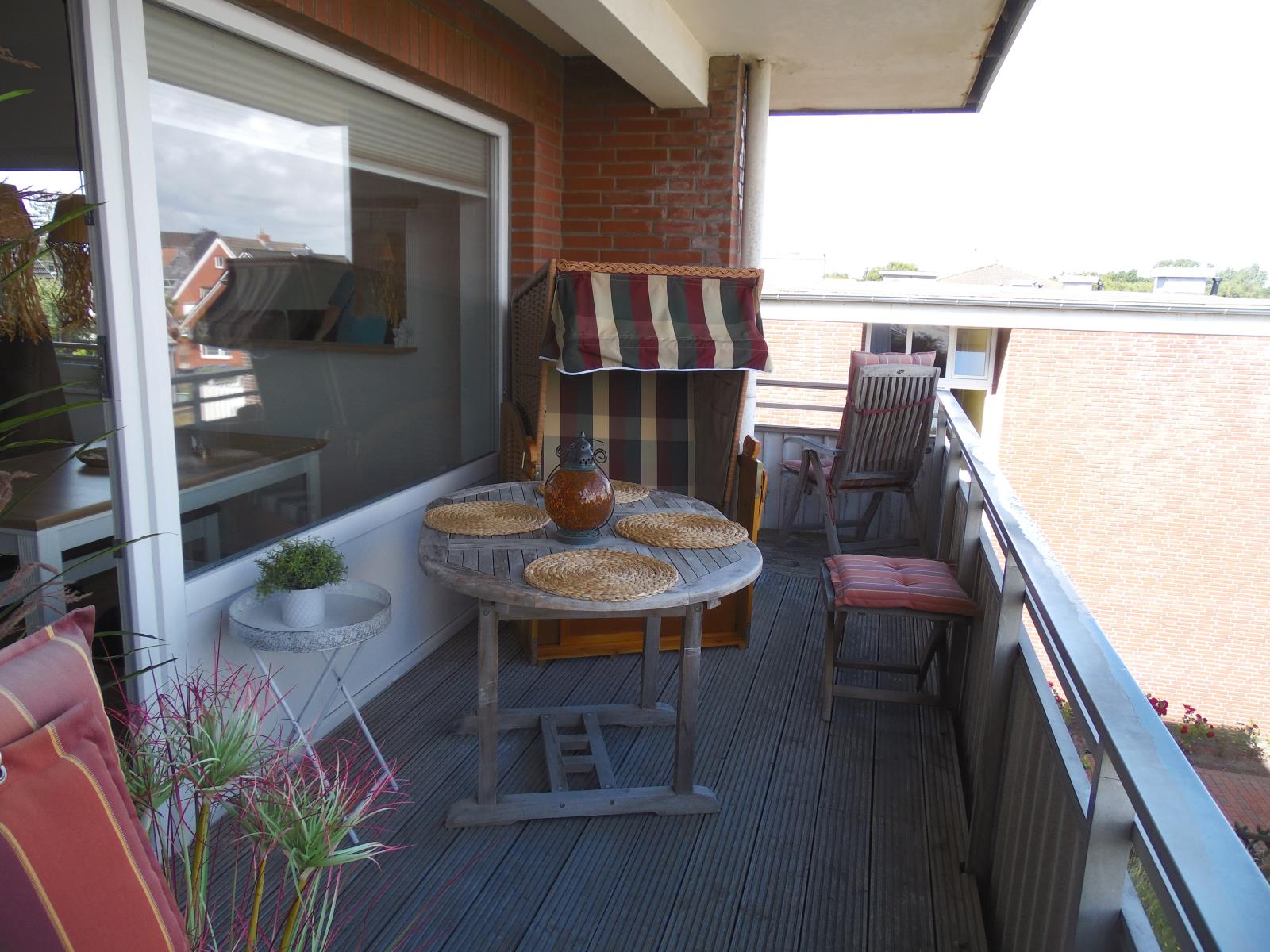 Die Ferienwohnung befindet sich in Wittdün, nur wenige Gehminuten vom Fähranleger und dem Ortskern entfernt. Hier finden Sie Einkaufsmöglichkeiten, Restaurants und Cafés. Das Wattenmeer liegt direkt vor der Haustür und der Südstrand mit Strandkörben, Kinderspielplatz und Promenade ist etwa 300m entfernt. Der große überdachte Balkon mit Meerblick ist liebevoll dekoriert und mit einem Strandkorb ausgestattet.