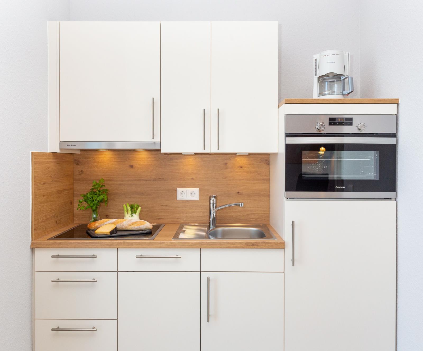 Eine moderne Wohnküche mit guter Ausstattung ,ein große Schlafzimmer sowie ein Tageslichtduschbad