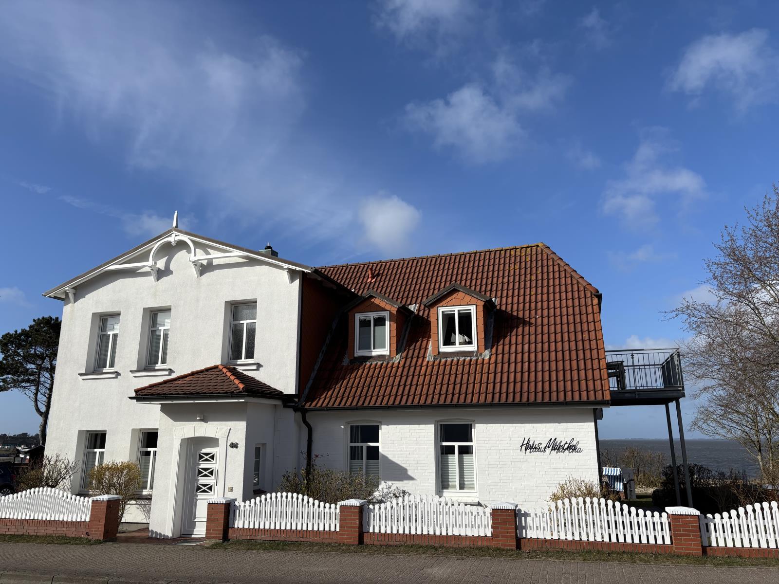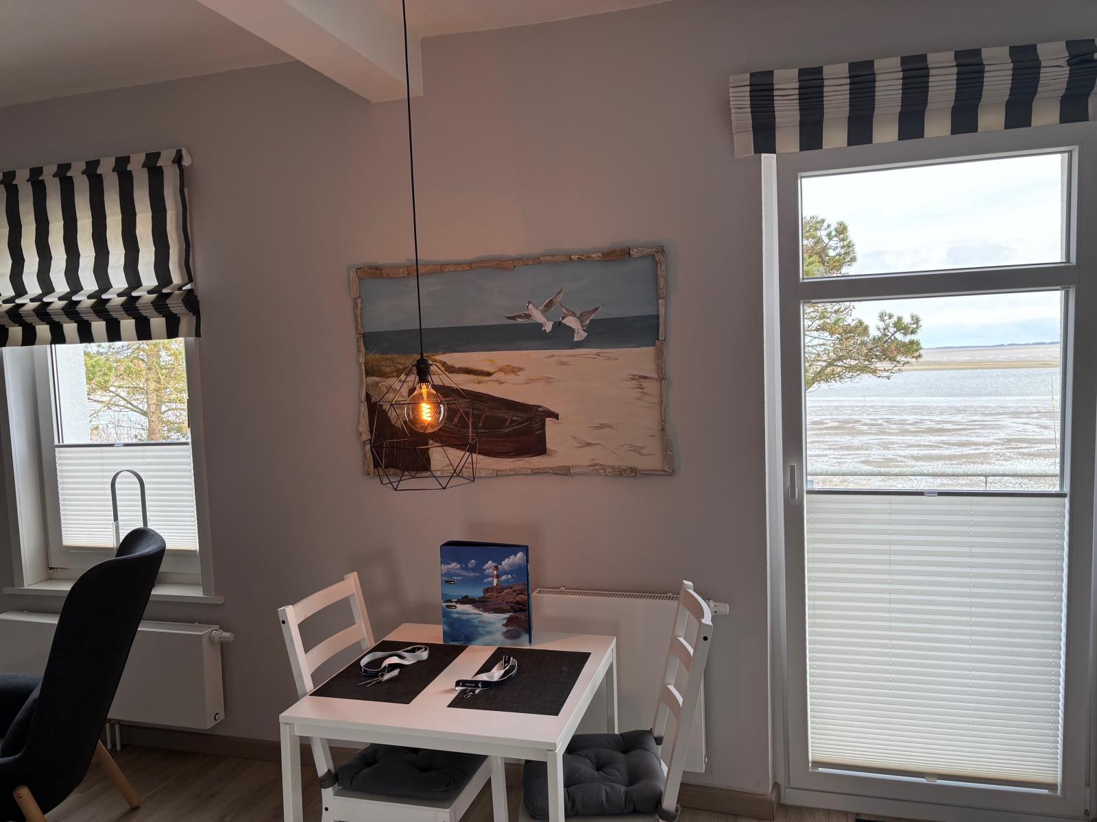 Bei Sonnenschein (natürlich auch bei Regen) kann man traumhaften Blick auf das Wattenmeer sowie den zum Haus gehörigen gepflegten Garten genießen .
