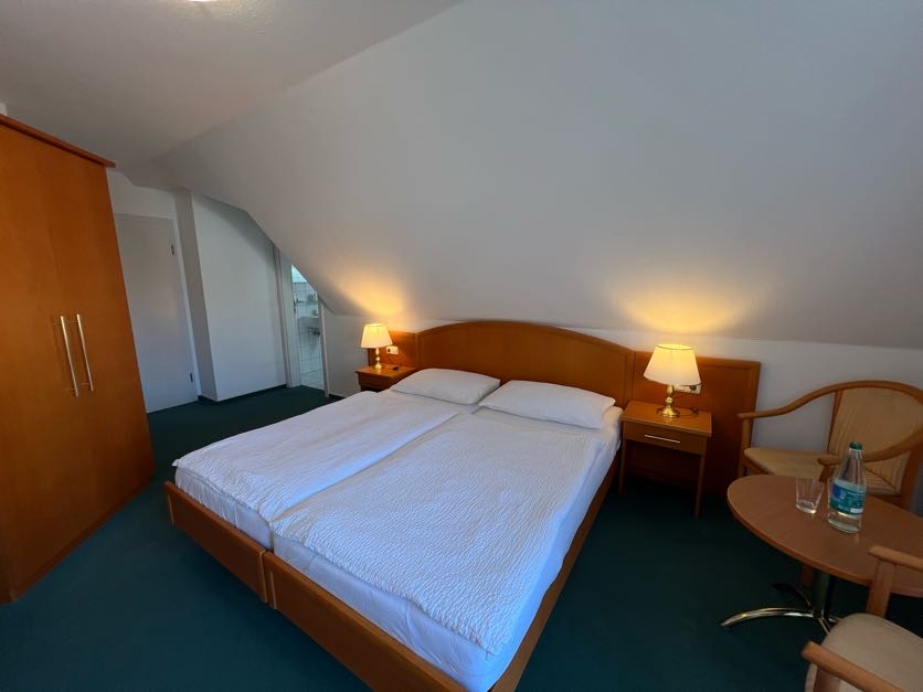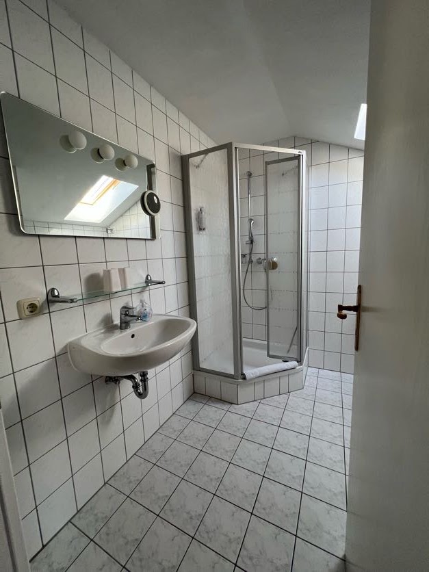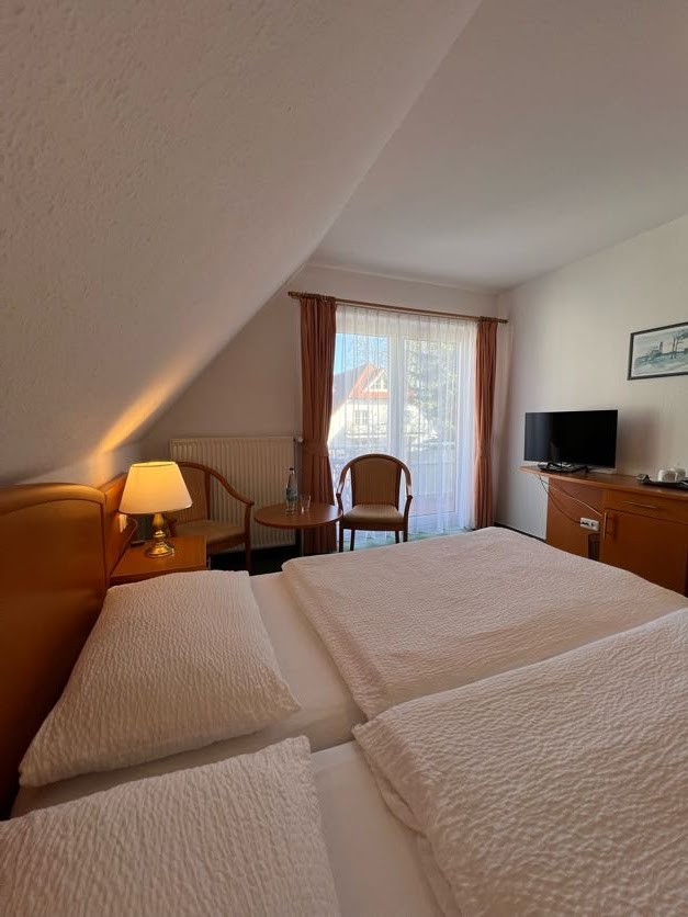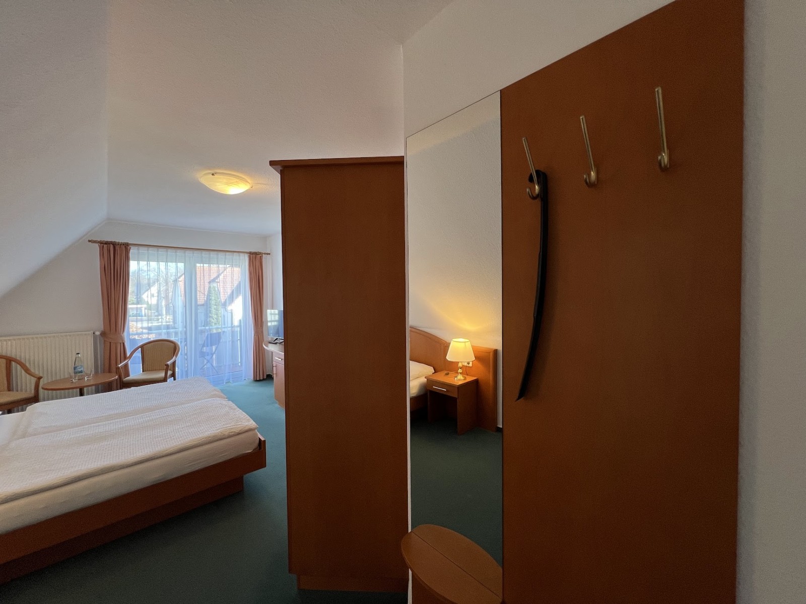 Freundlich eingerichtetes Doppelzimmer mit Balkon, eigenem Bad (mit Fenster und Dusche) und kostenfreiem Parkplatz direkt vor dem Haus. Ihr Vierbeiner ist gegen eine Gebühr auch herzlich willkommen.  Das Frühstück, die  Bettwäsche sowie Handtücher sind bereits inklusive.