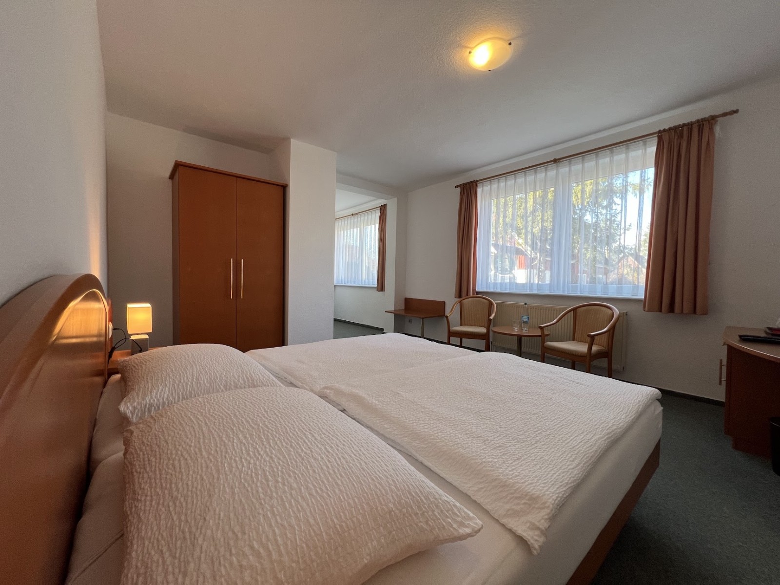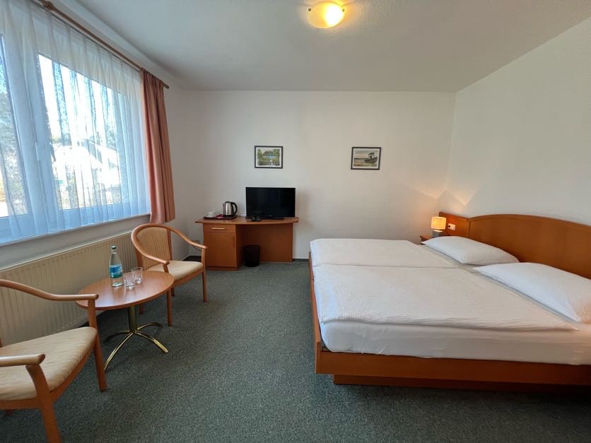 Freundlich eingerichtetes Doppelzimmer mit eigenem Bad (mit Fenster und Dusche) und kostenfreiem Parkplatz direkt vor dem Haus. Ihr Vierbeiner ist gegen eine Gebühr auch herzlich willkommen.  Das Frühstück, die  Bettwäsche sowie Handtücher sind bereits inklusive.