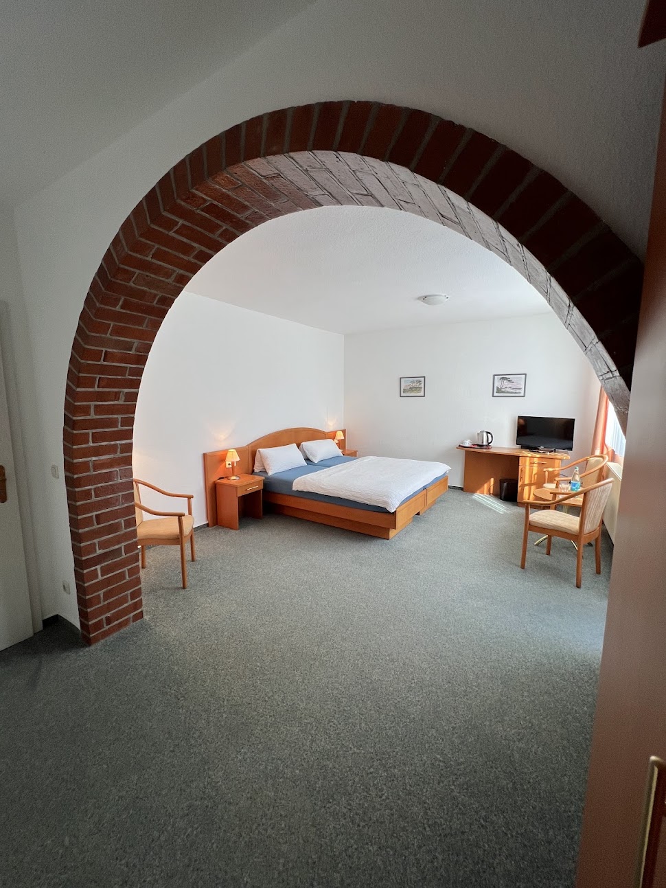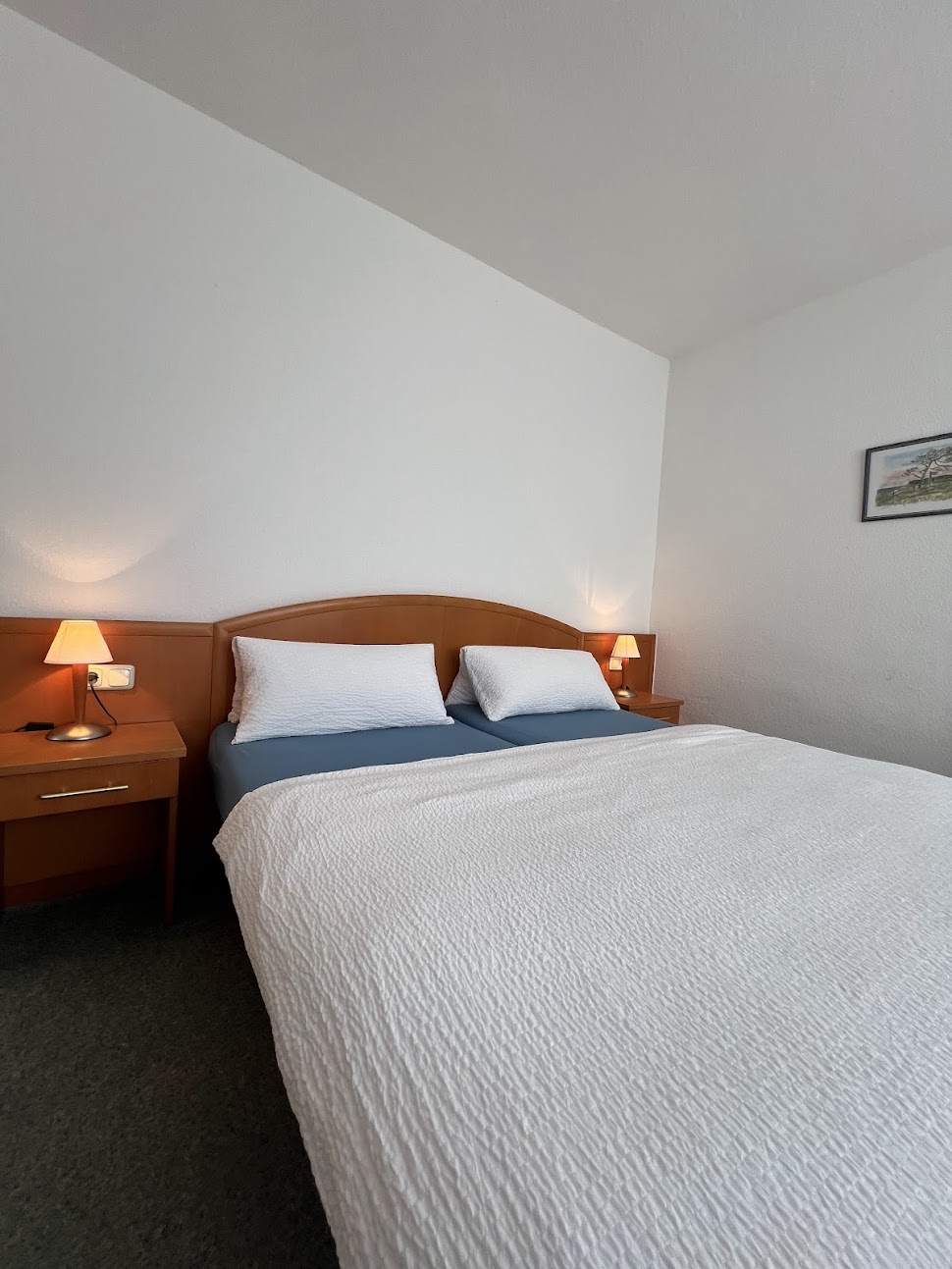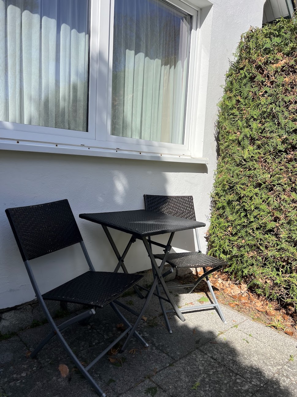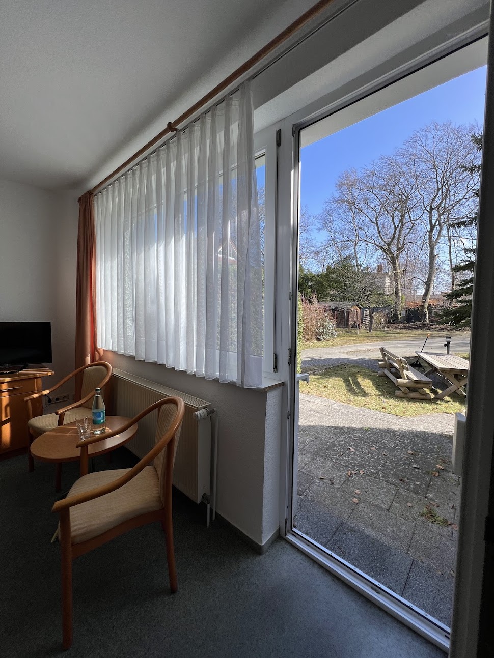 Freundlich eingerichtetes Doppelzimmer mit Terrasse, eigenem Bad (Behindertenfreundlich mit Fenster und Dusche) und kostenfreiem Parkplatz direkt vor dem Haus. Ihr Vierbeiner ist gegen eine Gebühr auch herzlich willkommen. Das Frühstück, die Bettwäsche sowie Handtücher sind bereits inklusive.
